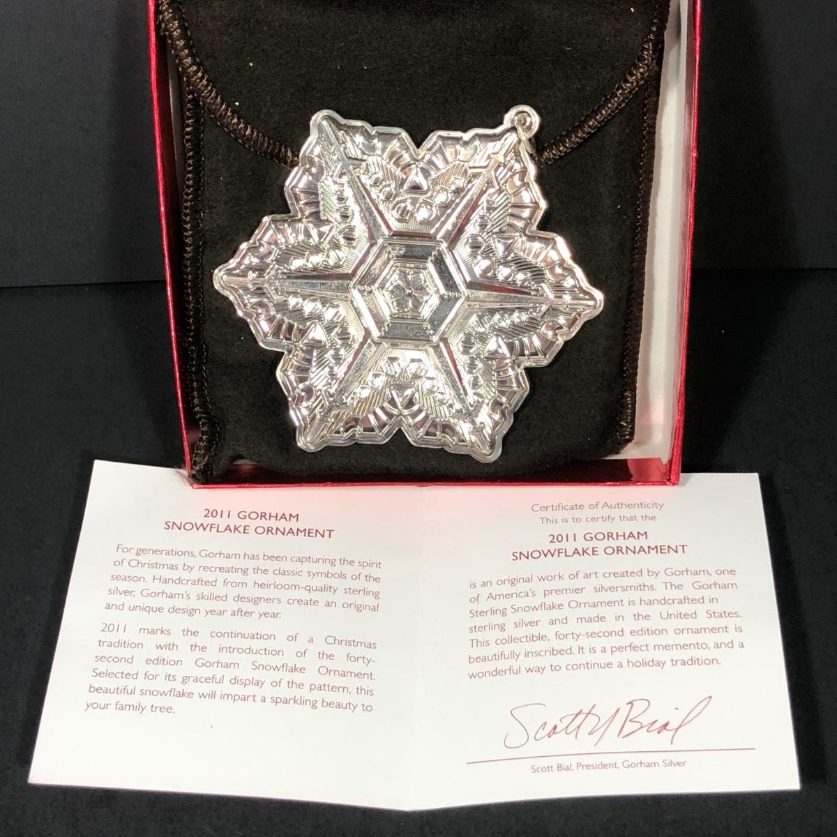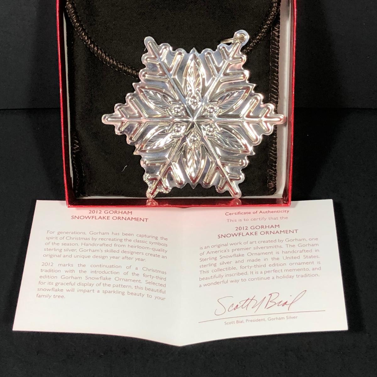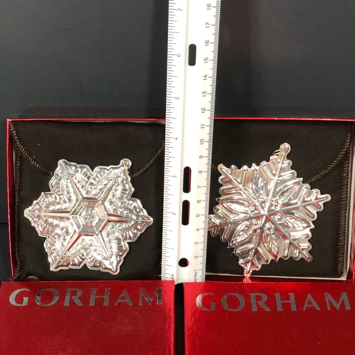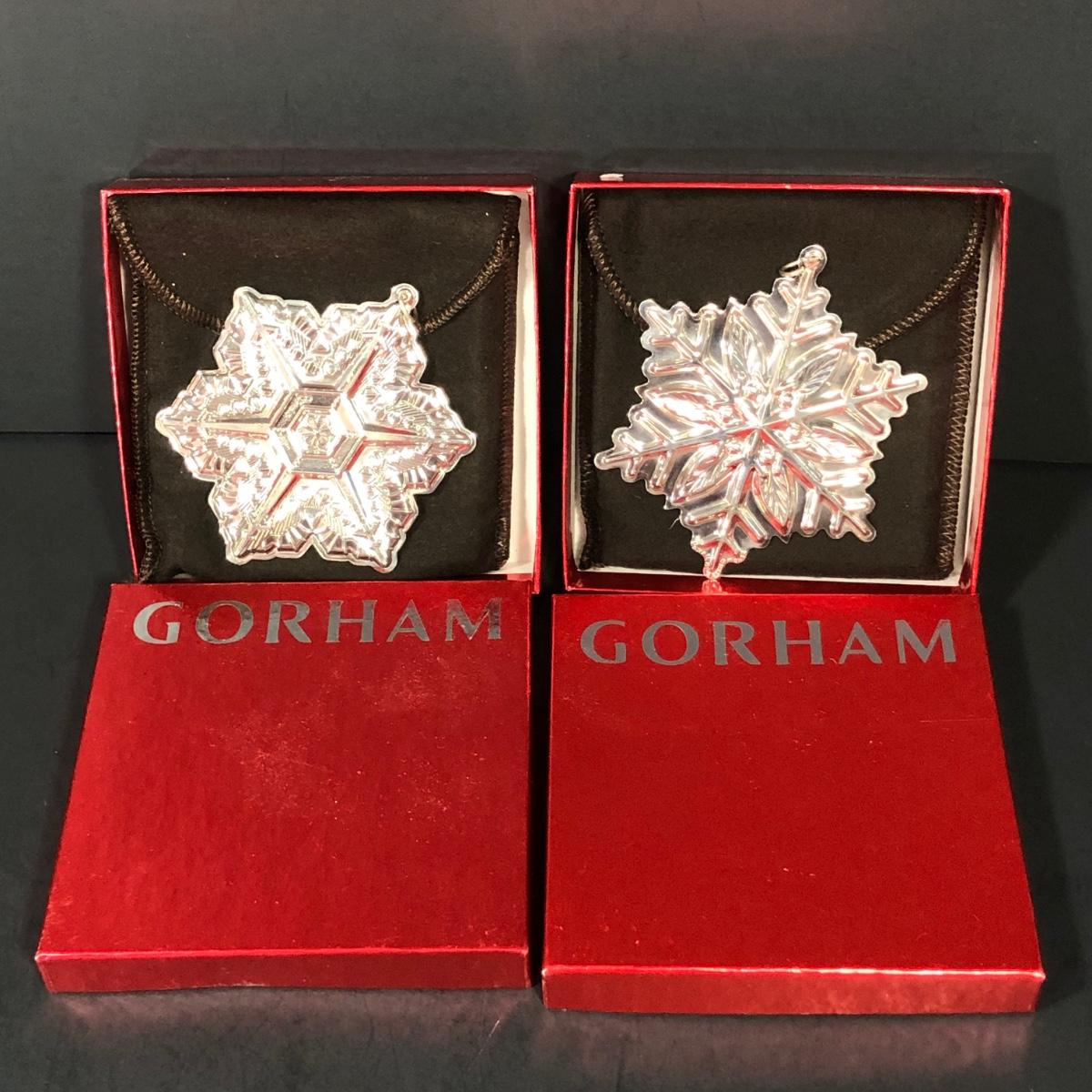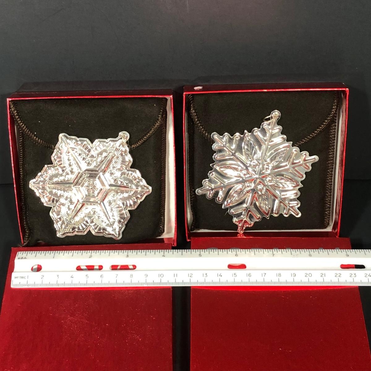 Includes 2 sterling silver snowflake ornaments made by Gorham in 2011 and 2012.