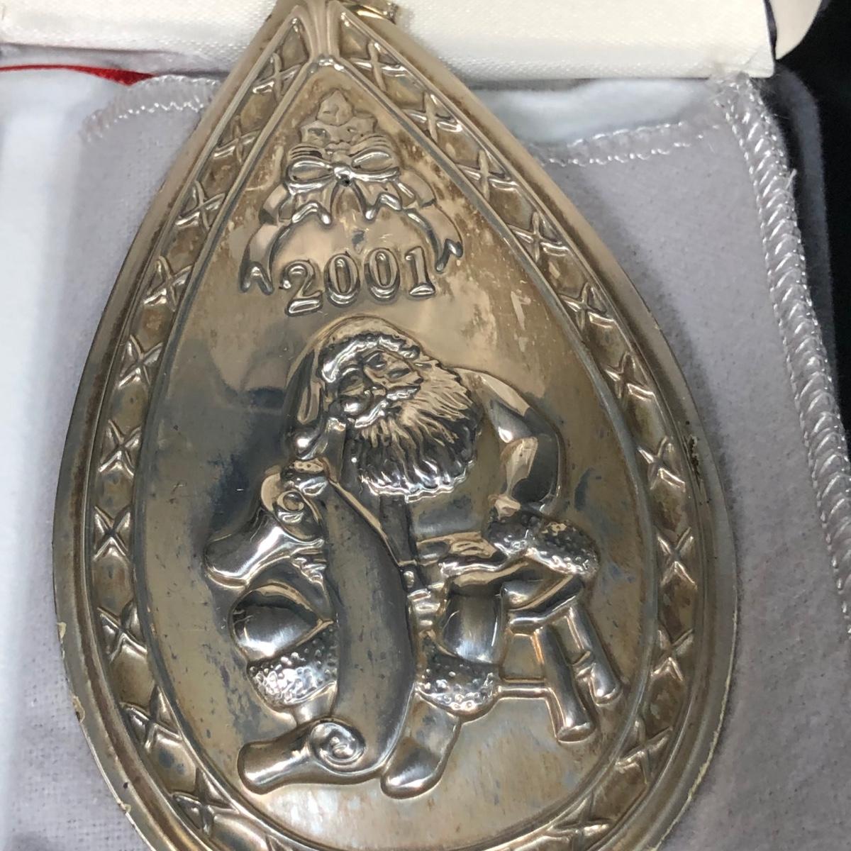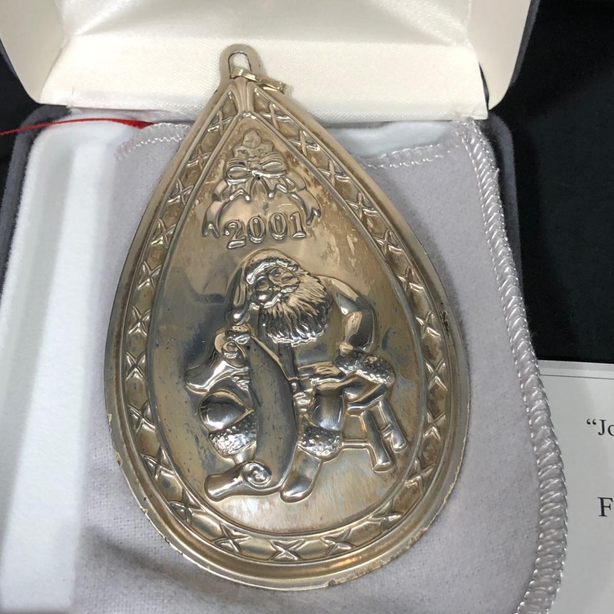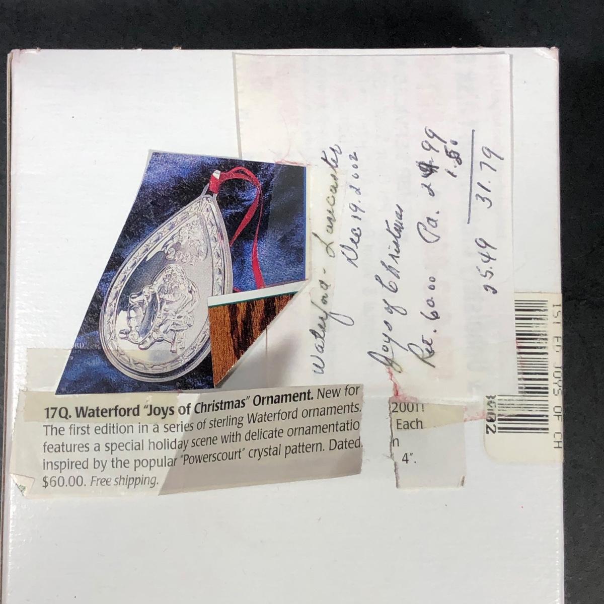 Includes 3 sterling silver ornaments and 2 crystal ornaments made by Waterford.