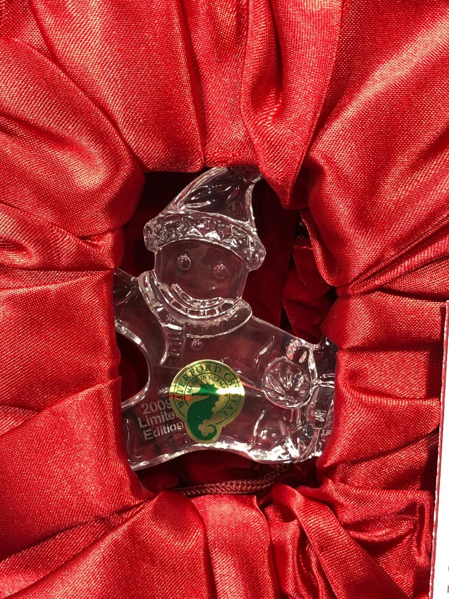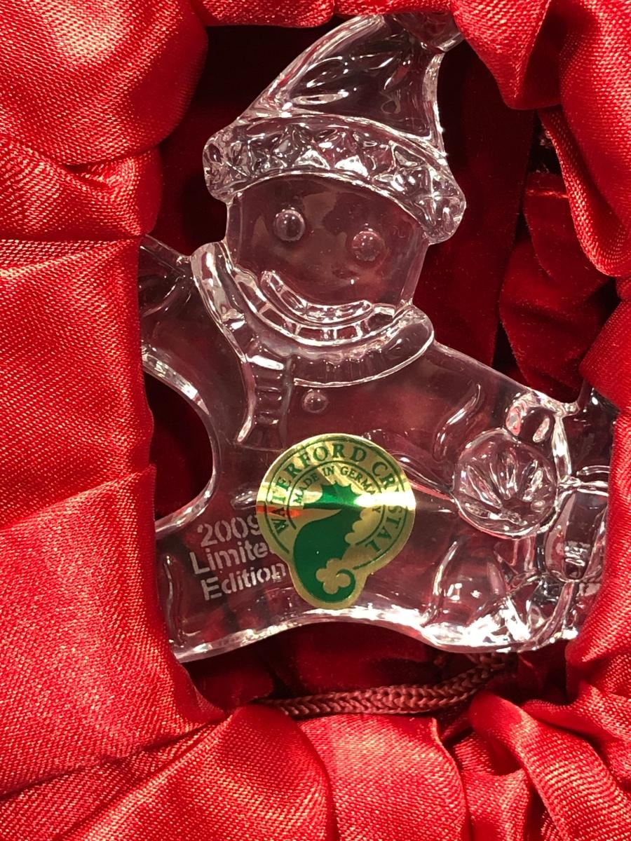 2 Lismore Snowflake Ornaments from 2001 and 2003. First Edition "Joys of Christmas" Ornament from 2001. 8th Edition from the Songs of Christmas Collection, 2003. Limited Edition Gingerbread Ornament from 2009, made in Germany.