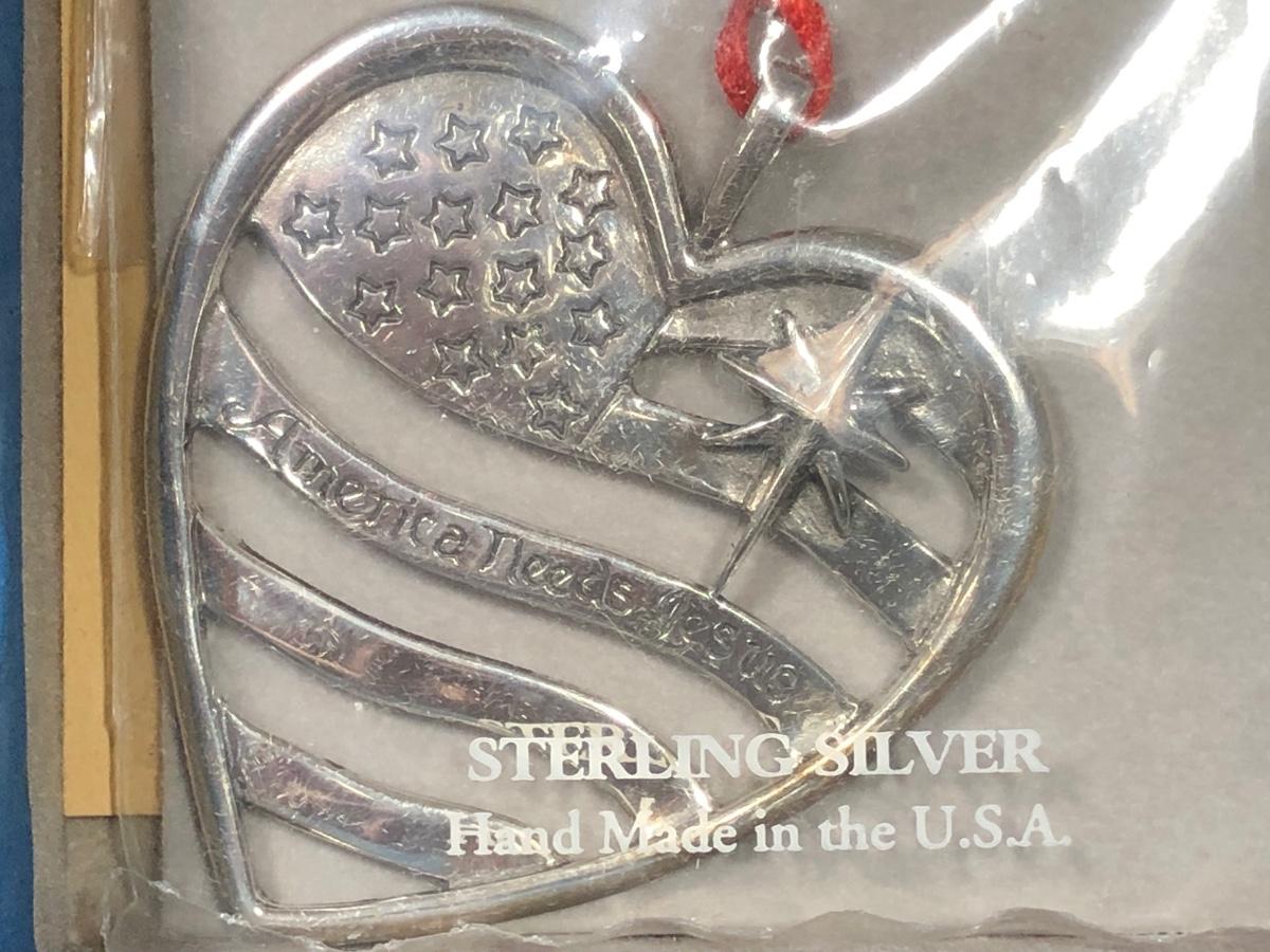 LOT149: Sterling Silver & Crystal American Flag Ornaments