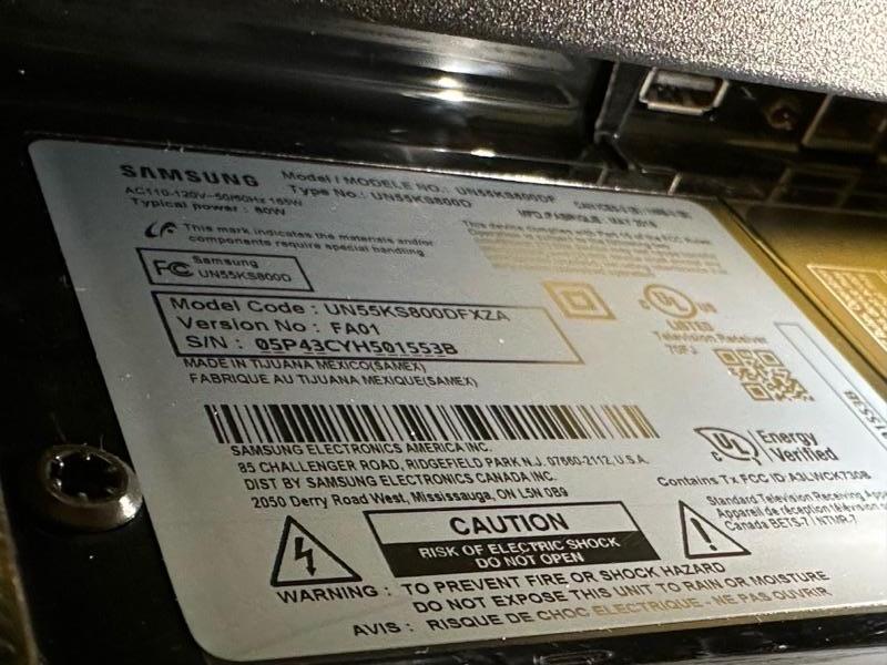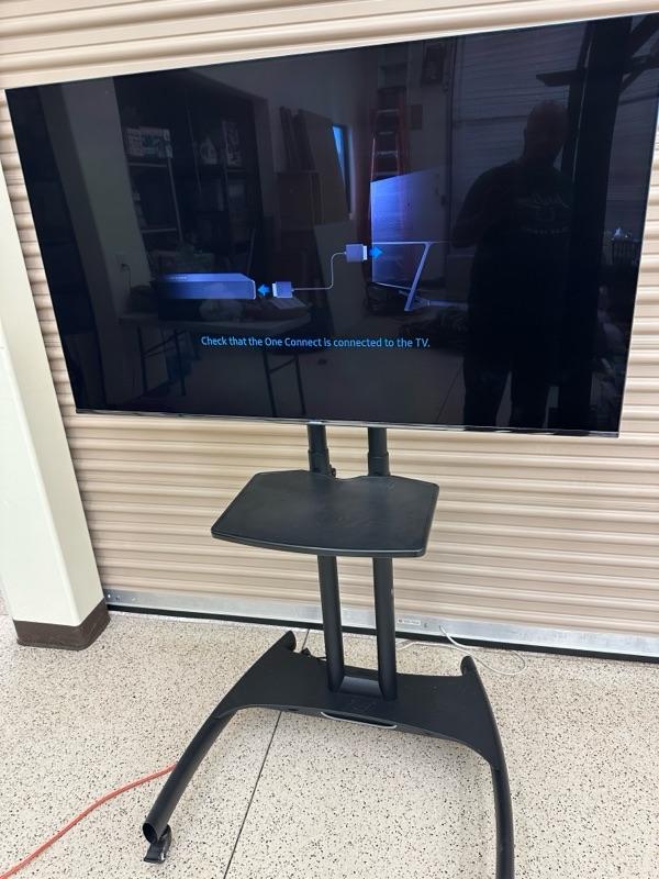 Lot 834 Samsung 55 inch SUHD smart tv model UN55KS800DF mounted on rolling north Bayou stand