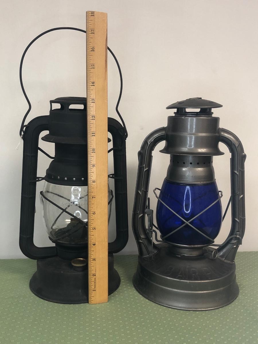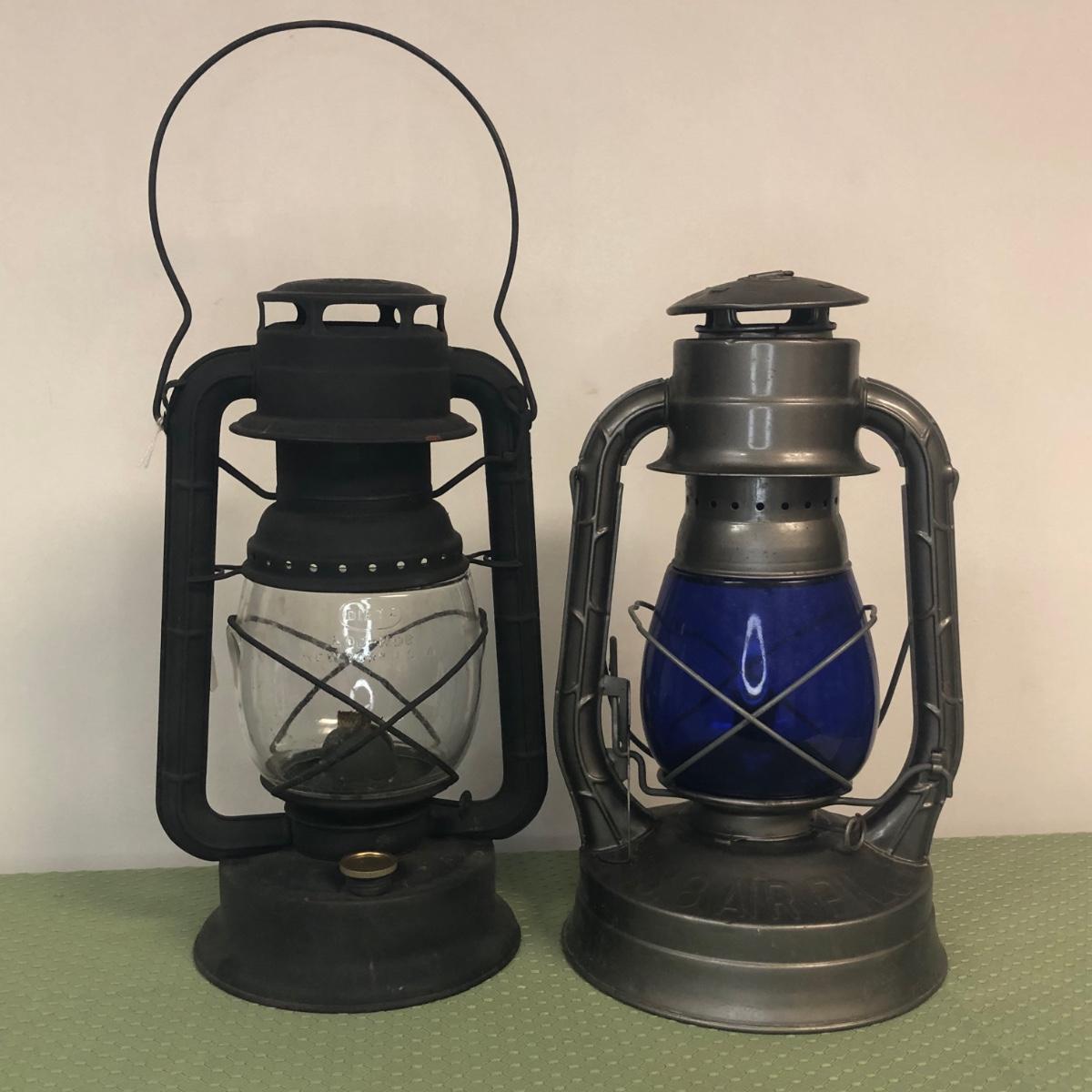 Two oil lanterns with matching globes made by Dietz in New York, USA.