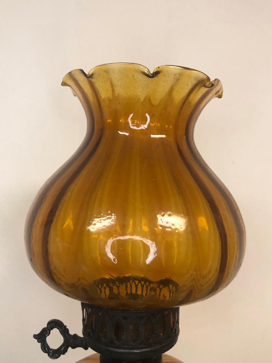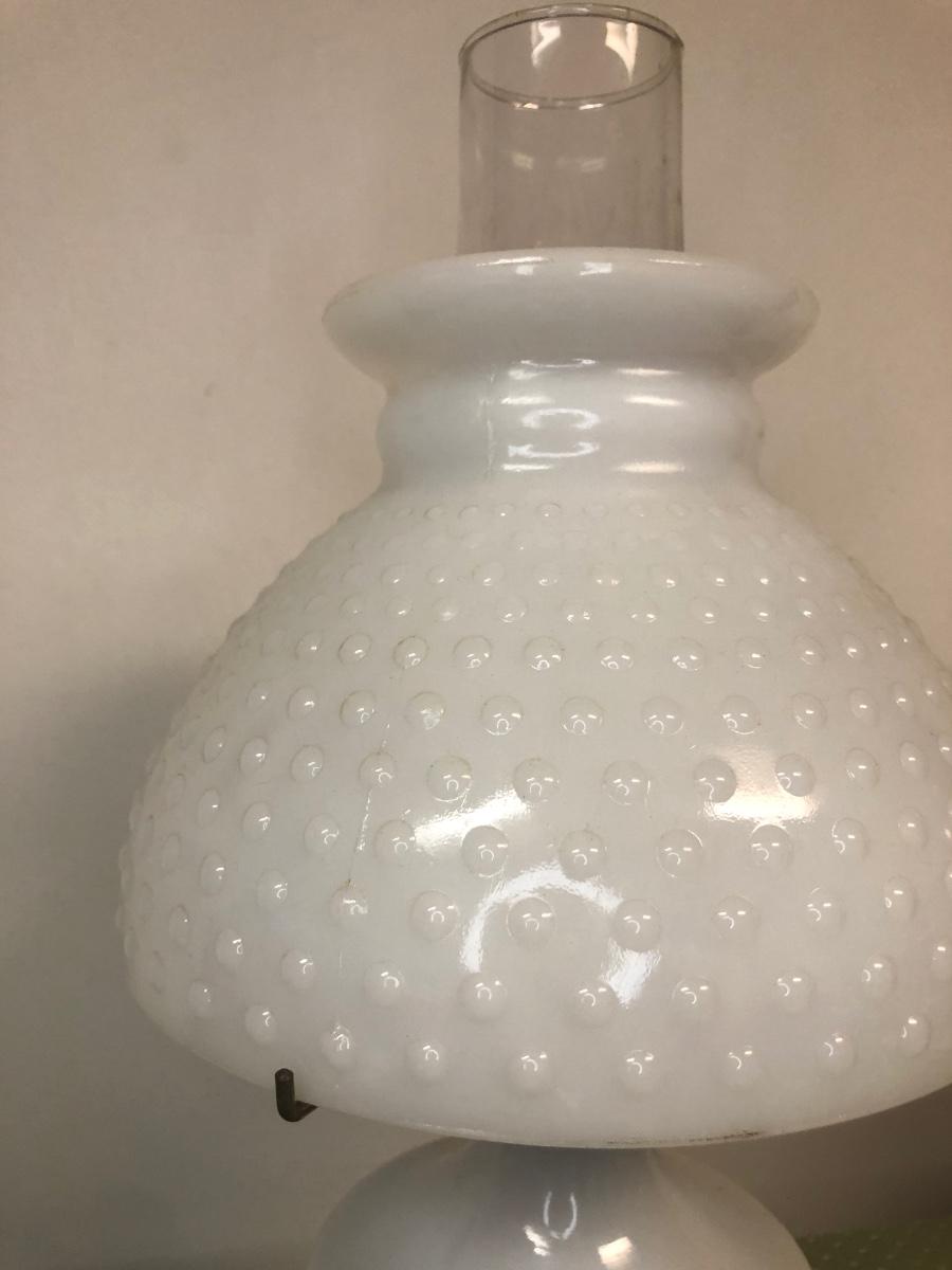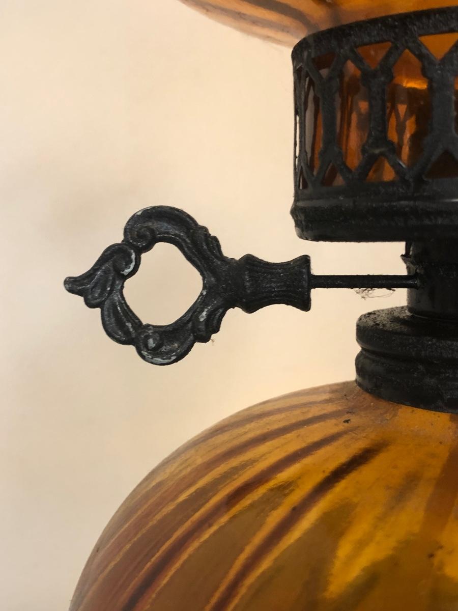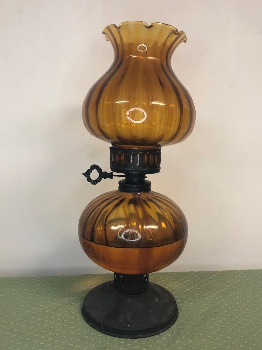 Two hurricane style oil lamps. Note - both lamps still have liquid in them.