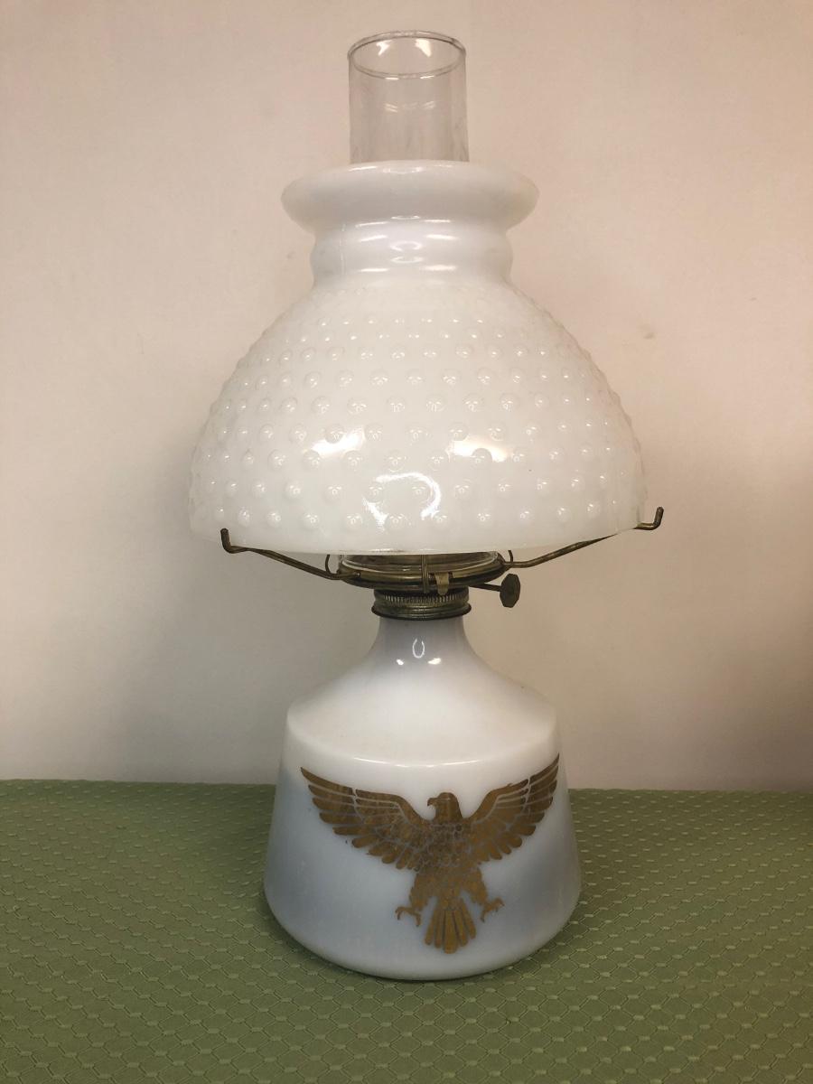 LOT9M: Plume & Atwood Risdon Eagle Lamp & Brown Glass Oil Lamp