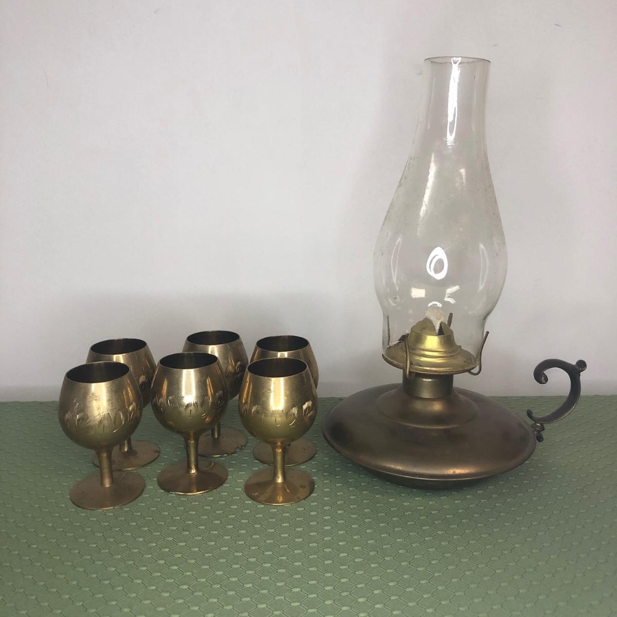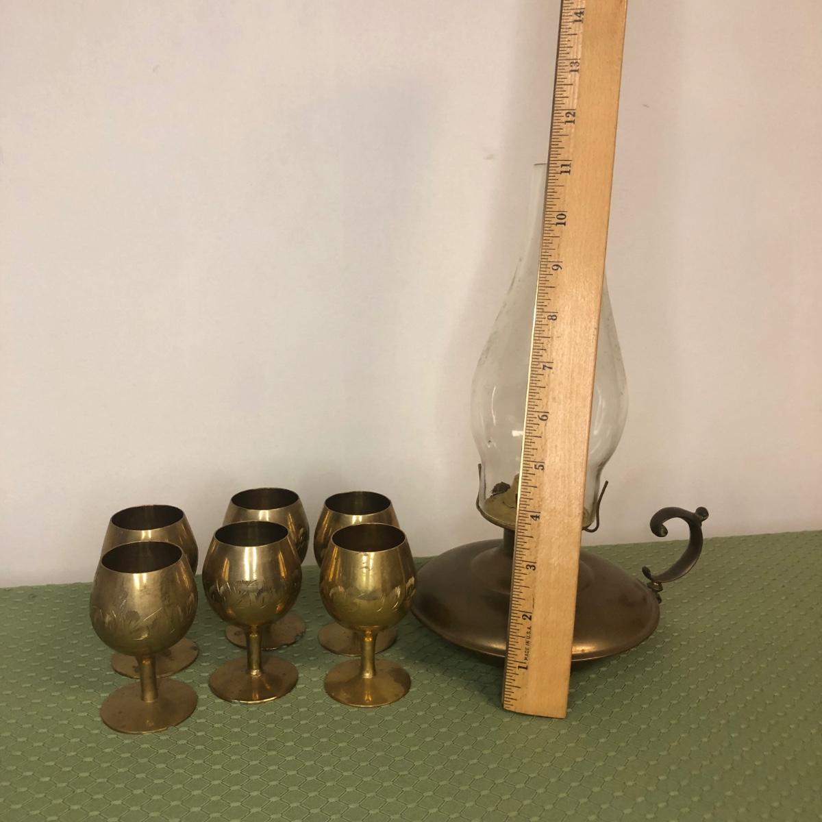 LOT13M: Oil Lamp & Miniature Brass Goblets