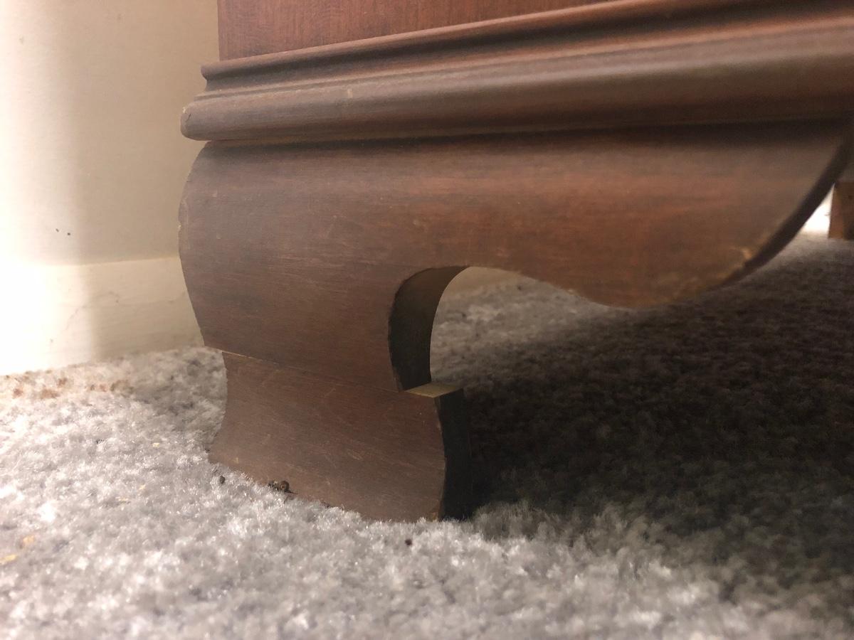 NOTE: Back left foot is broken, see photos. Chest is located in the basement of the home.