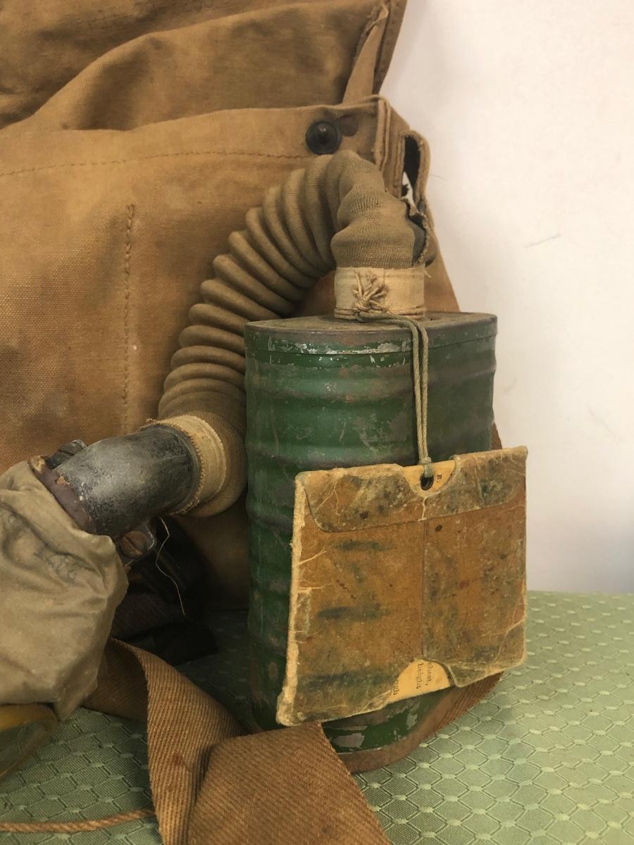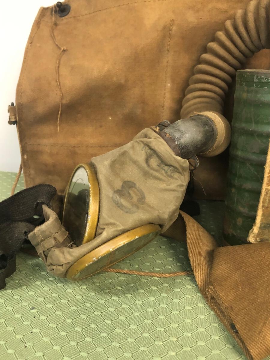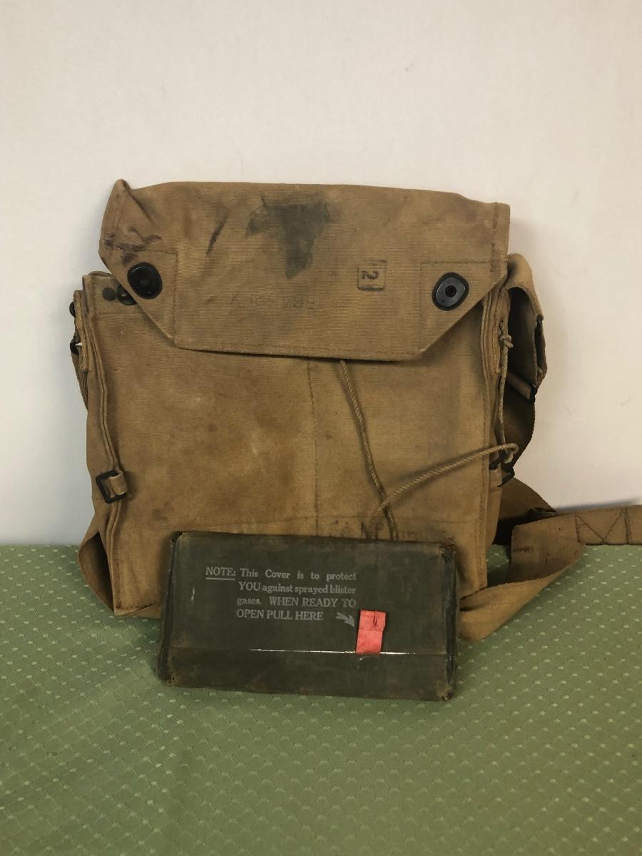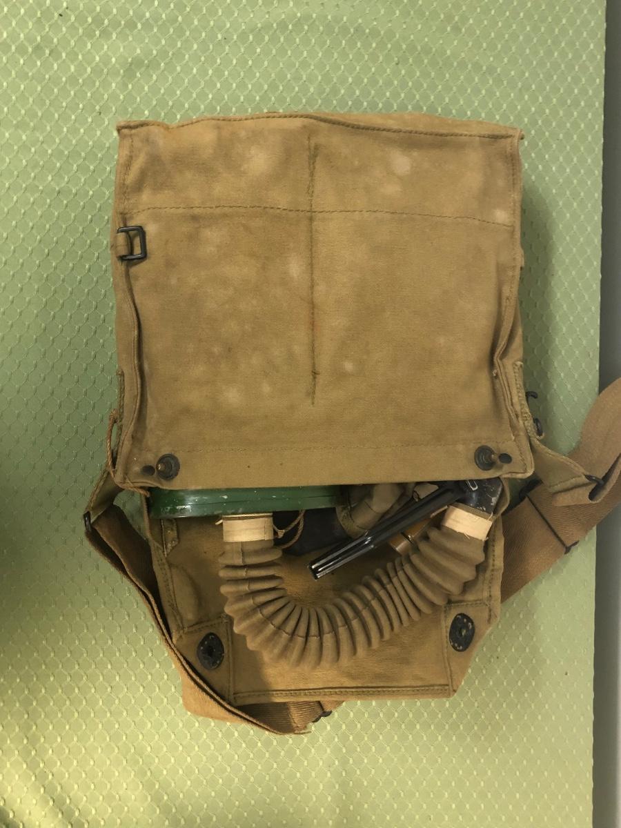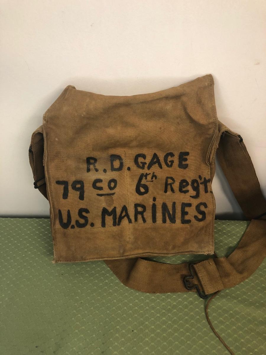 LOT18M: US Marines 6th Regiment Gas Mask, Military Bags & Covered Helmet