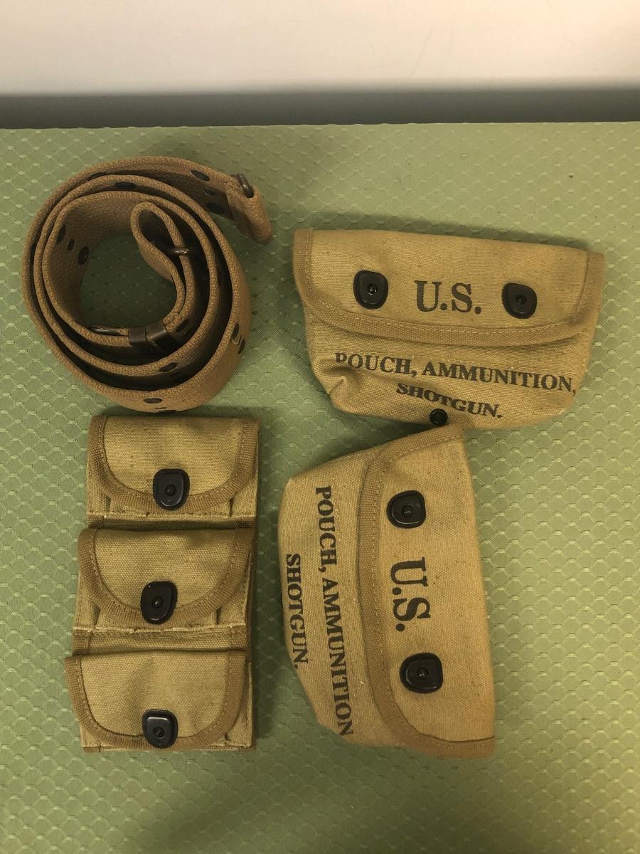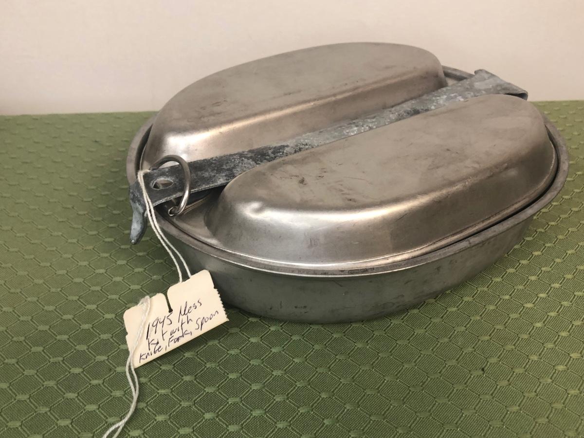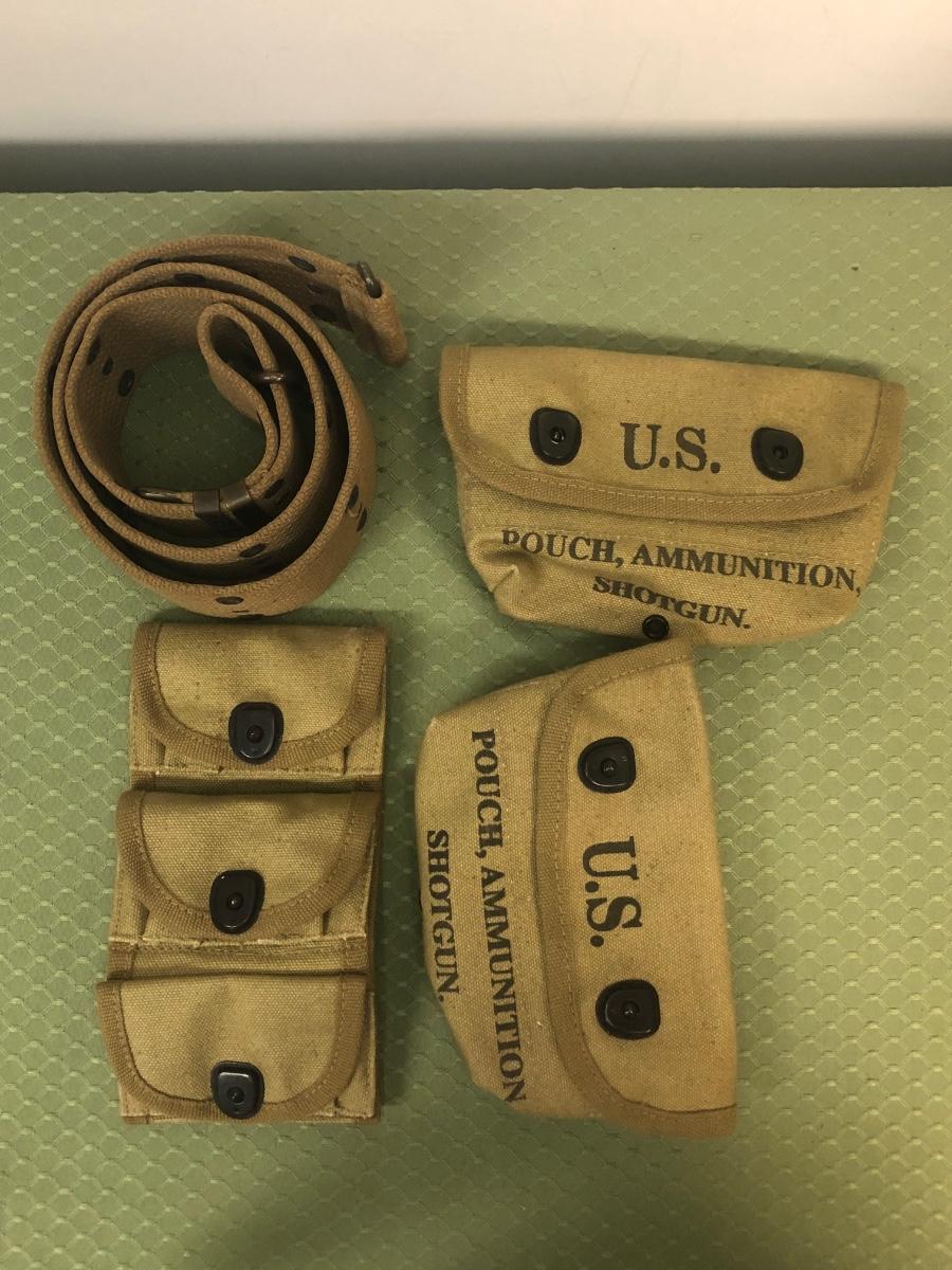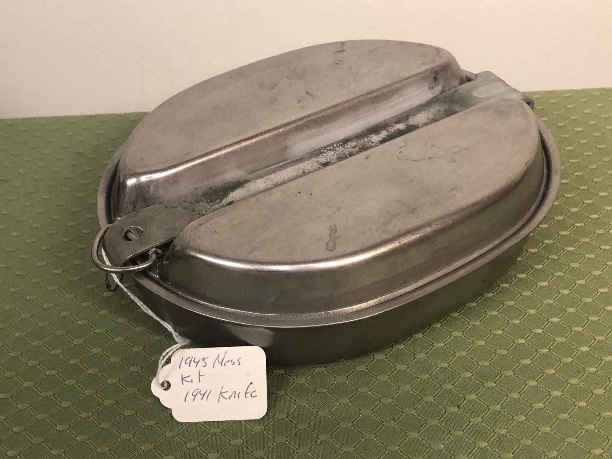 Includes four United States Army Shirts. Two have a V9 patch representing the 95th Infantry Division, and they include a technicians patch. Also included is a World War I mess kit holder with a battalion button, World War II pistol belt & empty ammunition pouches. World War II mess kits & canteen.