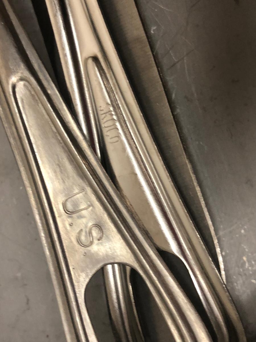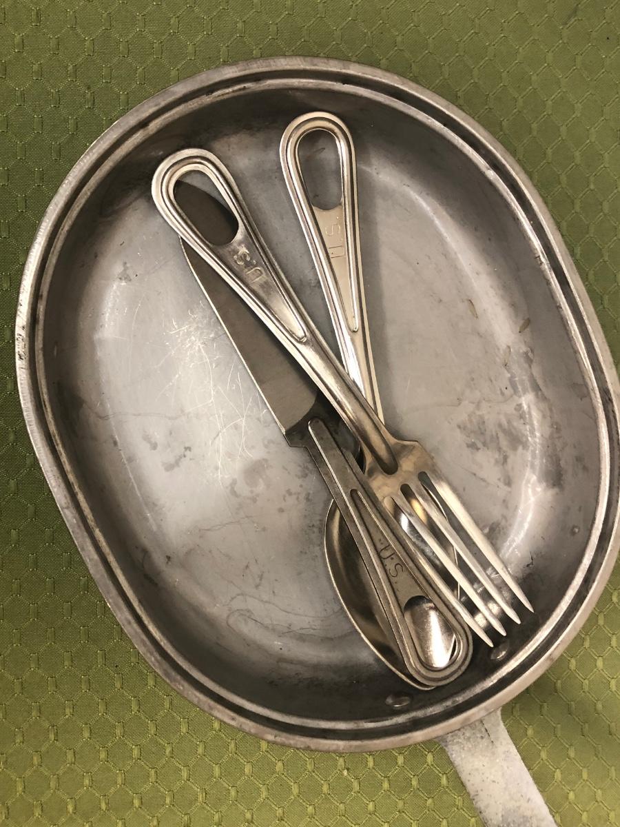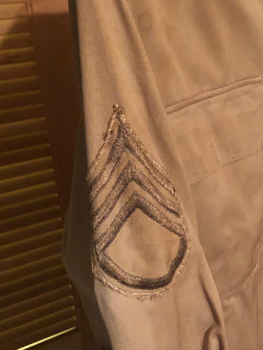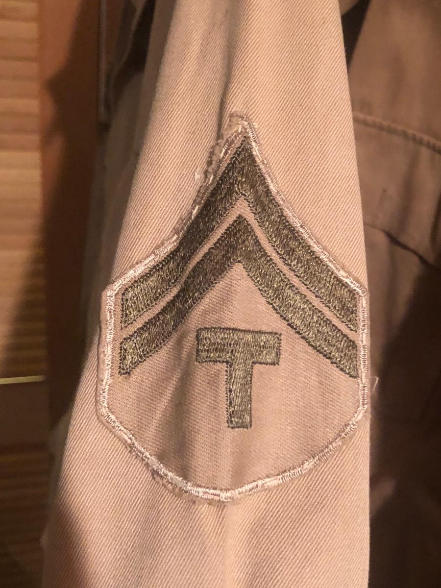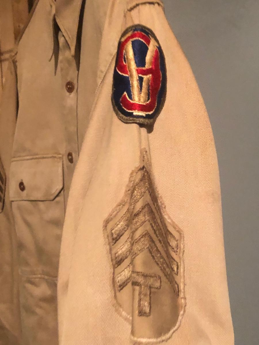 Includes four United States Army Shirts. Two have a V9 patch representing the 95th Infantry Division, and they include a technicians patch. Also included is a World War I mess kit holder with a battalion button, World War II pistol belt & empty ammunition pouches. World War II mess kits & canteen.