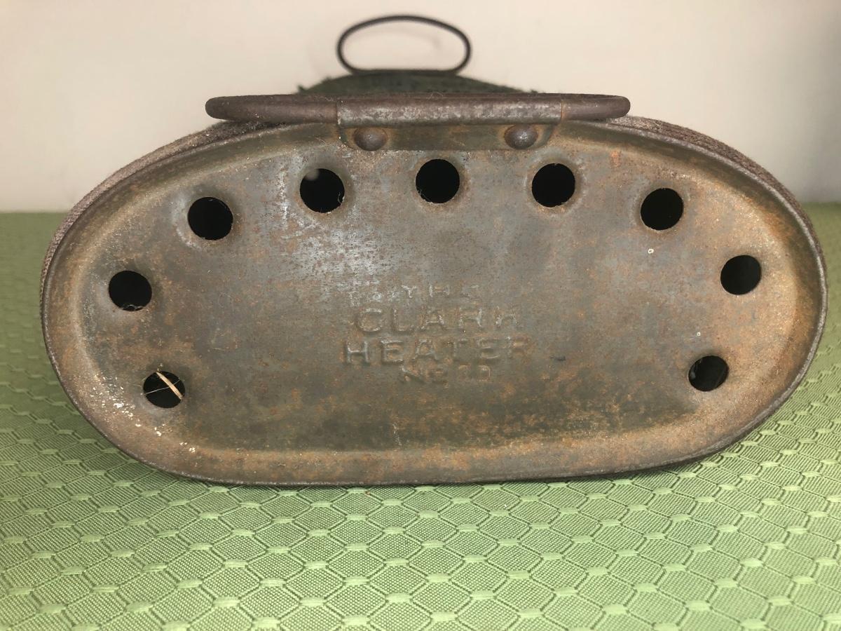 Includes a foot warmer with a drawer labeled Clark Heater No 2 and a black lantern marked "Atlantic.,"