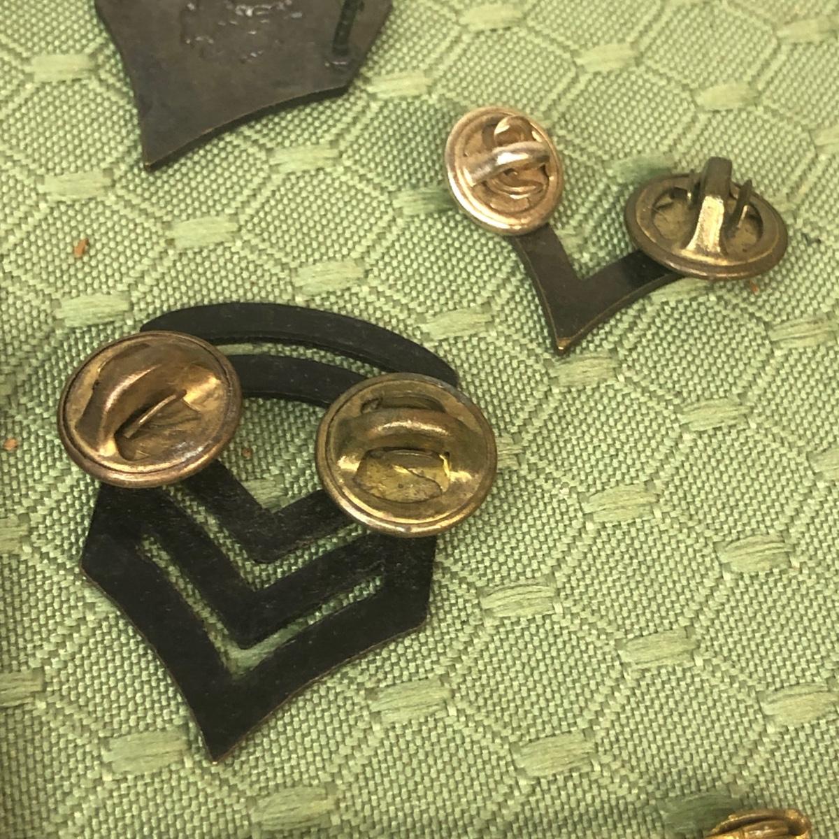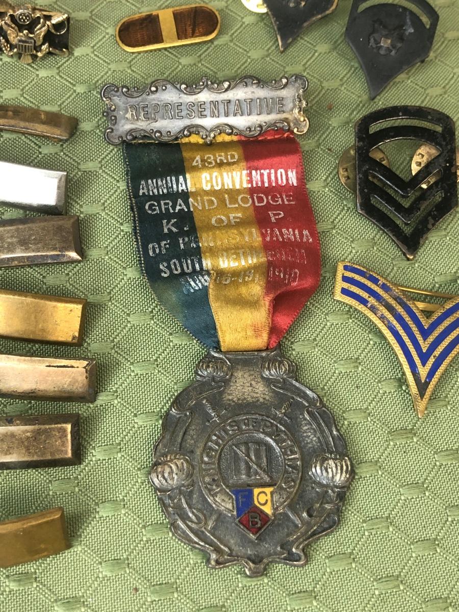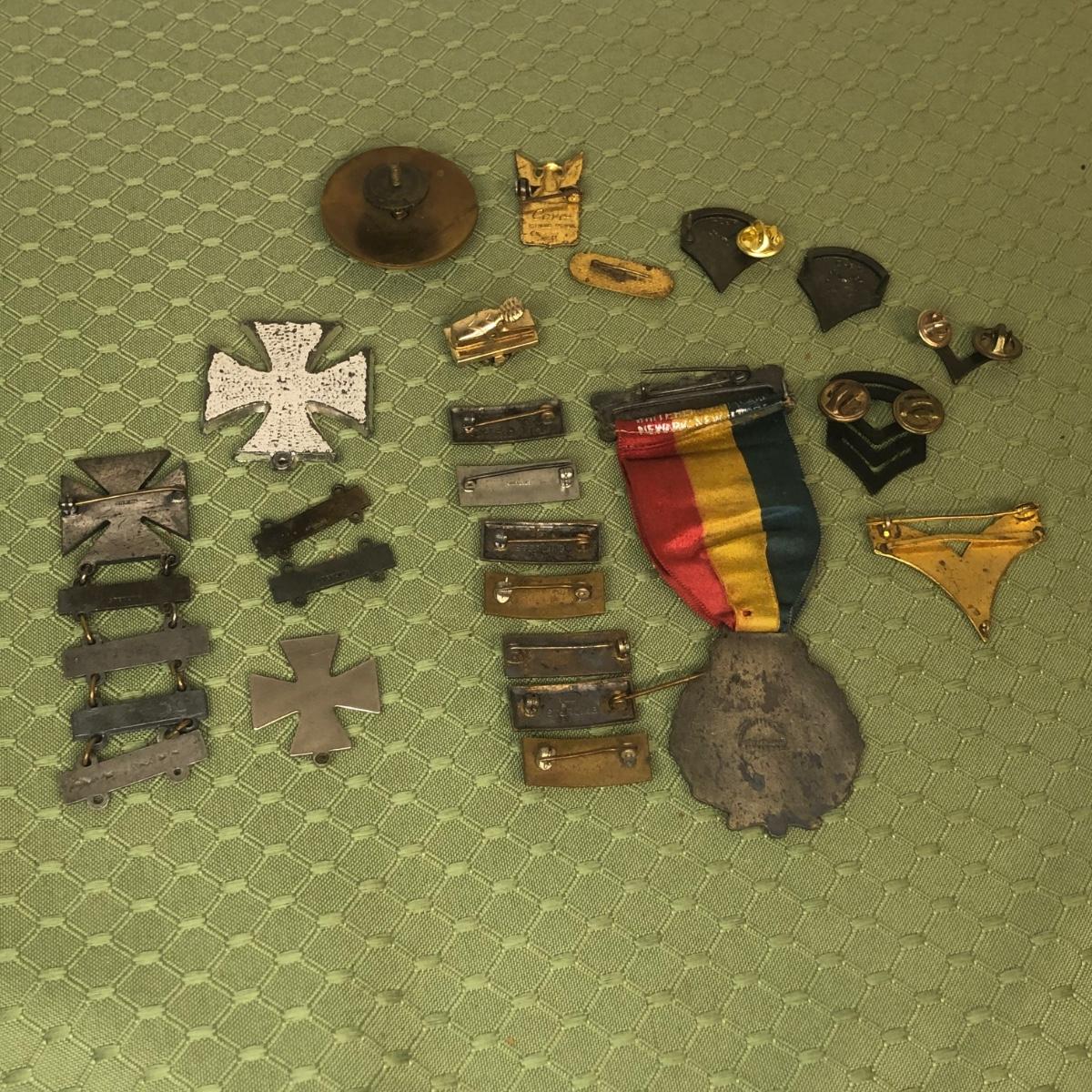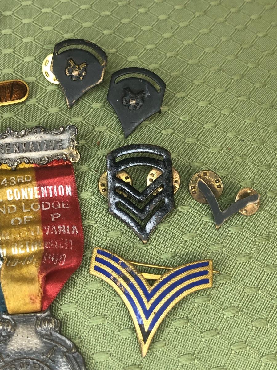 Includes various military pins for different things including rank, marksmanship, and more. Some pins are sterling silver and note so on the back.