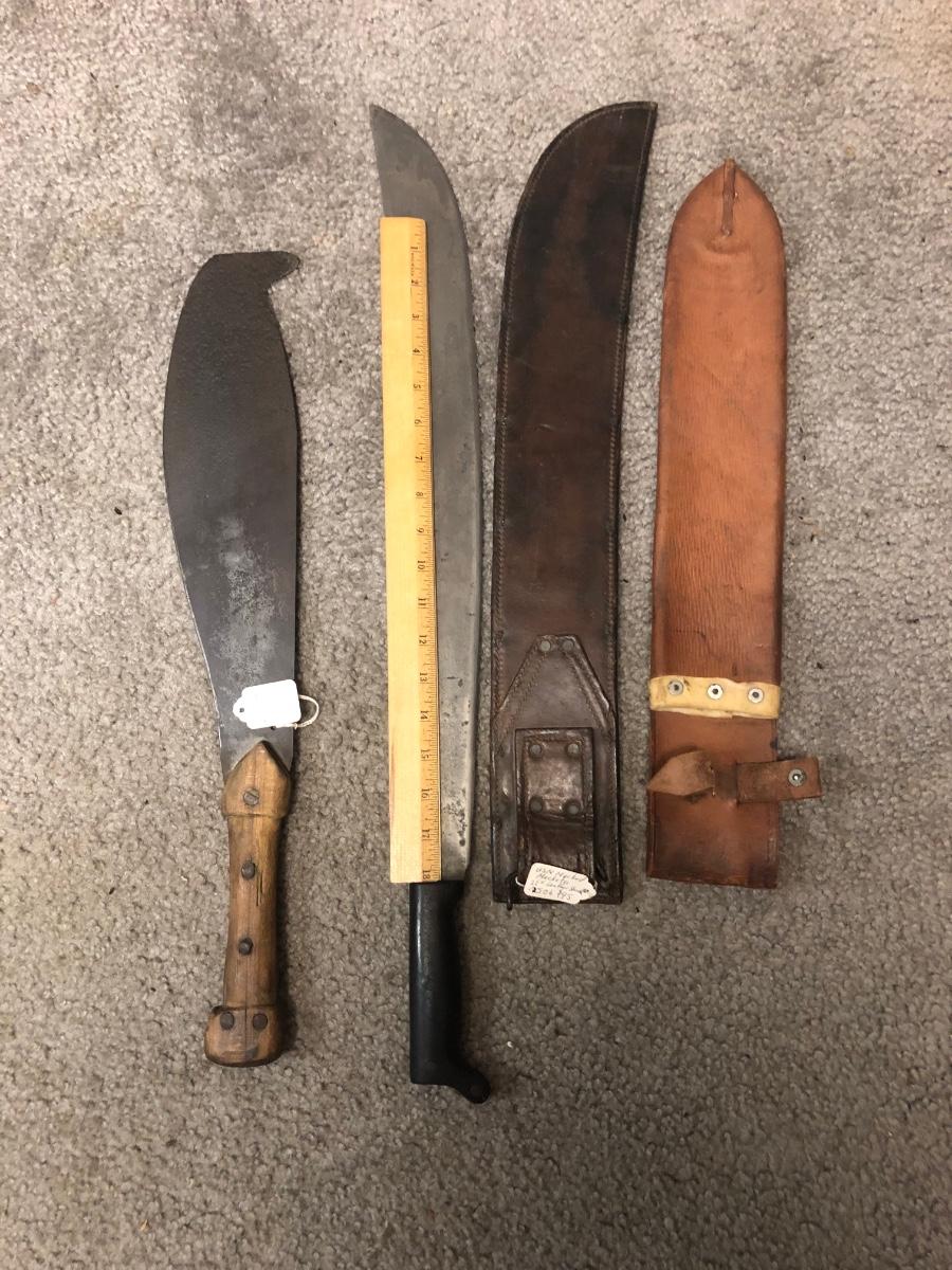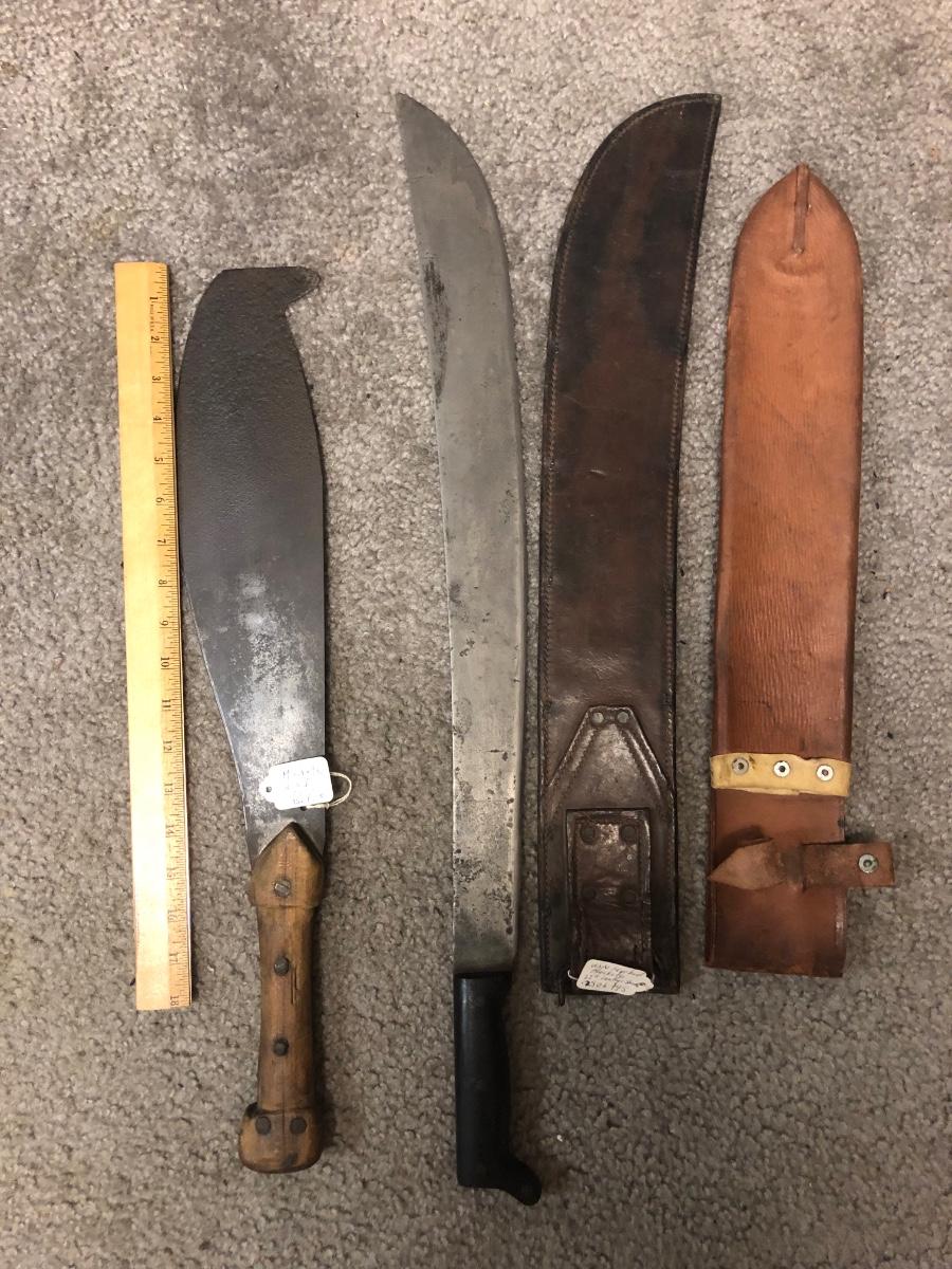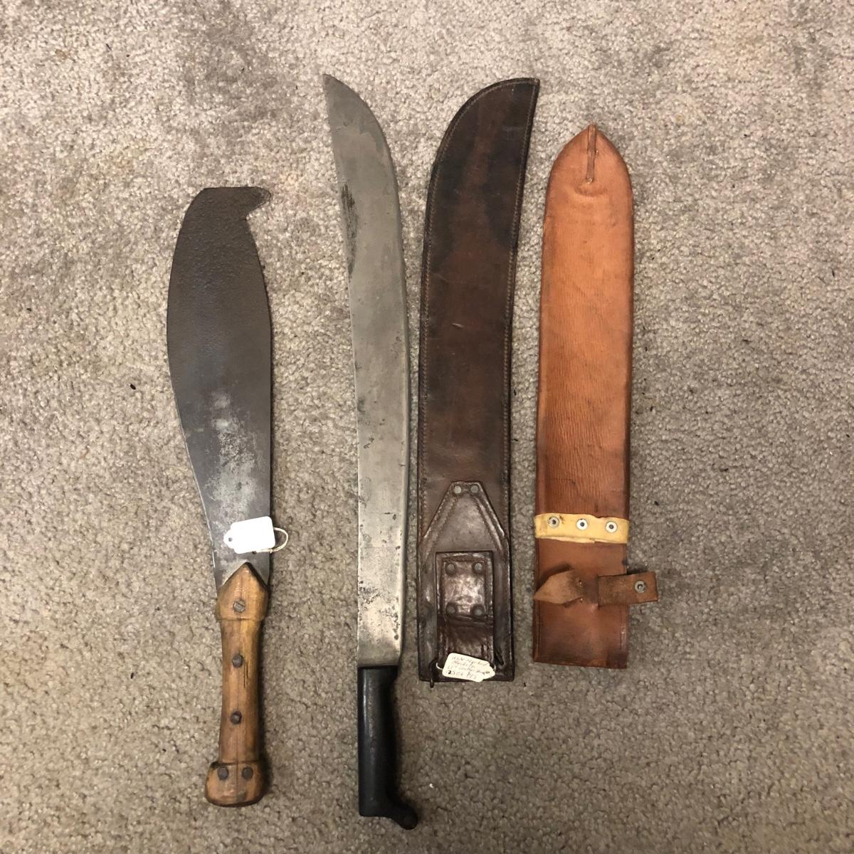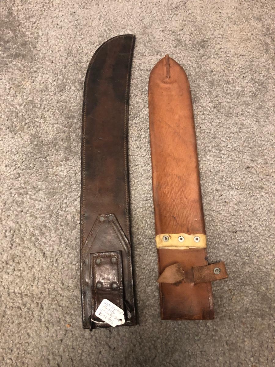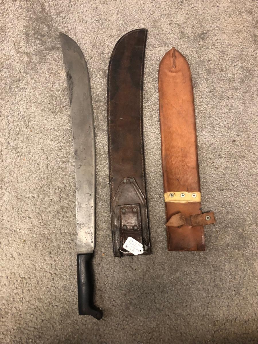 LOT45M: 1910s Machete & US Navy Marked Machete w/ 22" Leather Sheath