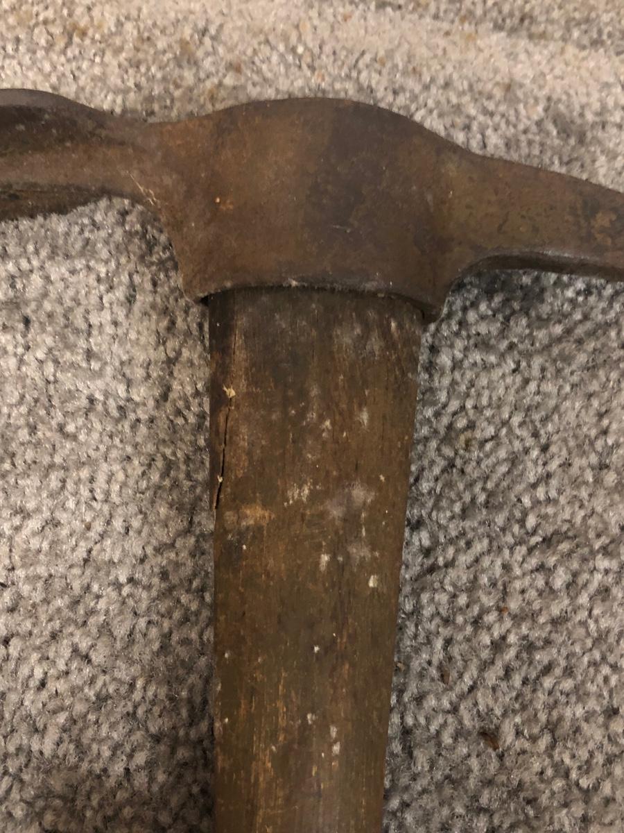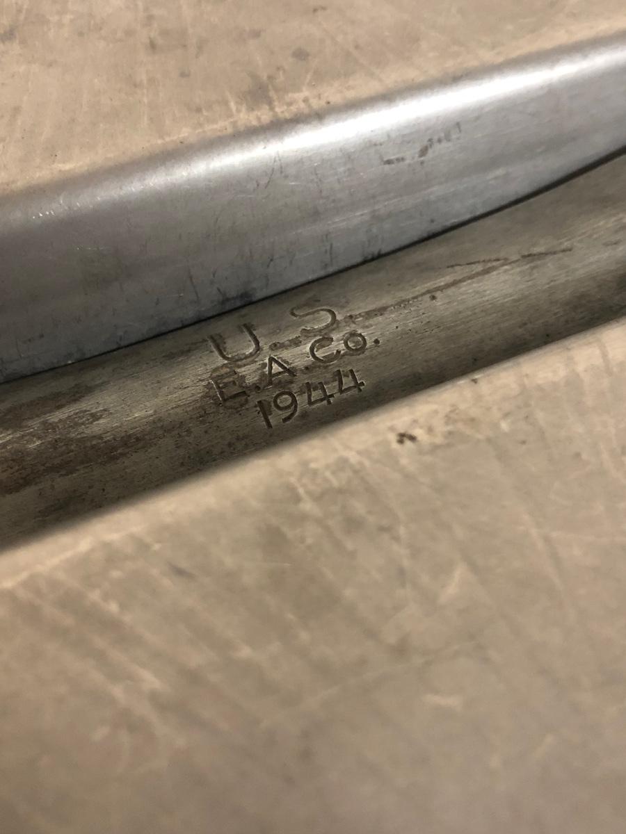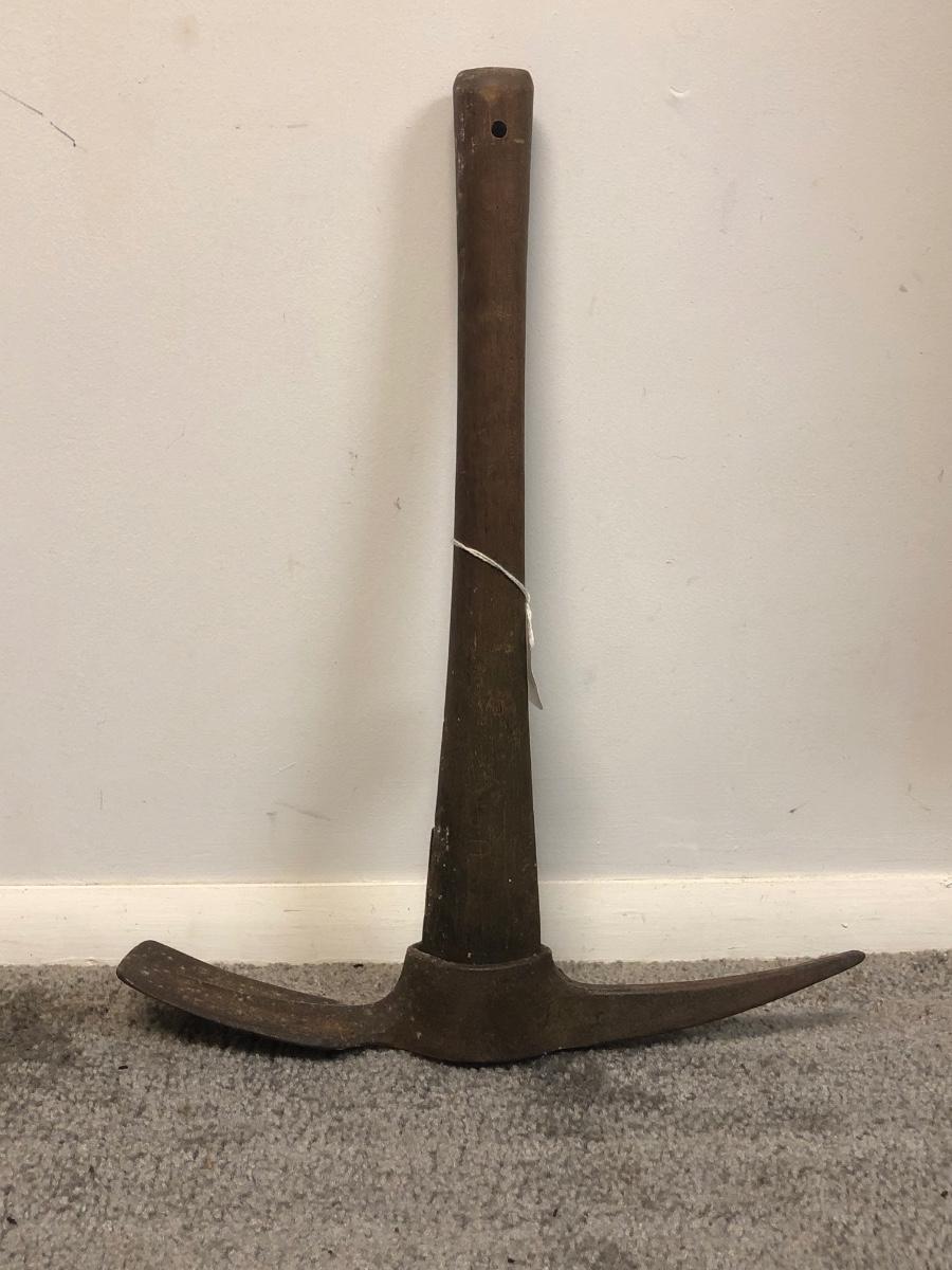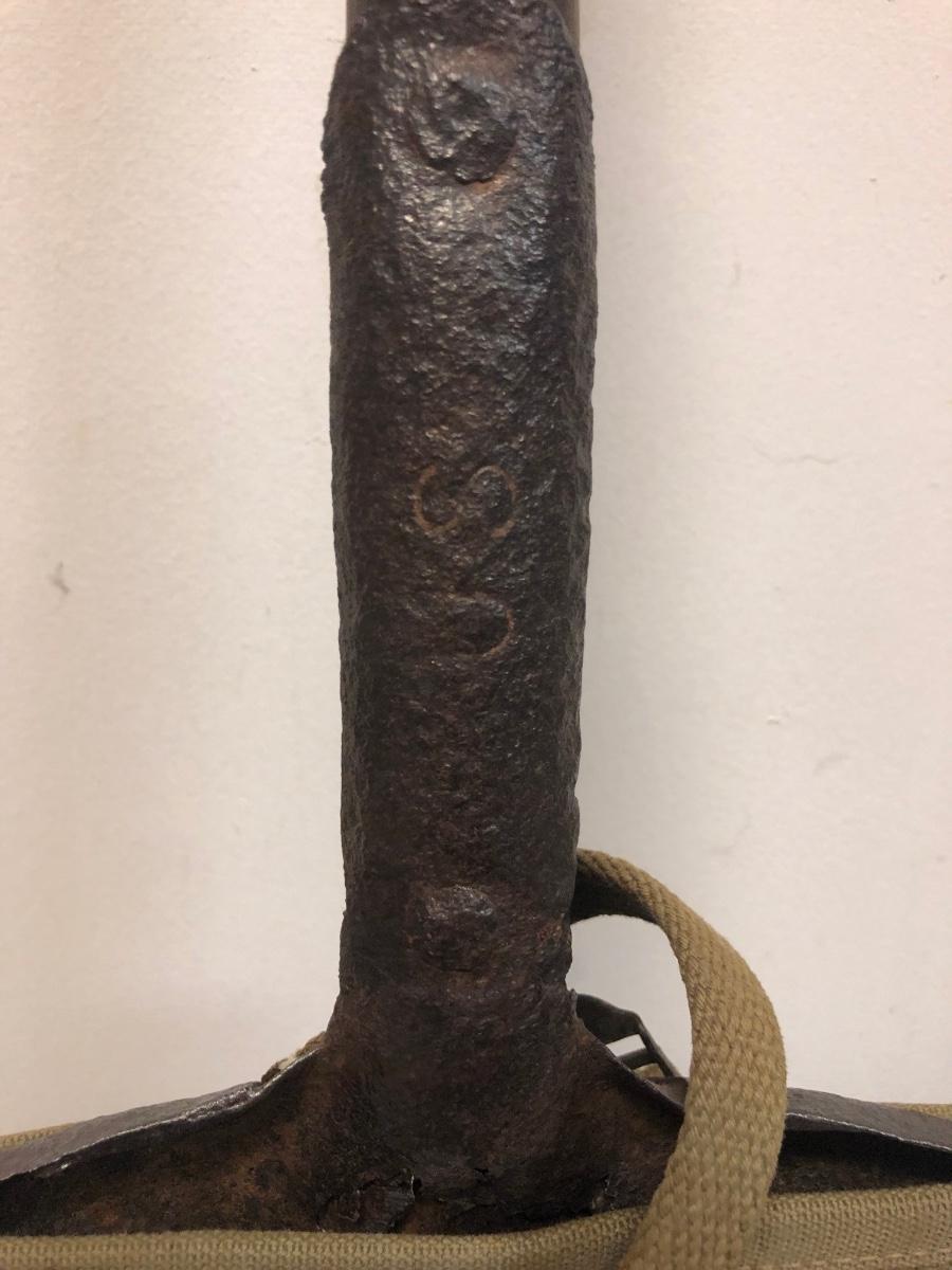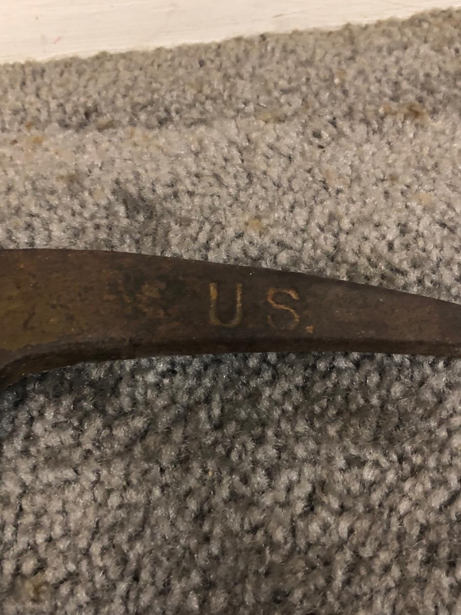 Includes a folding army green table, two mess kits from WWII and a stove with boxes of compressed fuel. Also includes a large tin of Civil Defense All Purpose Survival Crackers,, a shovel with a US shovel cover, an axe and a pickaxe.