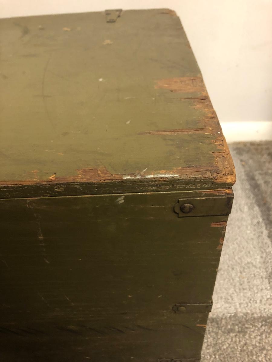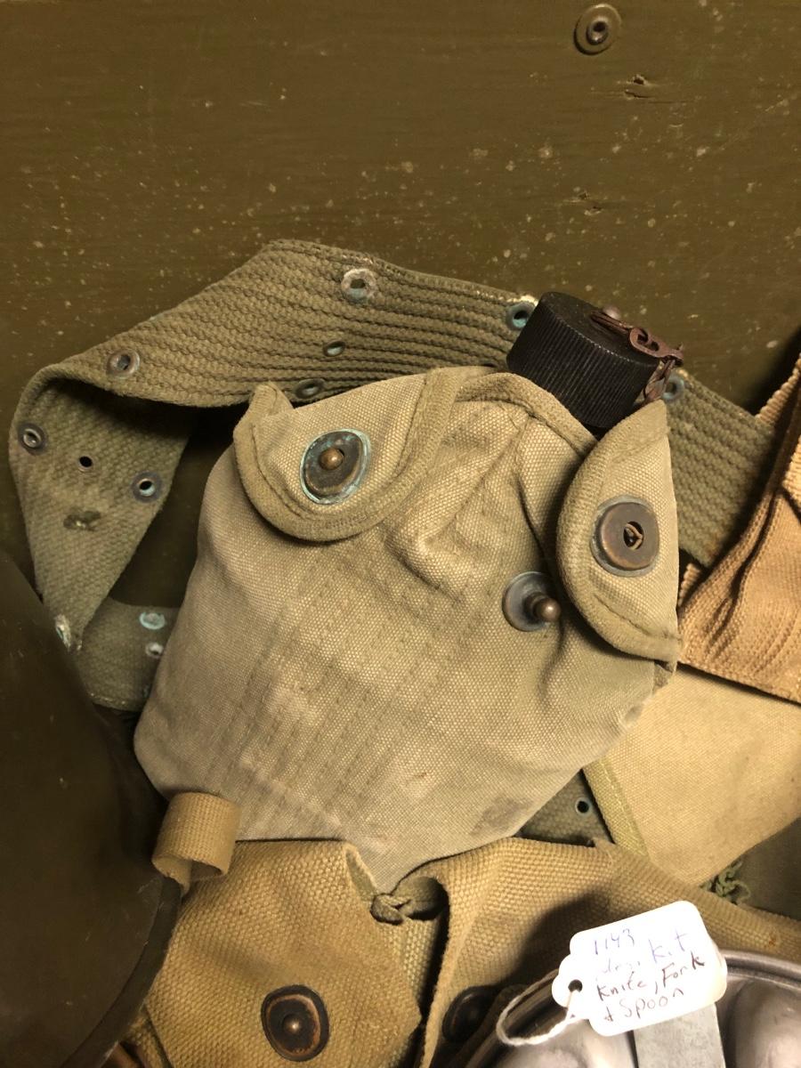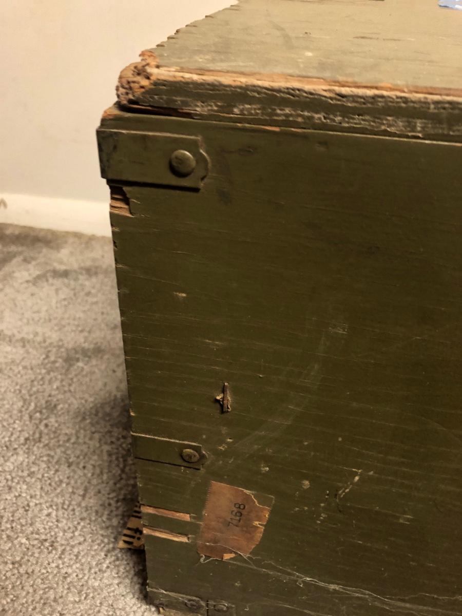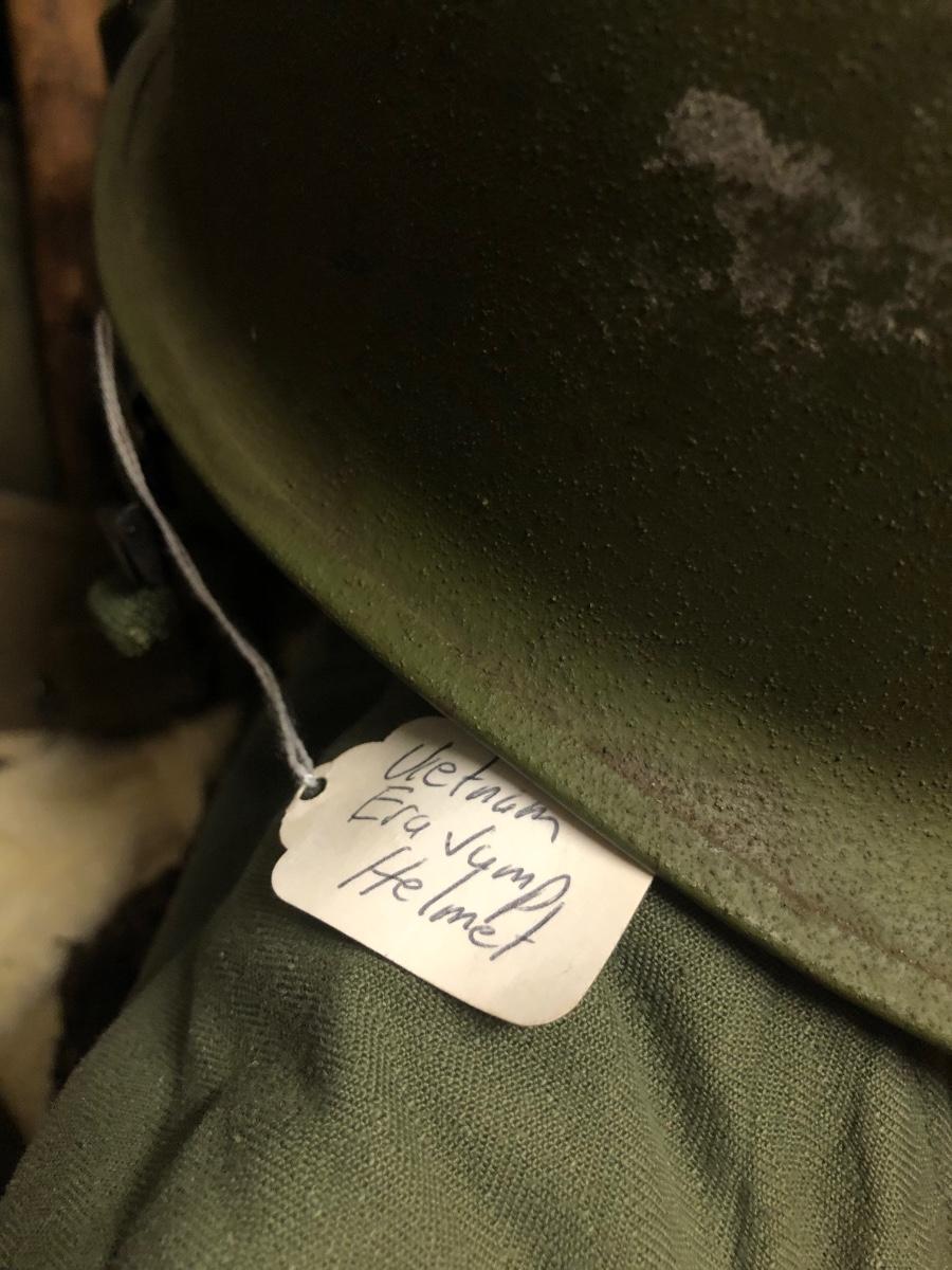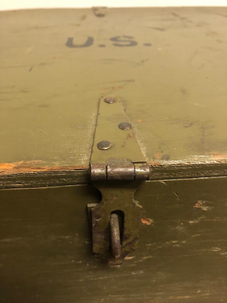 Includes the locker and all its contents. Contents include helmets, belts, mess kits & more. Footlocker measures 32W x 16D x 14H.