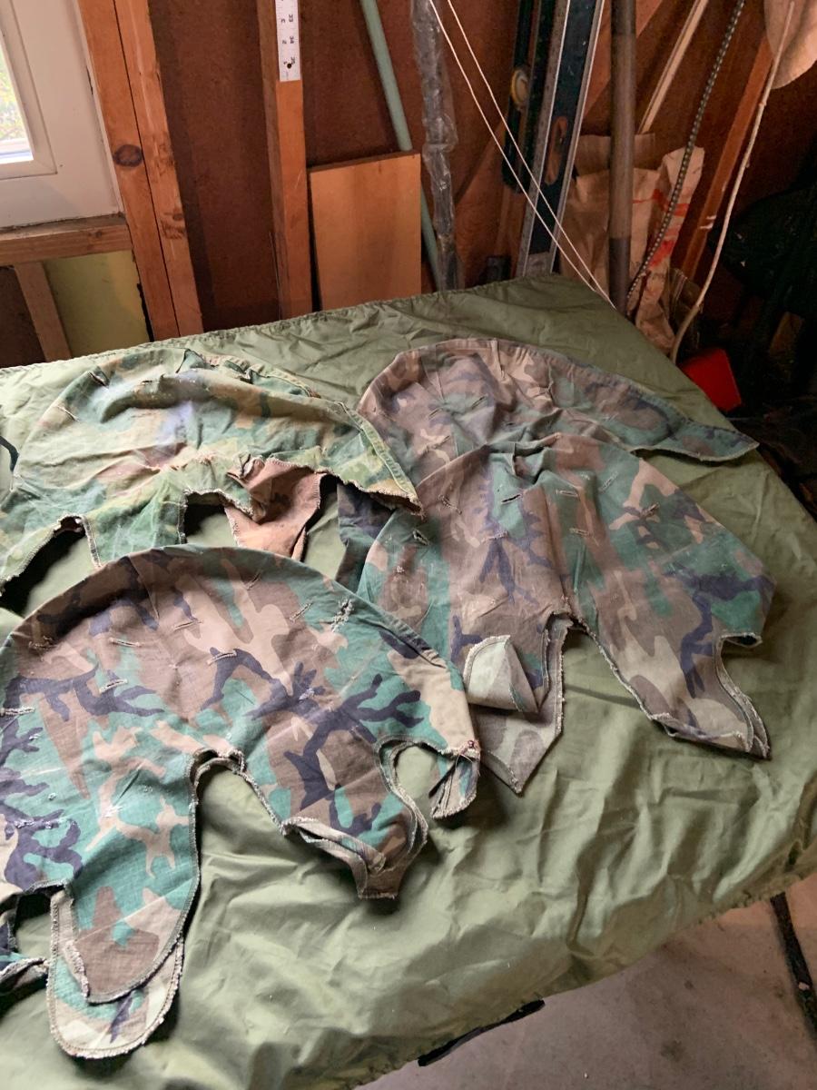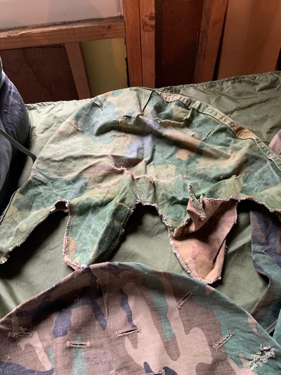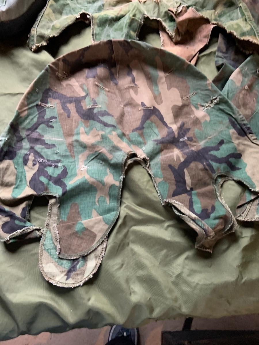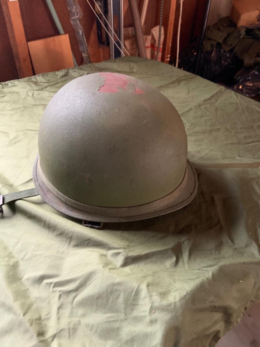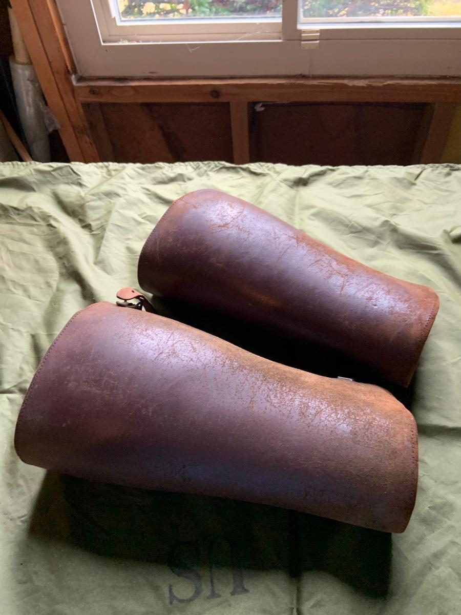 LOT:60G: Large assortment of US Military Garments including Helmets Helmet Covers, Boots, Gloves and canvas and leather Gaiters