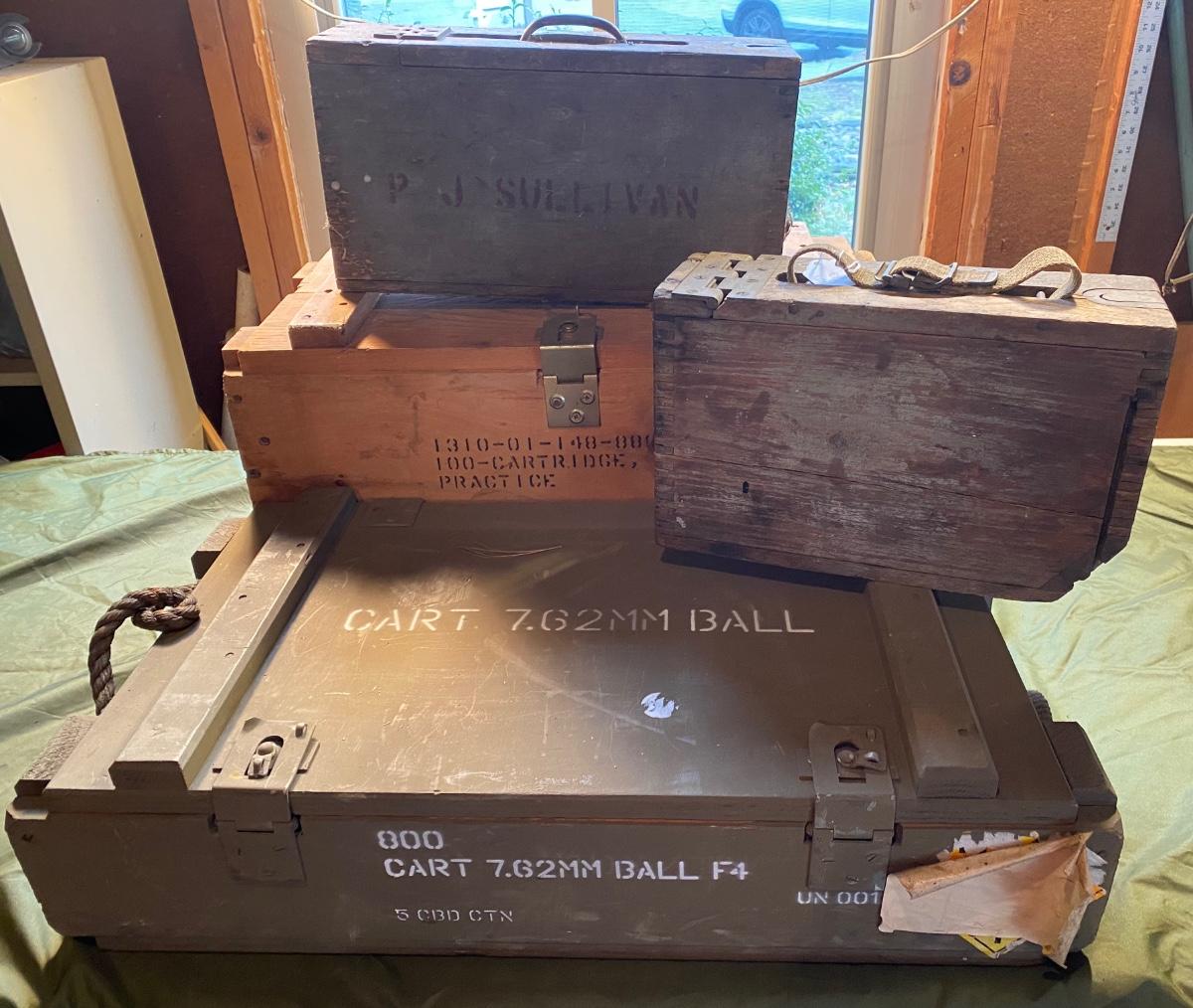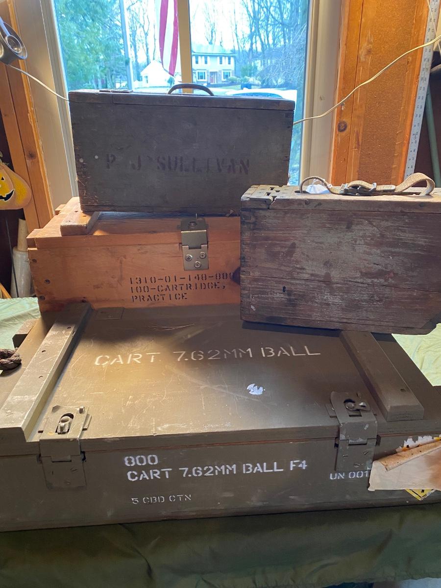 LOT 74C: Vintage Wooden Military Ammunition Box & Storage Crates