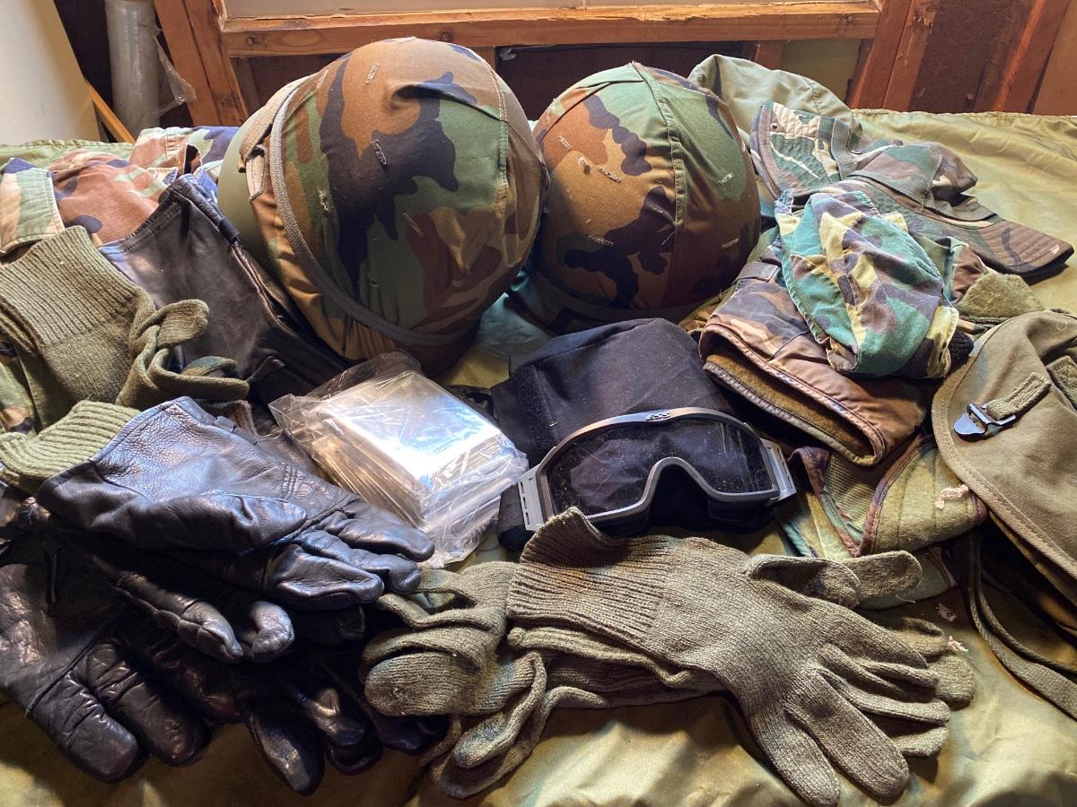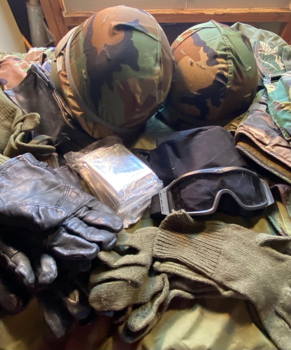 LOT 79C: Military Helmets, Gloves, Clothing, Goggles & More