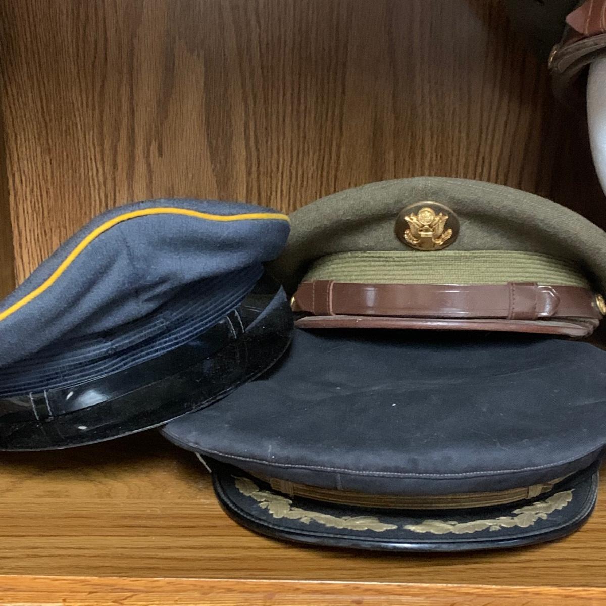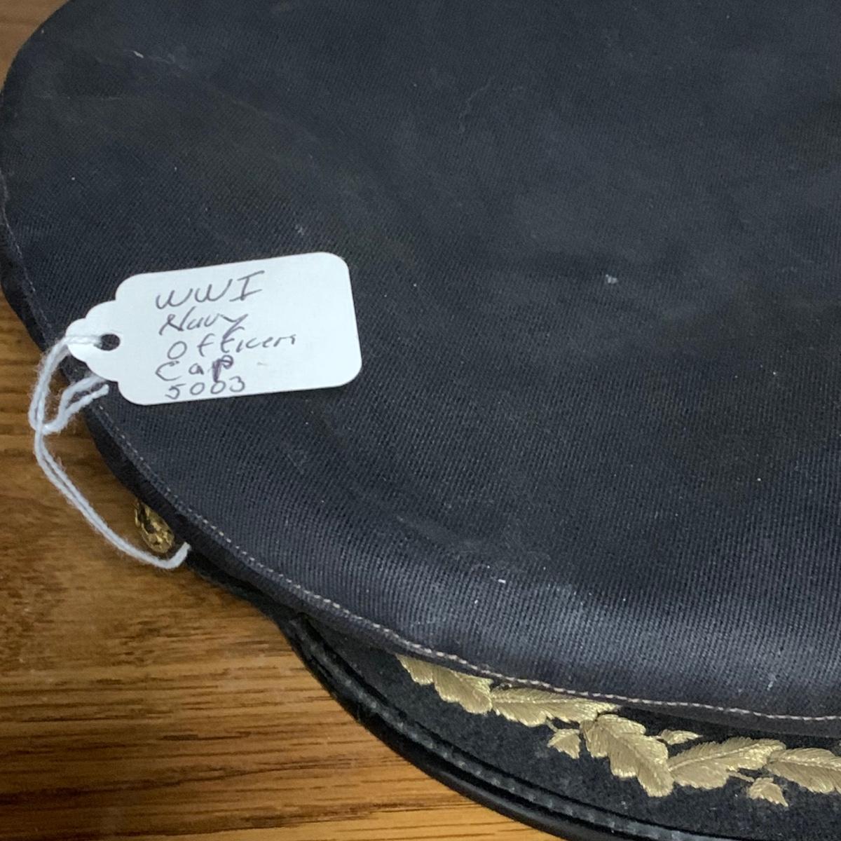 LOT 84R: Vintage Military Visor Caps Including a  WWI Navy Officers Cap  & Others