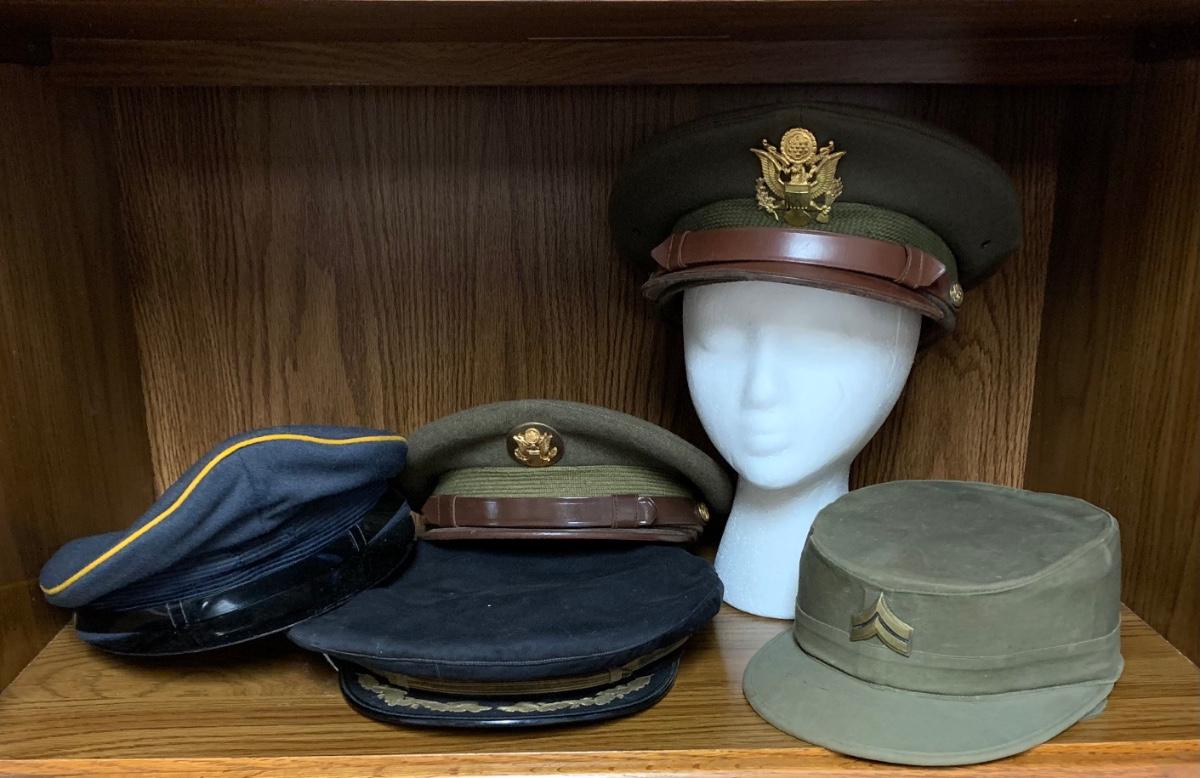 LOT 84R: Vintage Military Visor Caps Including a WWI Navy Officers Cap & Others