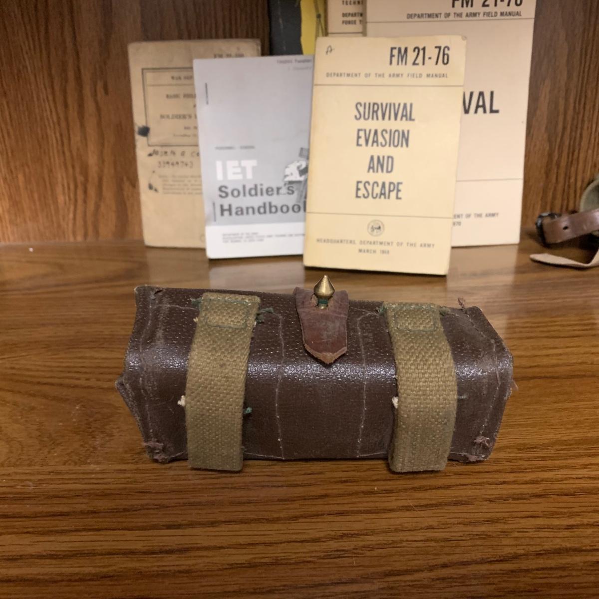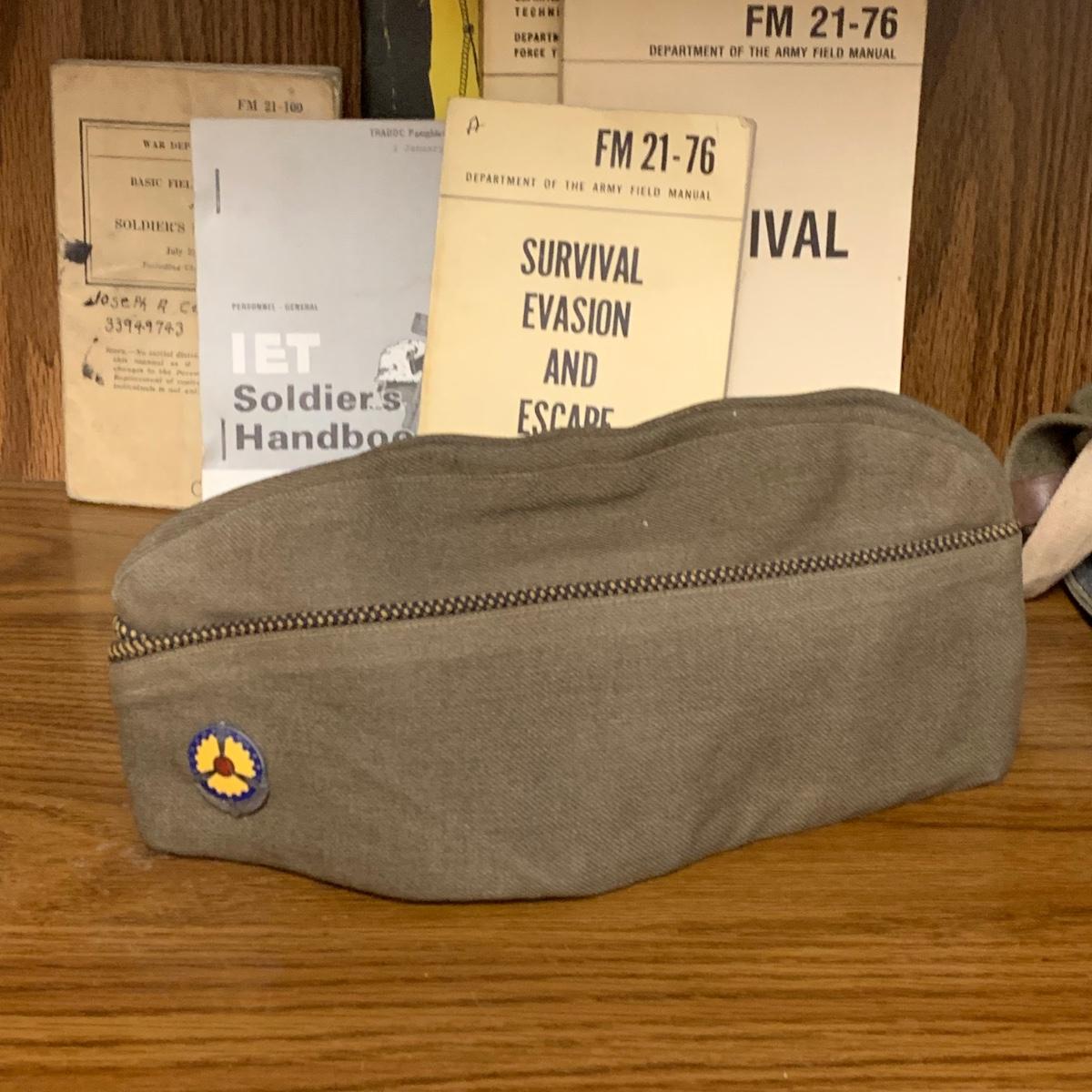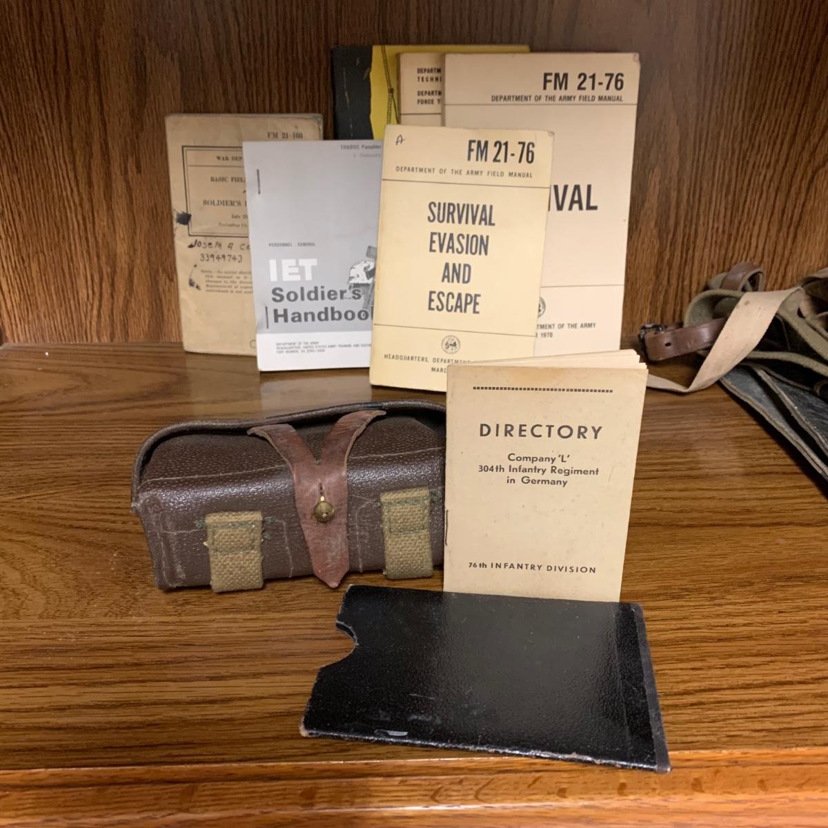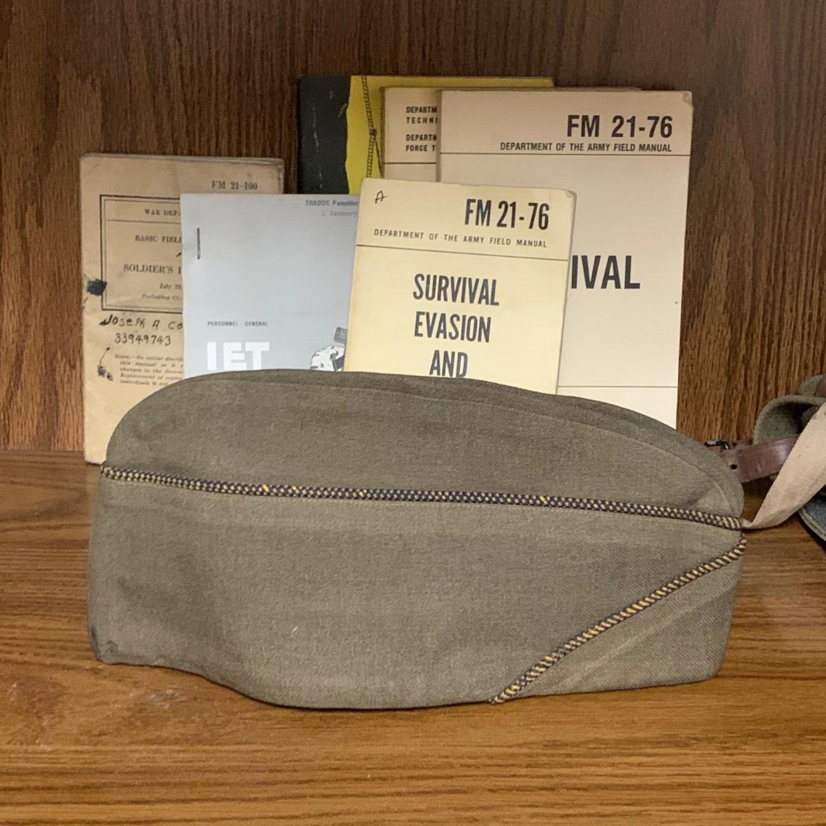 LOT 88R: Vintage US Regulation Military Bugle Trumpet Horn Brass, Leather Pouches, Uniform Hats & More