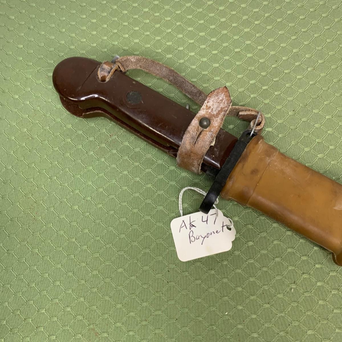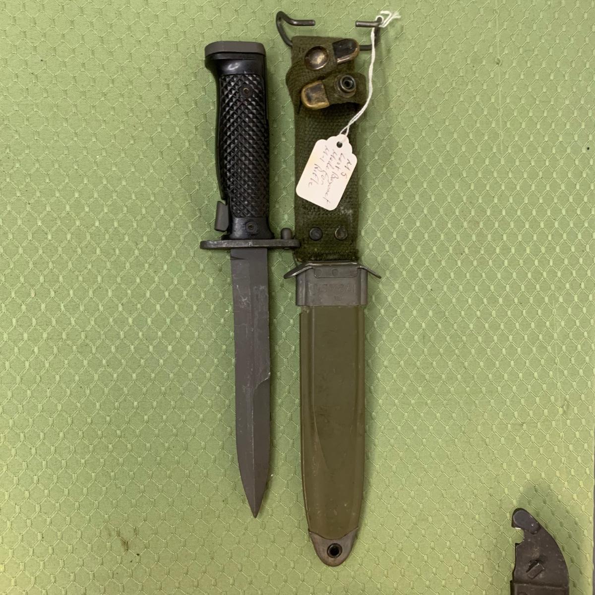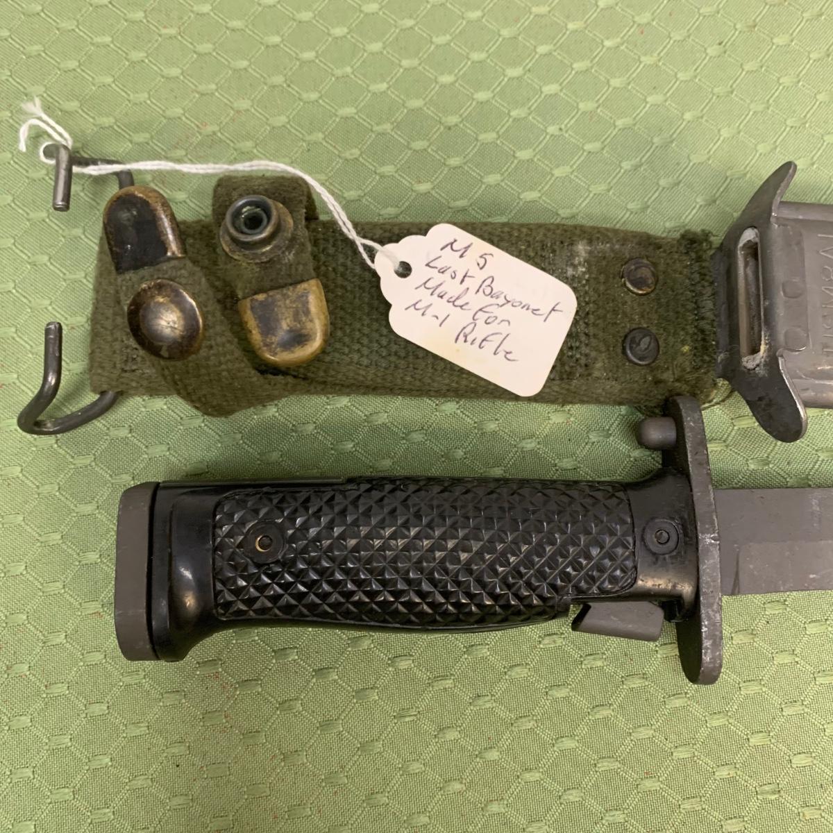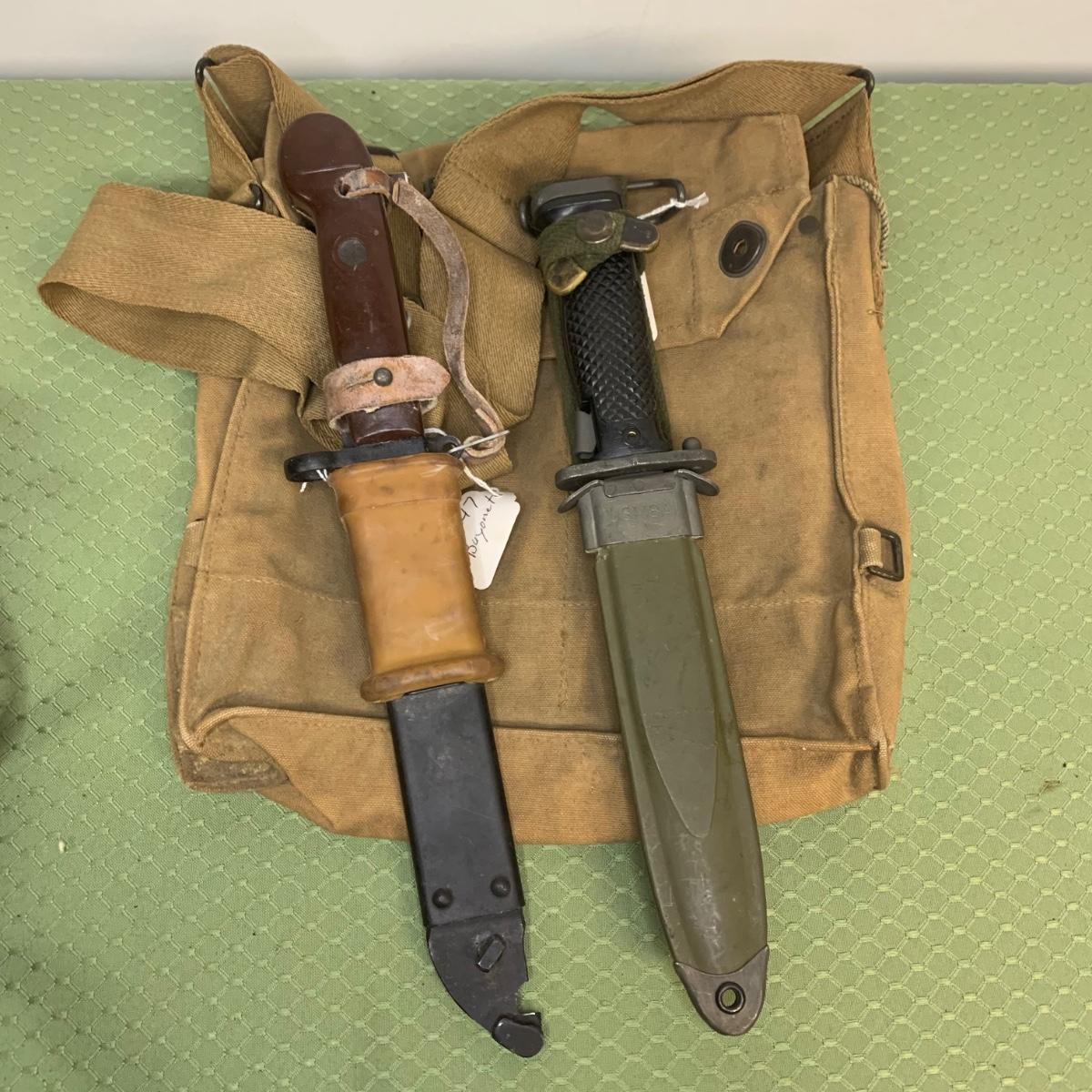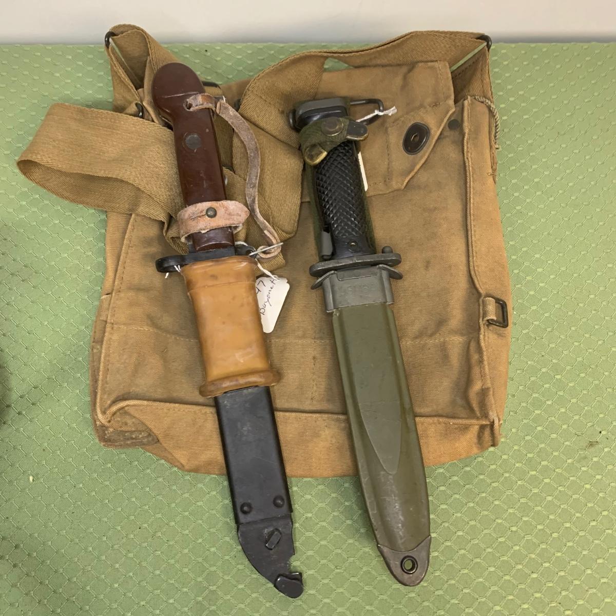 LOT 92R: Vintage US Military Bayonet Knife (USM8A1), Vintage AK 47 Bayonet,& Military Bag