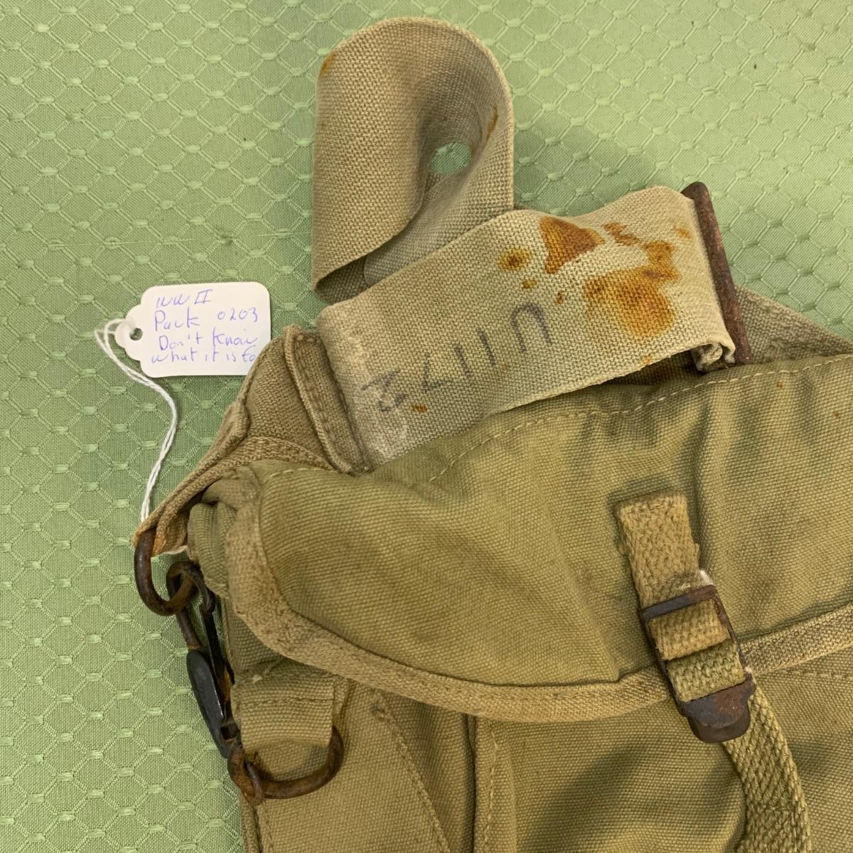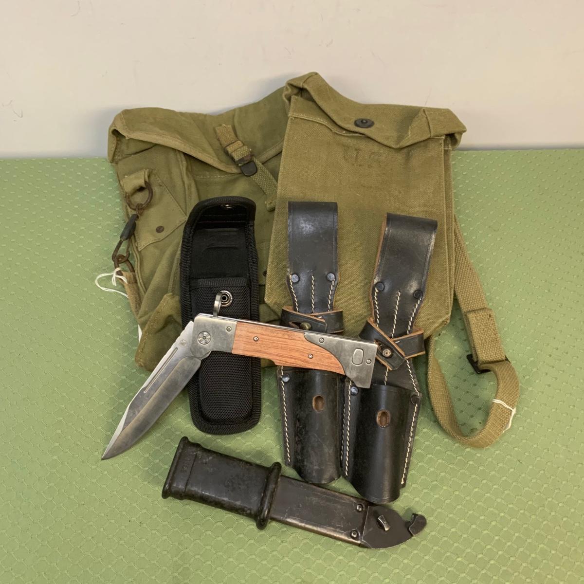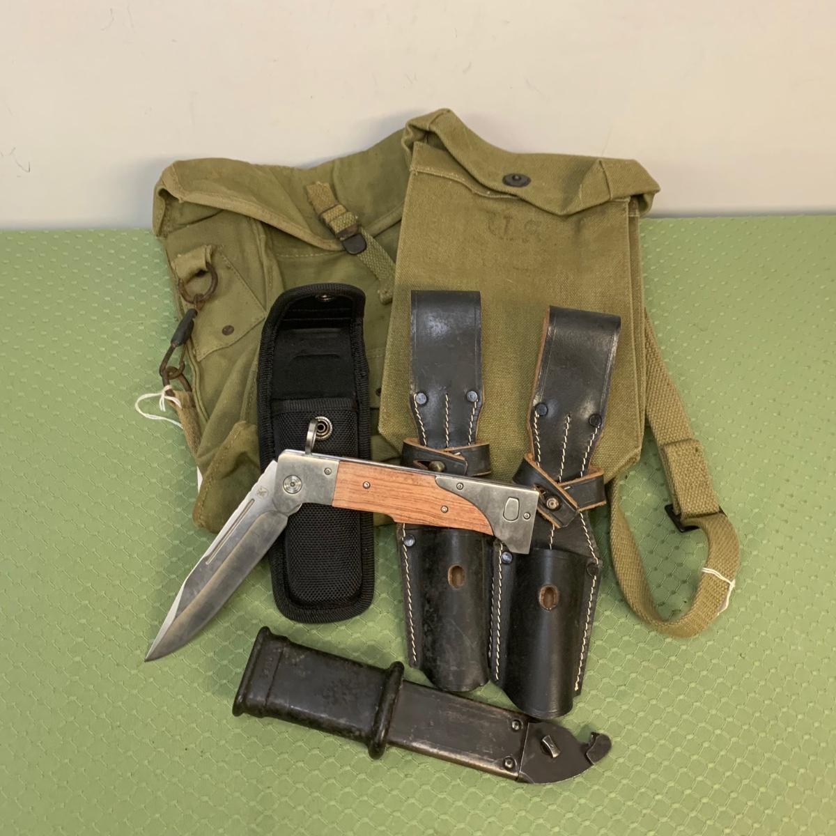 LOT 94R: Vintage WWII Pack, 1943 Army Bag, Rifle Bayonet Frog