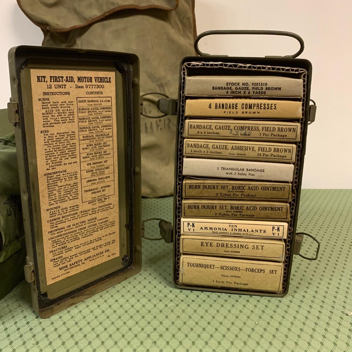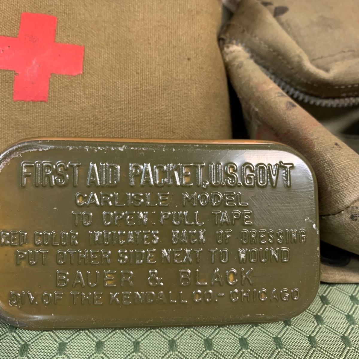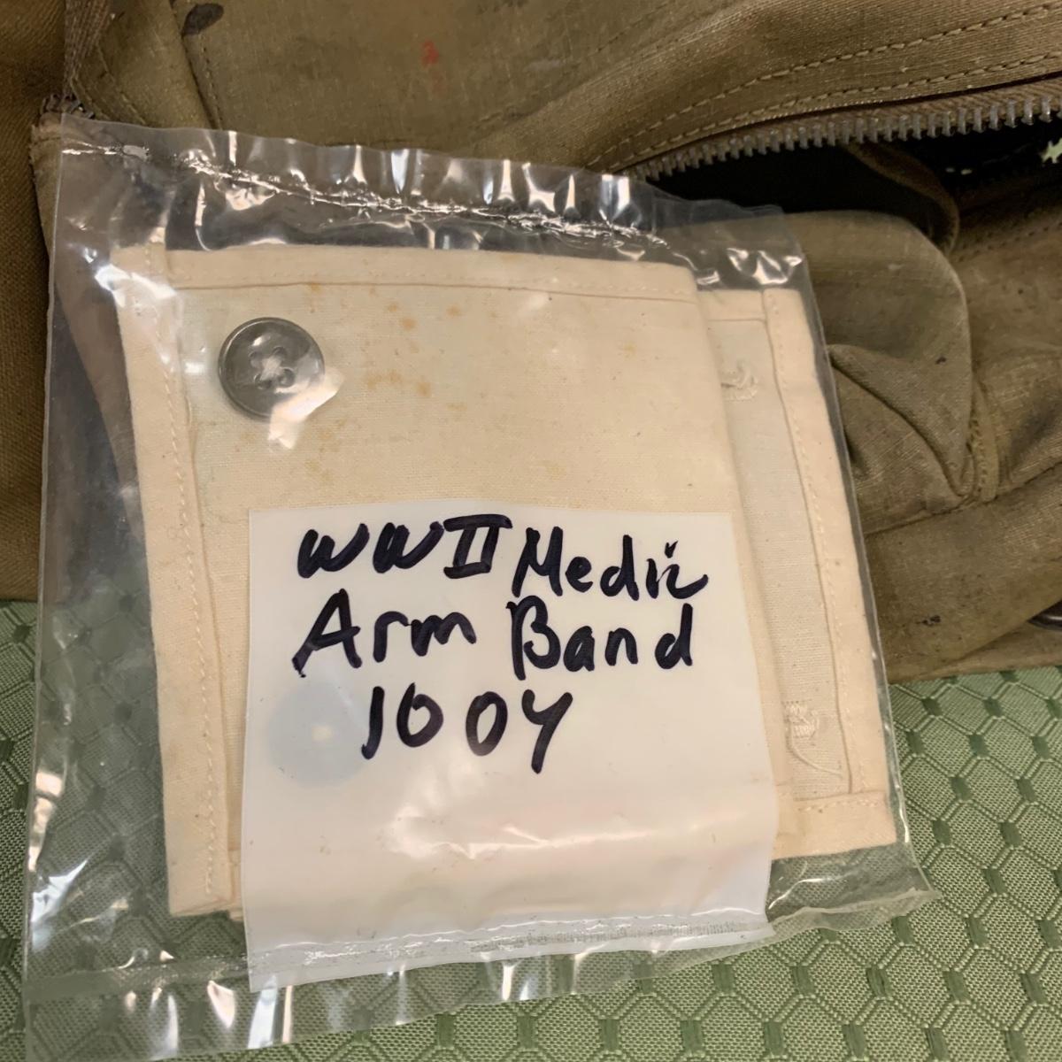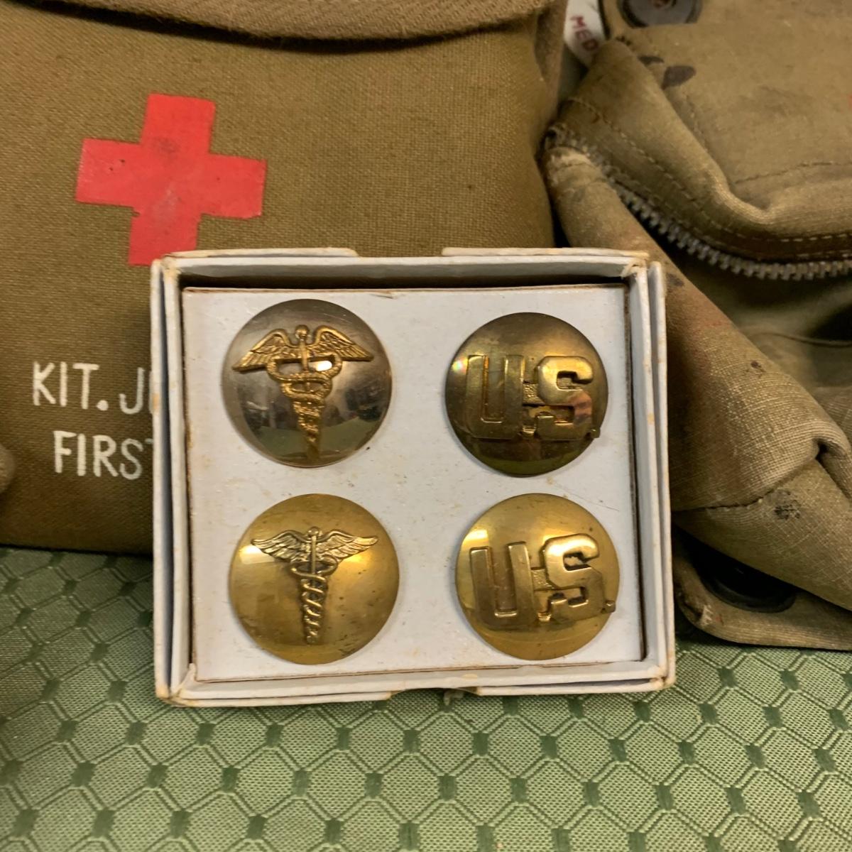 LOT 100R: Vintage Military First Aid: Pins, WWLL Medic Arm Band, Emergency Stretcher, Helmet & More