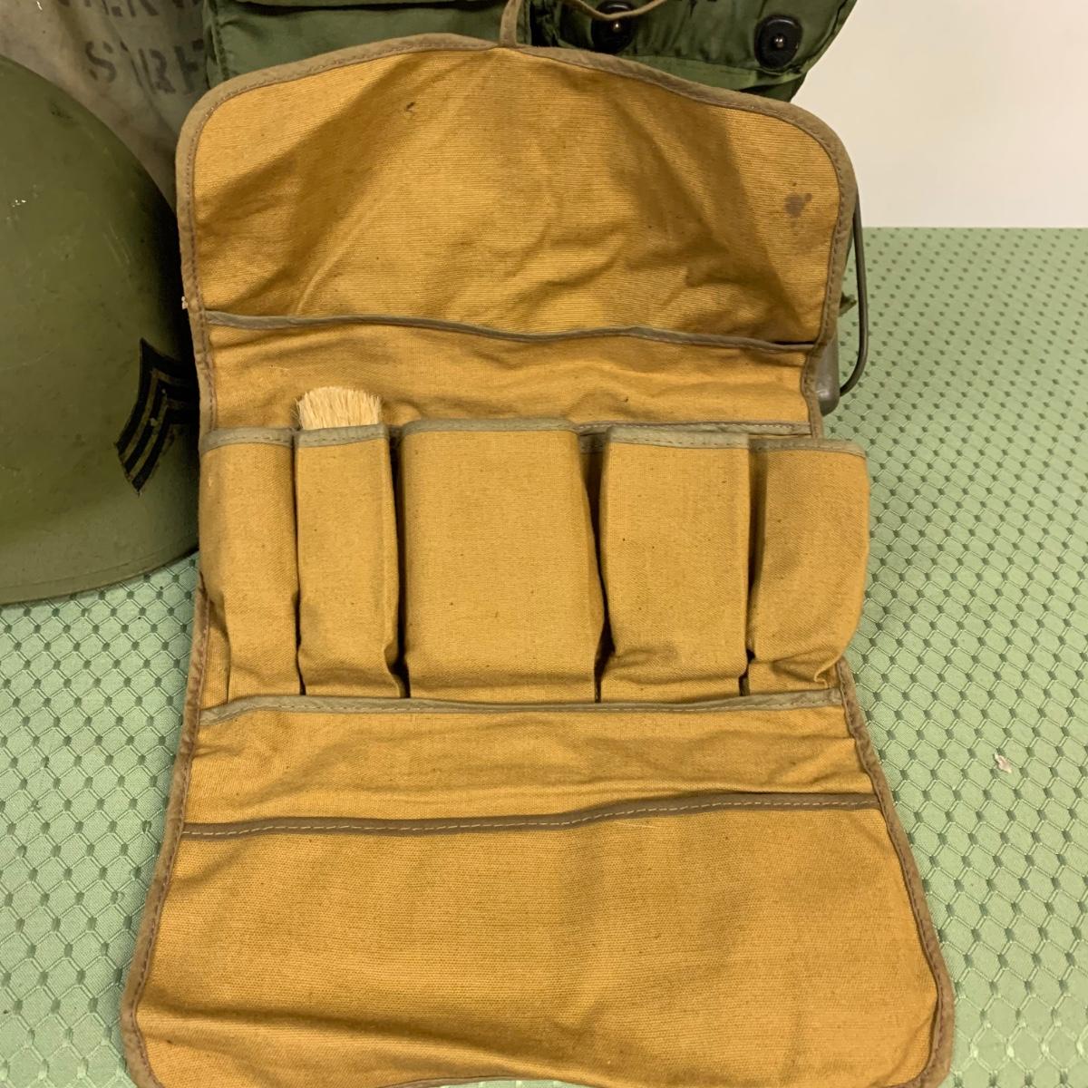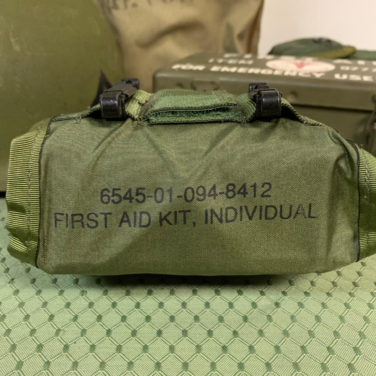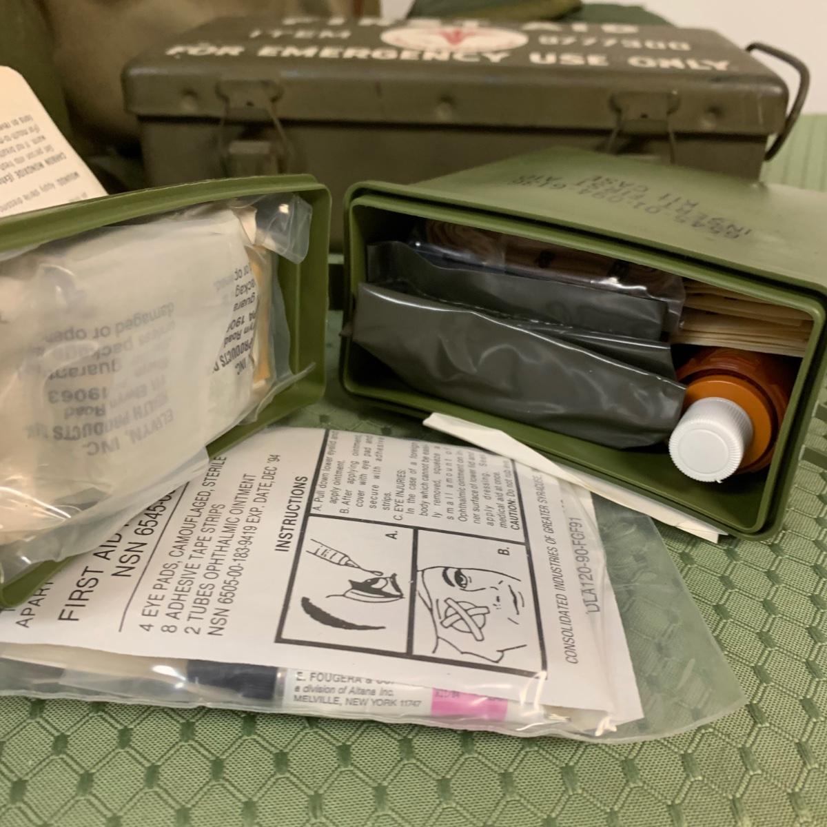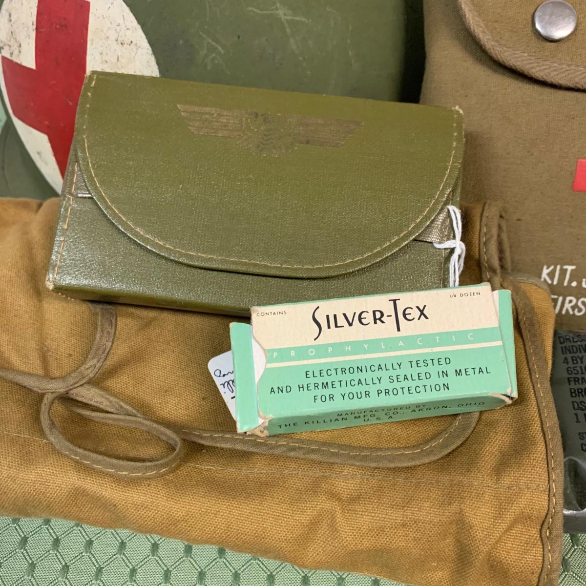 LOT 100R: Vintage Military First Aid: Pins, WWLL Medic Arm Band, Emergency Stretcher, Helmet & More
