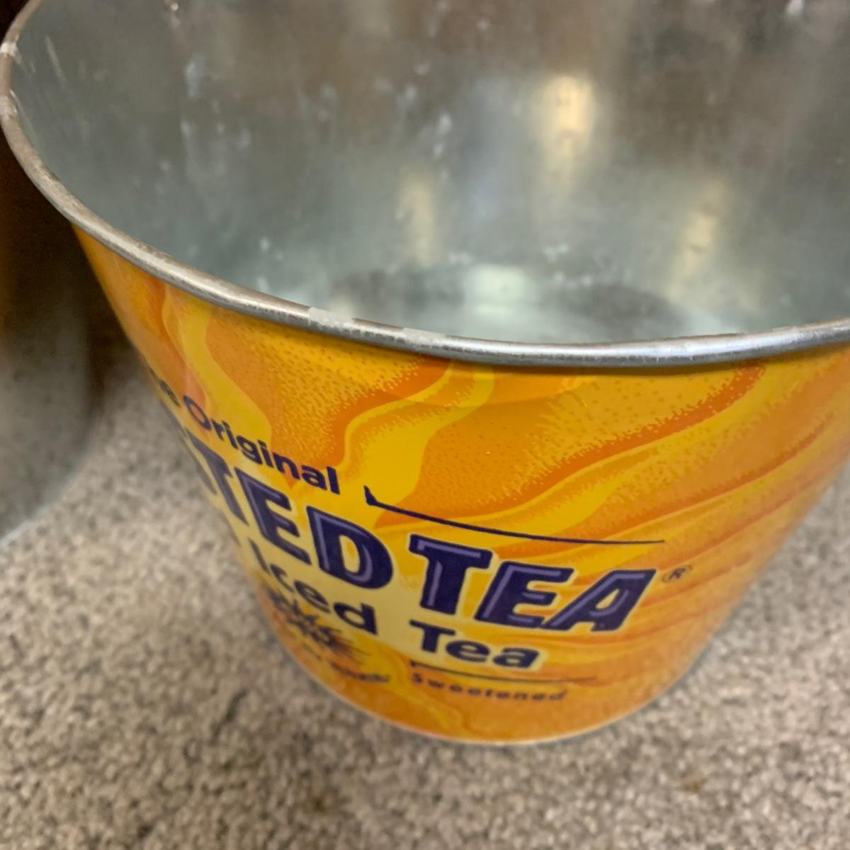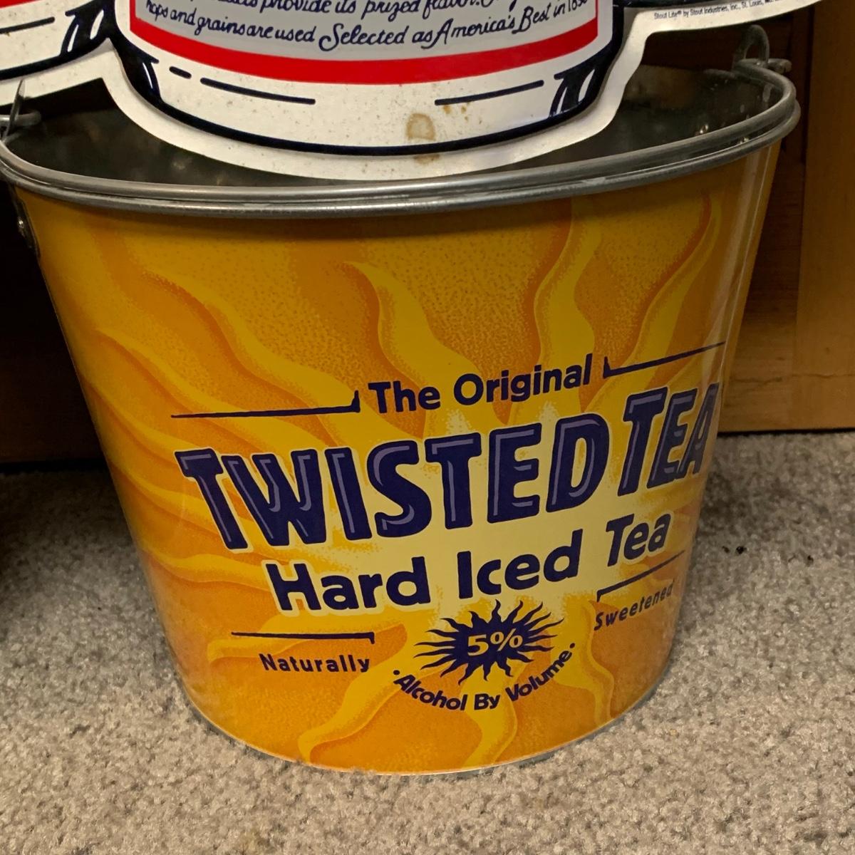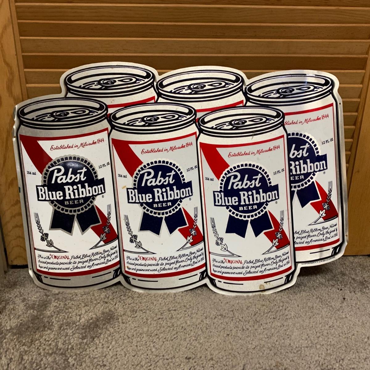 LOT 104R: Metal Pabst Blue Ribbon Sign, Twisted Iced & Samuel Adams Buckets