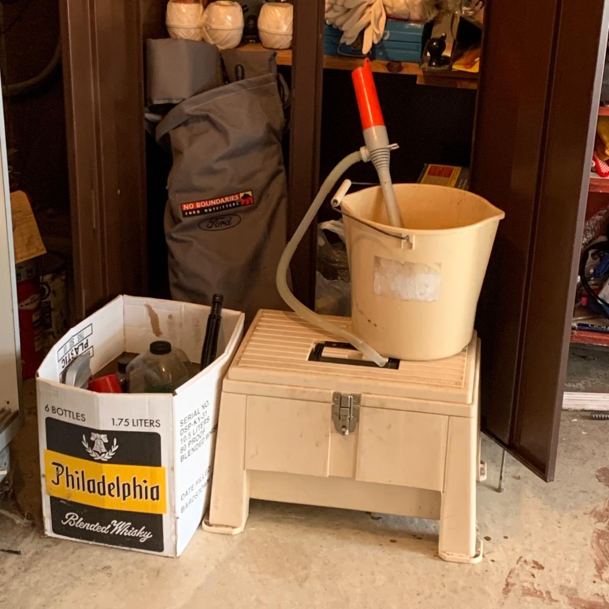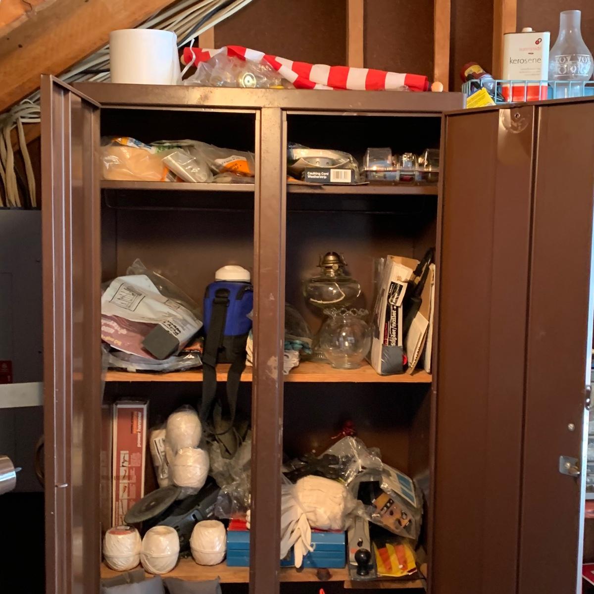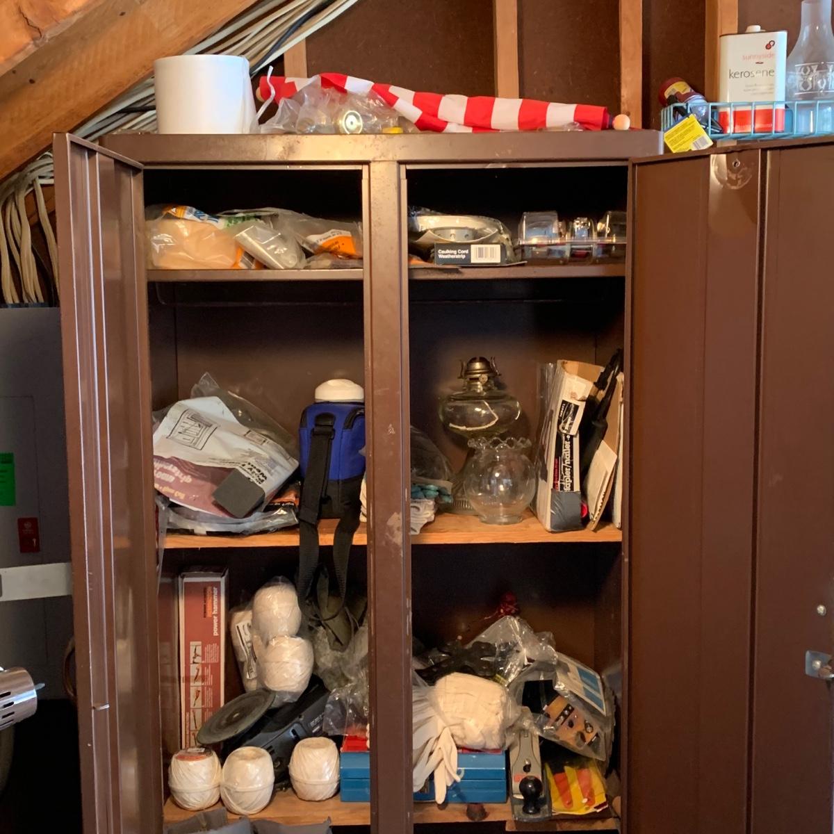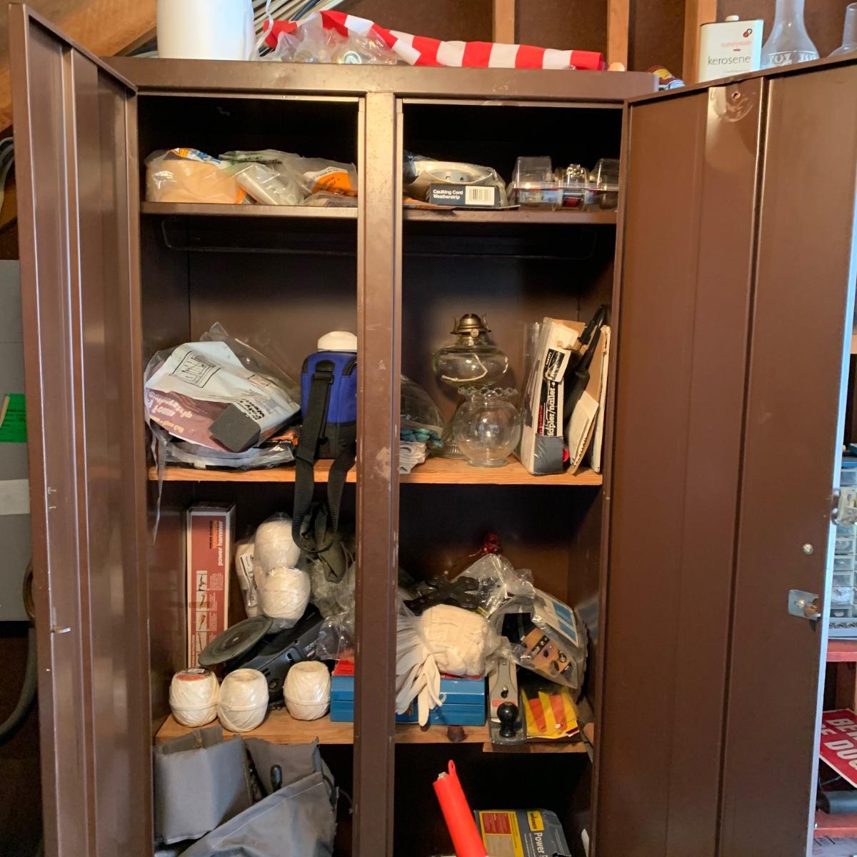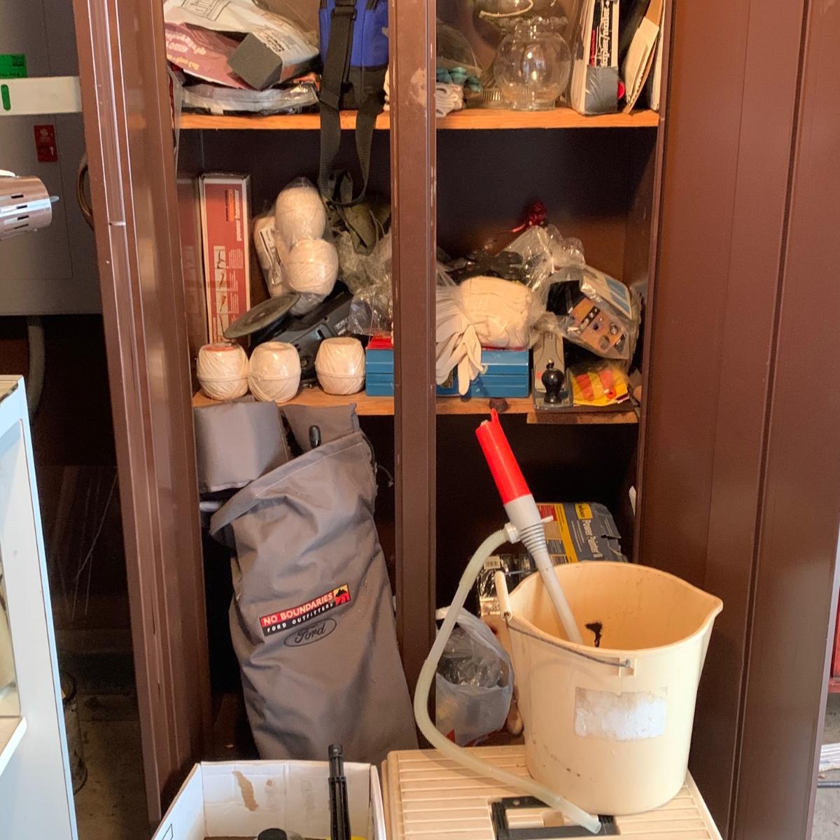 LOT 107R: Contents of Cabinet: Tools, Cleaning. String & Much More
