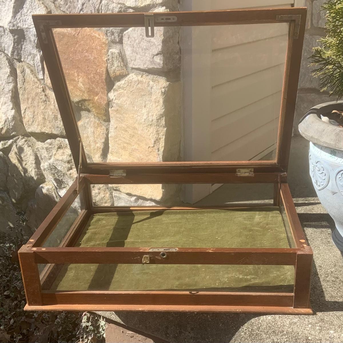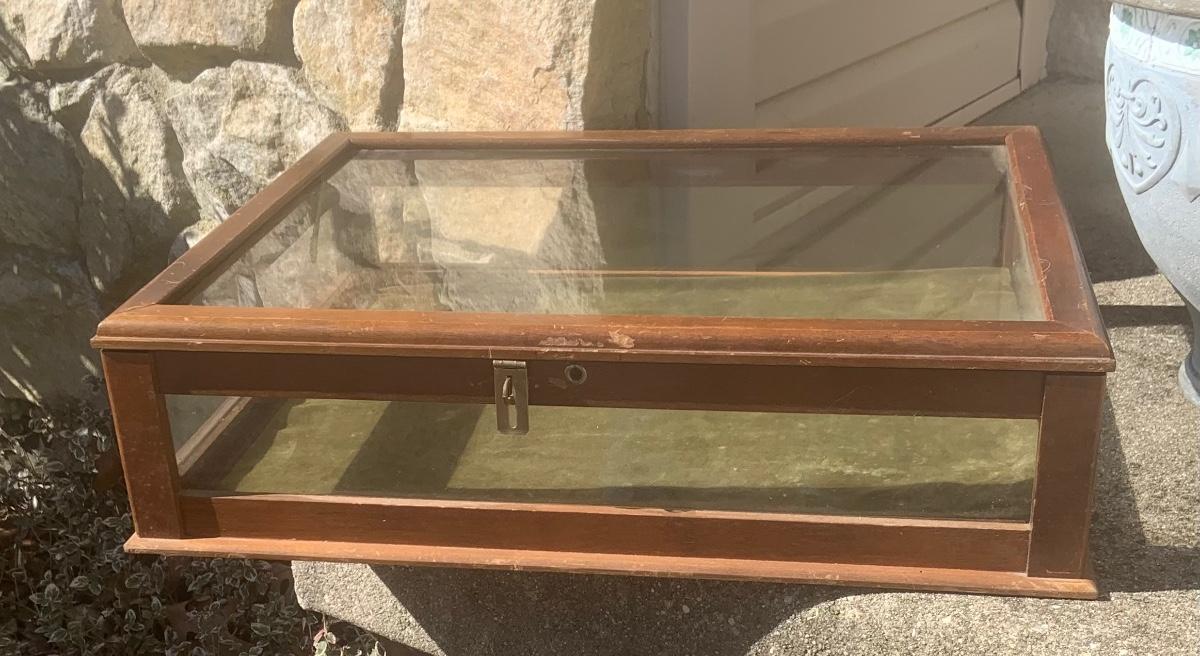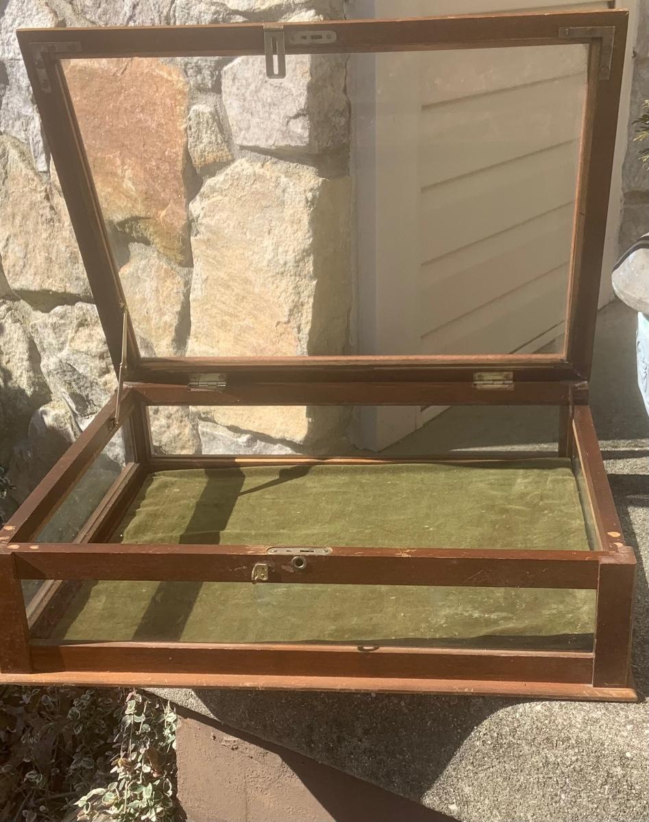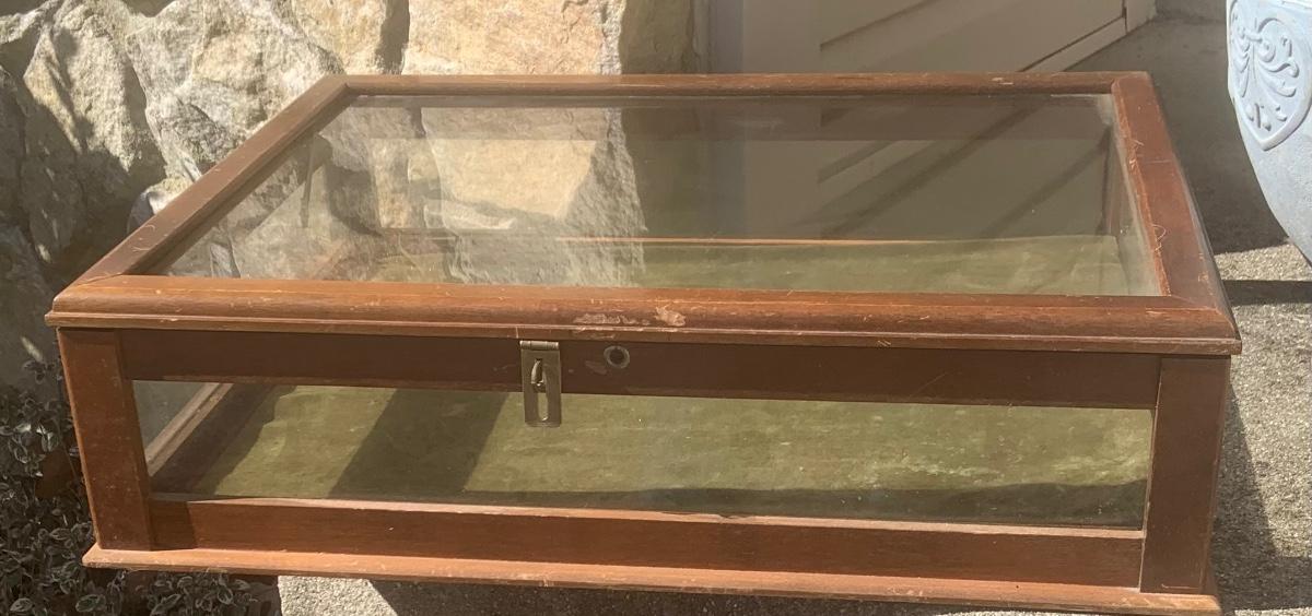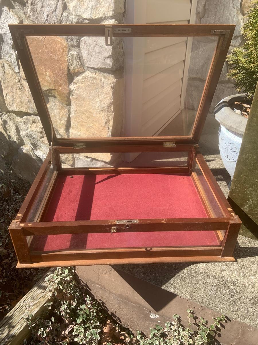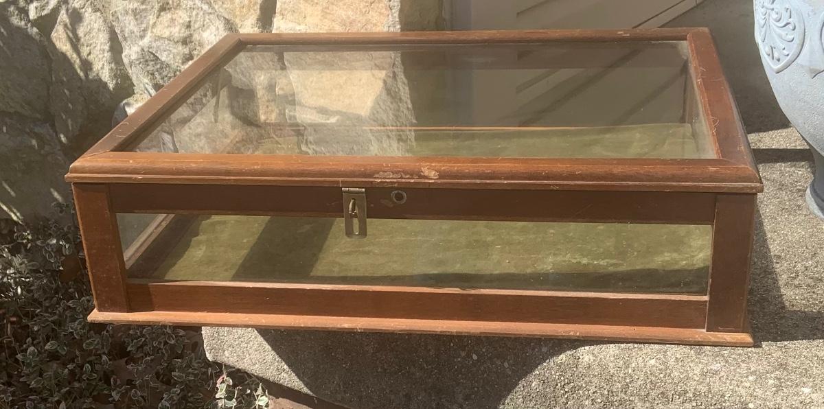 LOT:115G: Wood & Glass Display Case w/Removable Bottom Insert.