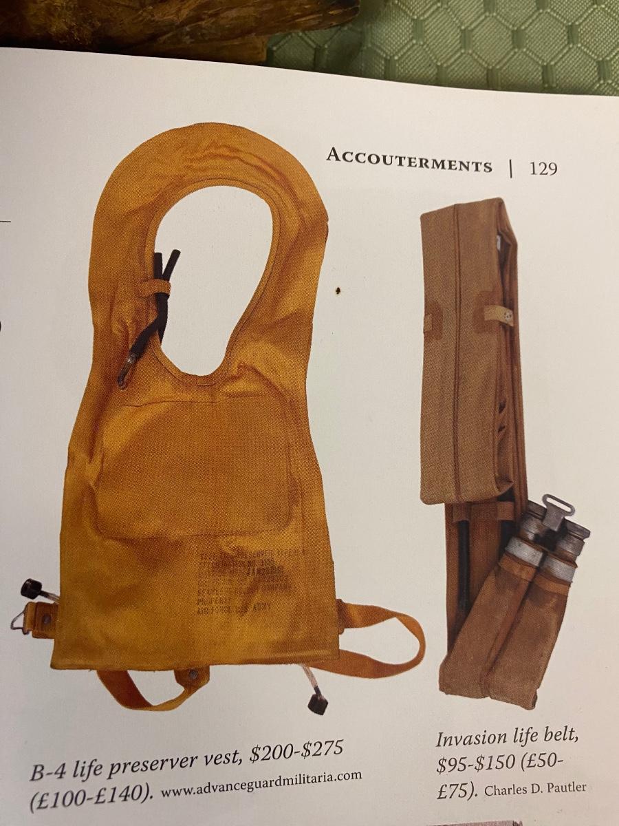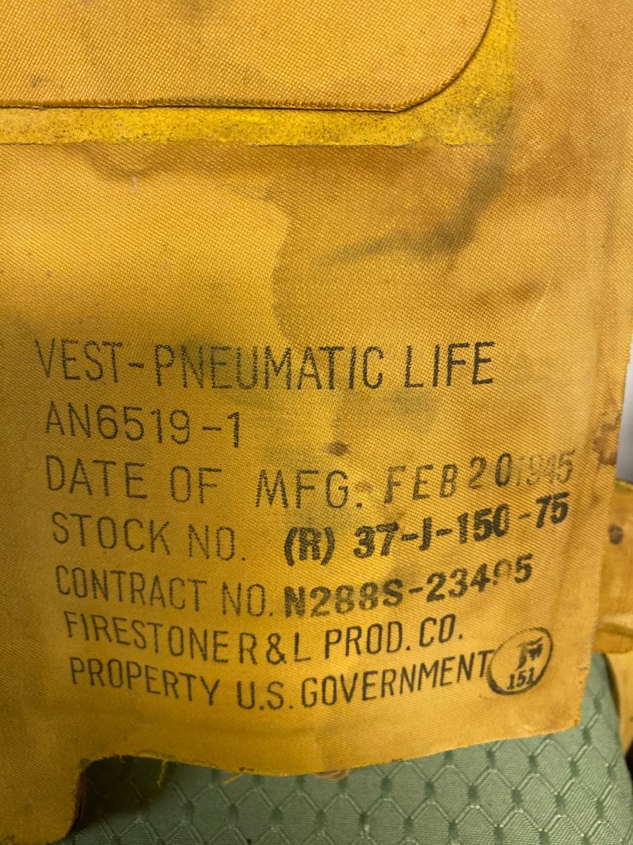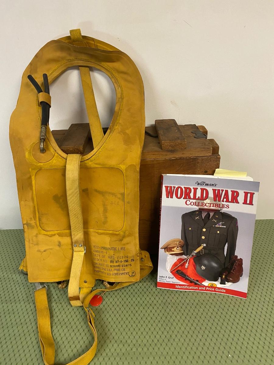 Vintage life vest manufactured Feb 20, 1945 - lot also includes a WWII book showing the vest.