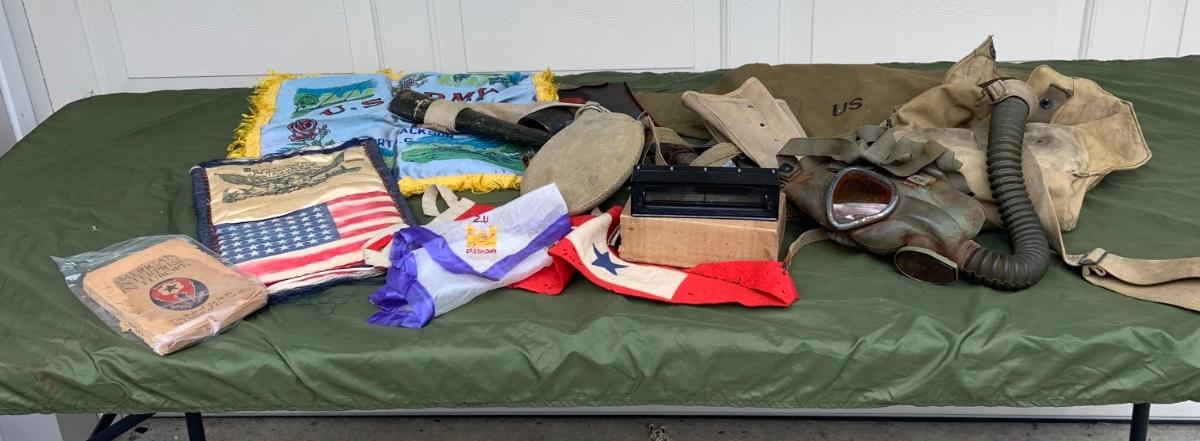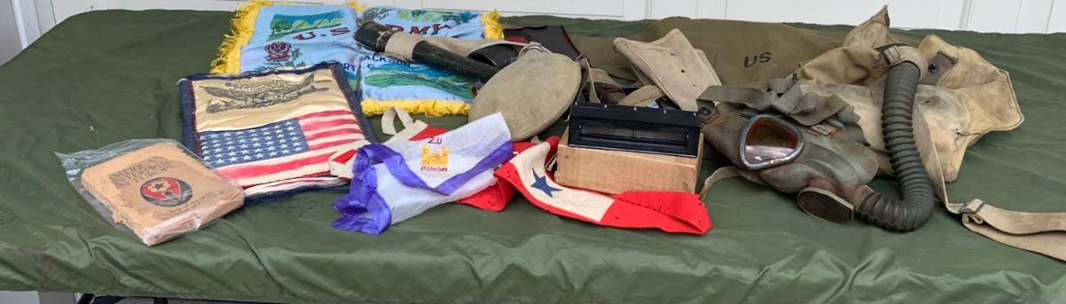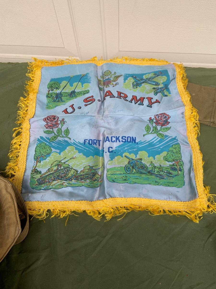 LOT:130G: Vintage Military Memorabilia : Scarfs, Book, Canteen Periscope & More