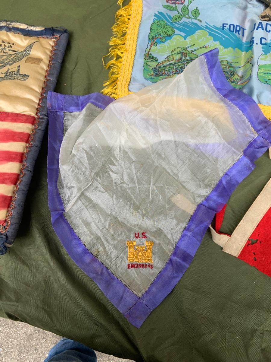Vintage Military Memorabilia including scarfs, book canteen periscope, rifle cover, gas mask machete and more. Please see all pictures as they are the best representation of the items. The pictures show condition, measurements if taken, and what is included in the lot. Due to the large amount that we photograph and the time frame, we are not always able to take measurements. All items unless noted, are pre-owned and have been used. If you purchased furniture, you must bring help. We do not allow one person to carry large furniture out on their own. Bring help, tools and a truck for the safety of our client’s homes, and your personal safety. Any damages that result to the property including walls, and floors due to moving of the furniture will be charged to the buyer. Company policy. Thank you.