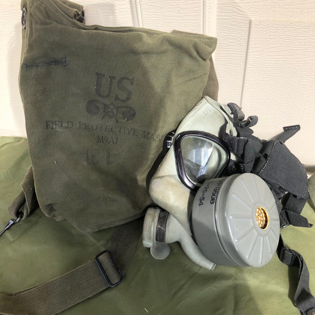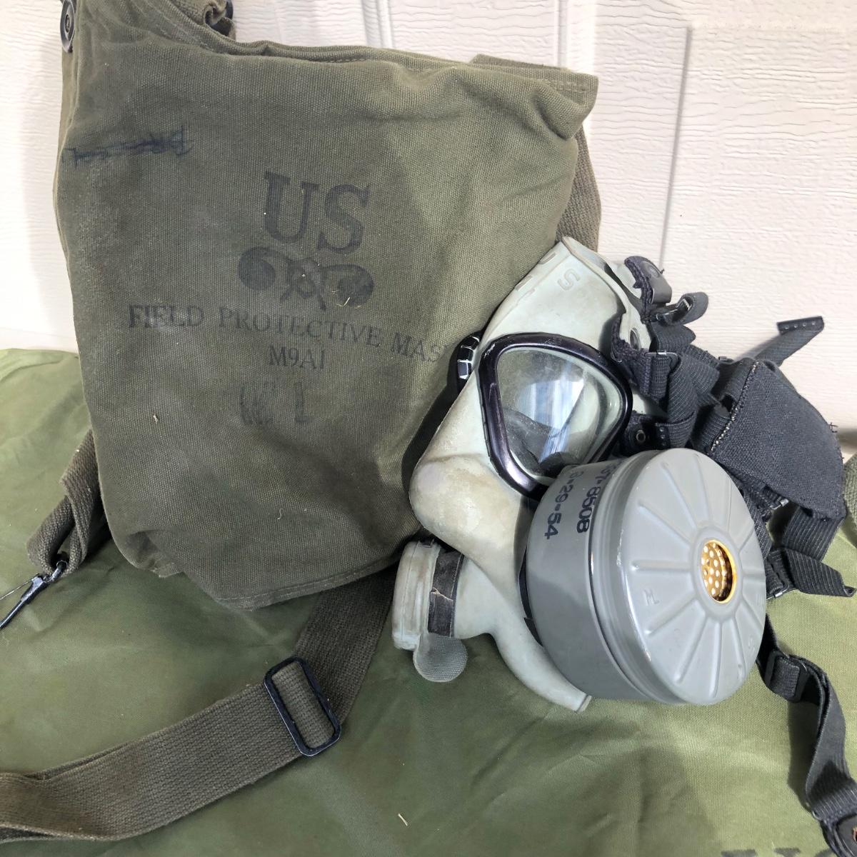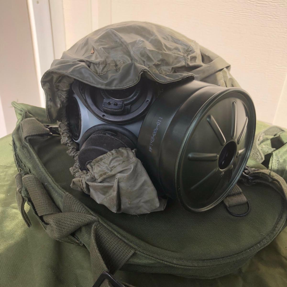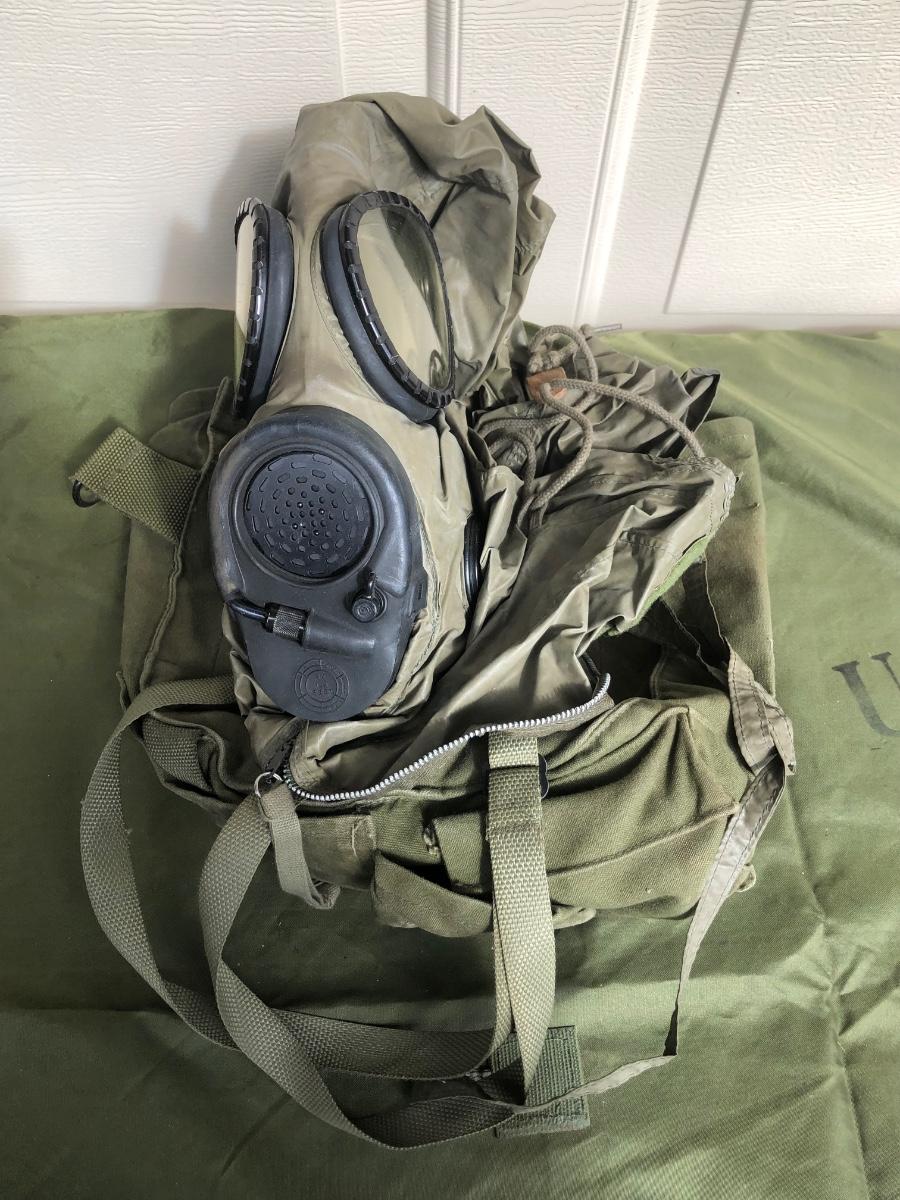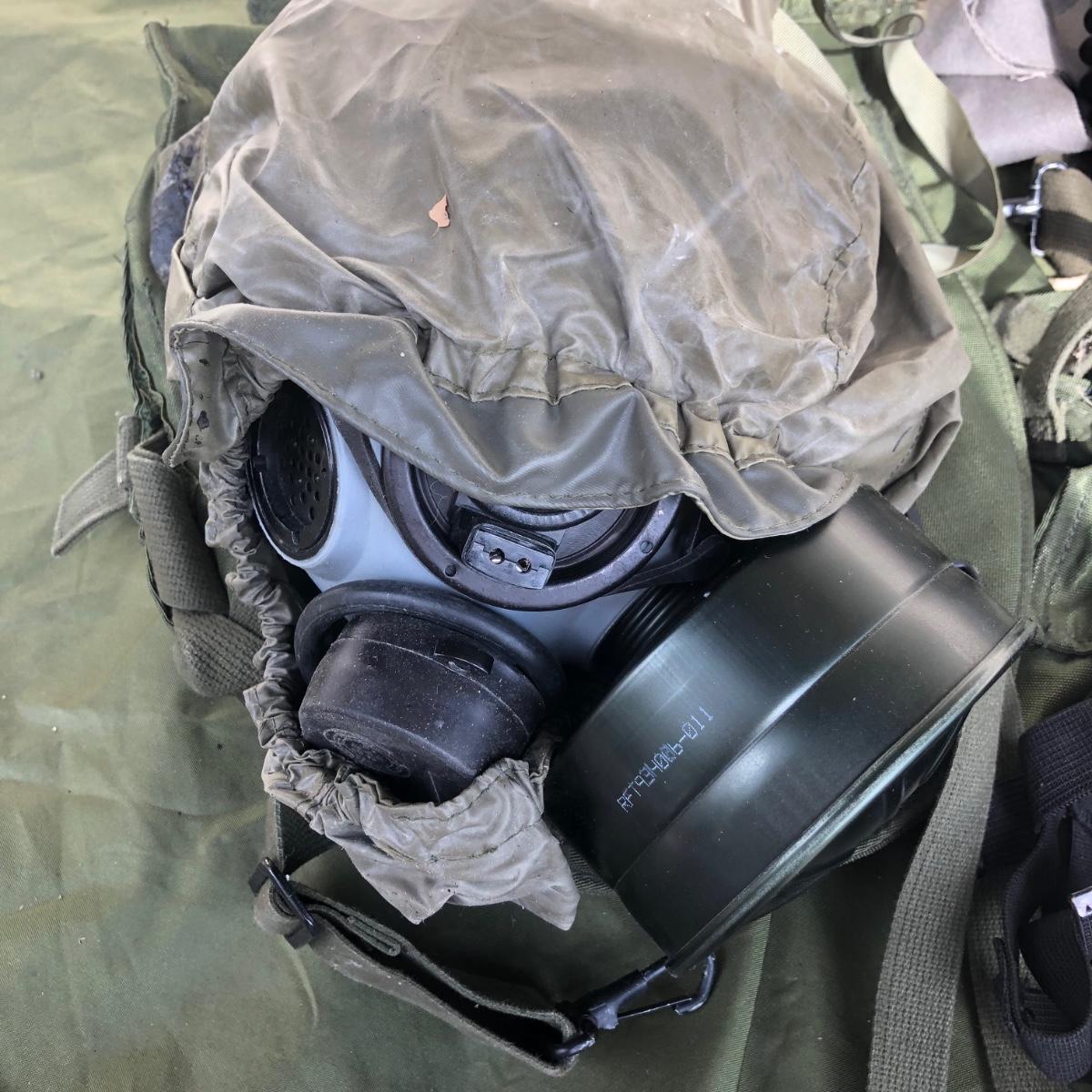 Includes 5 gas masks with bags and a canister with a biological mask in it.