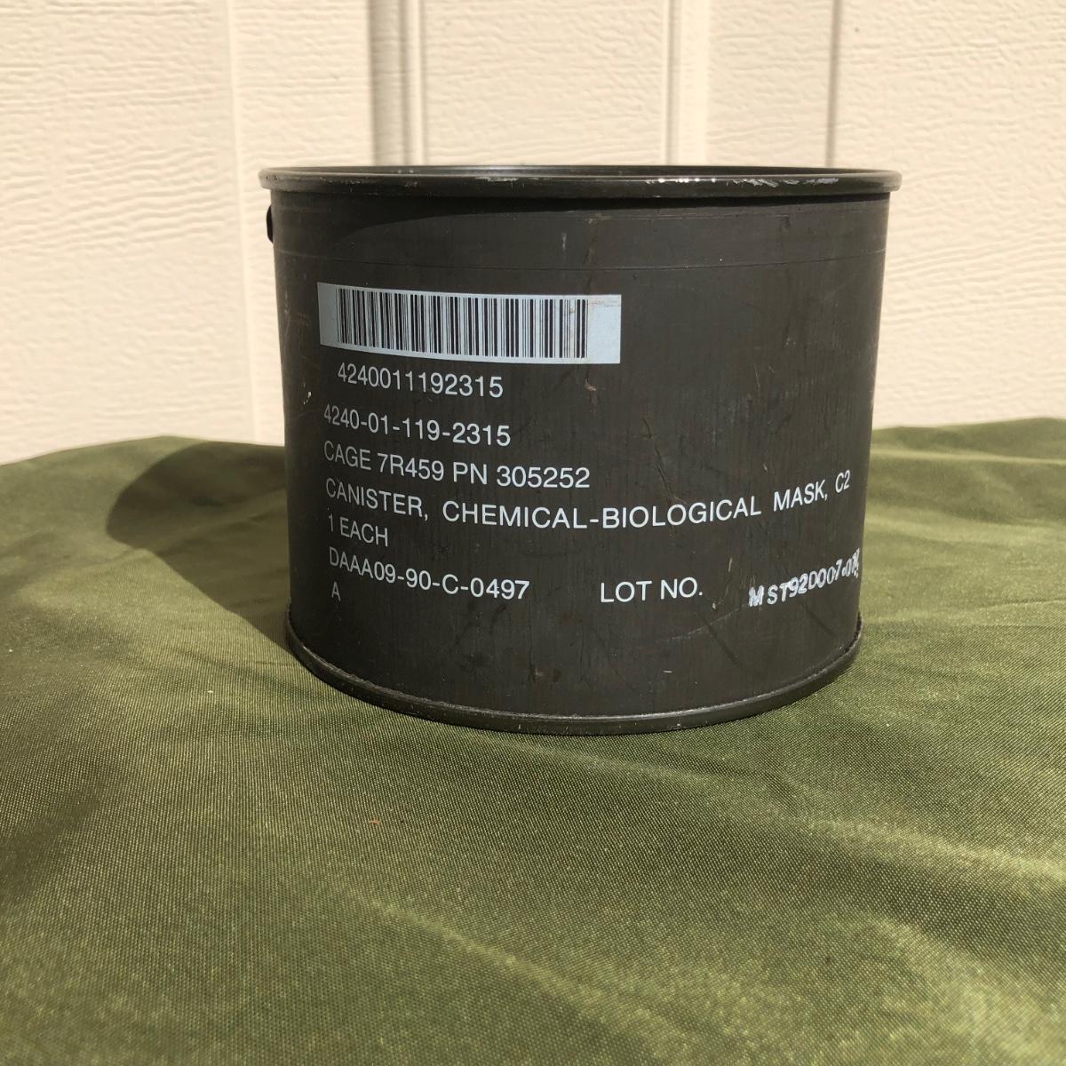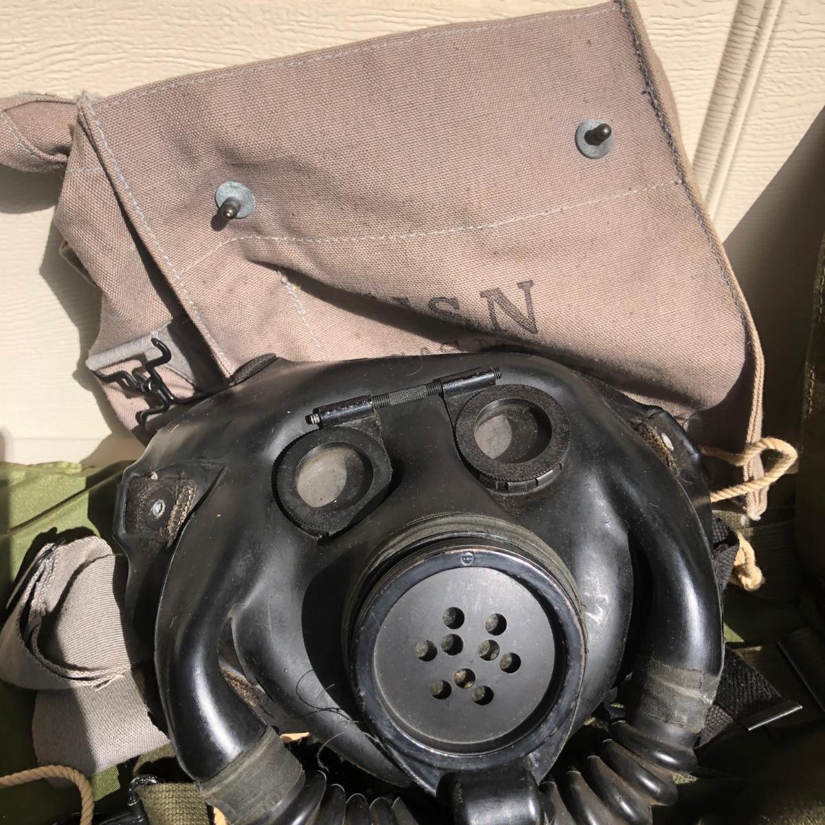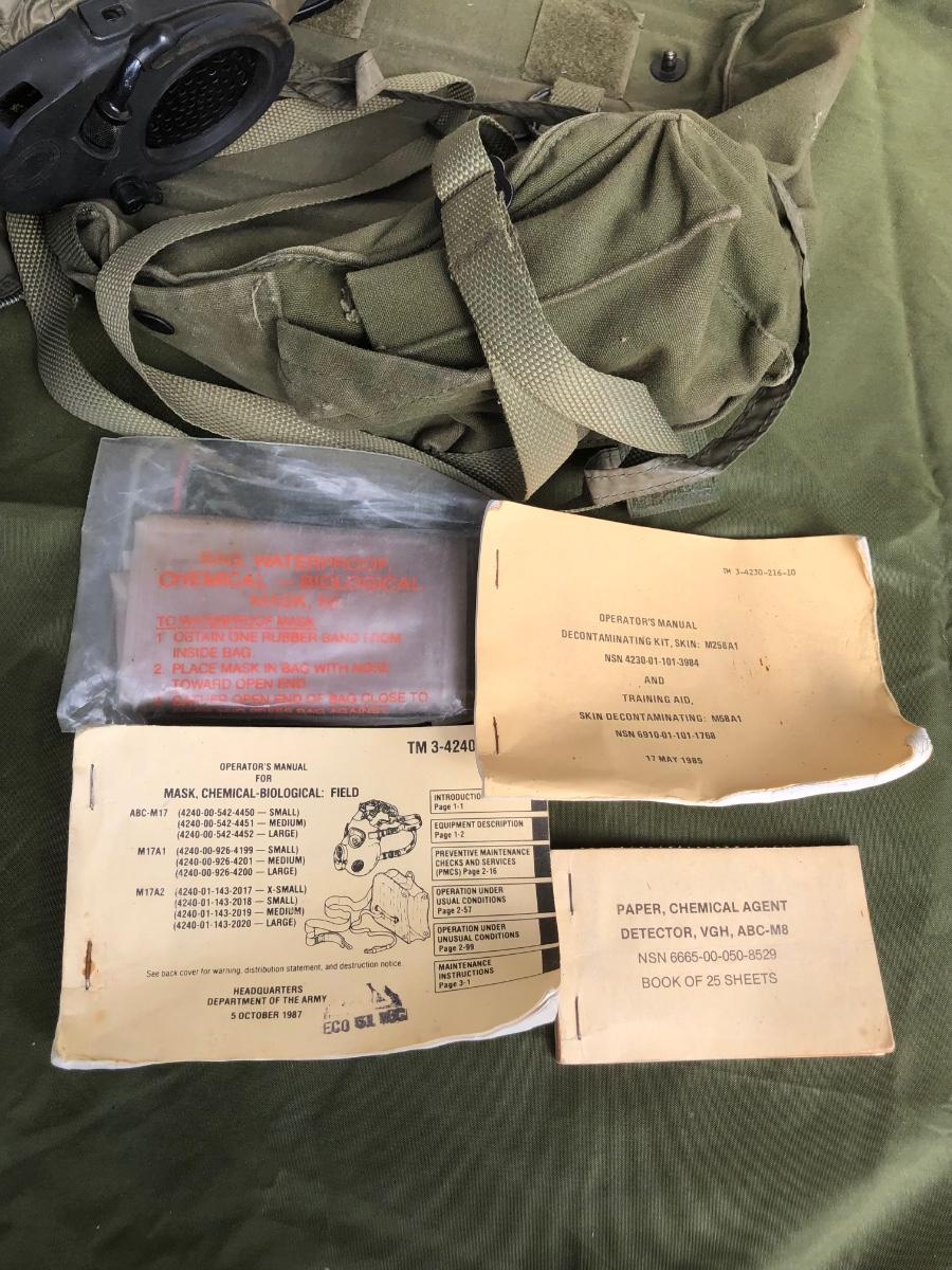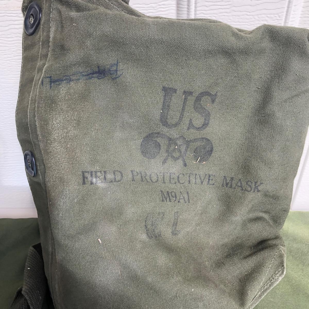 Includes 5 gas masks with bags and a canister with a biological mask in it.