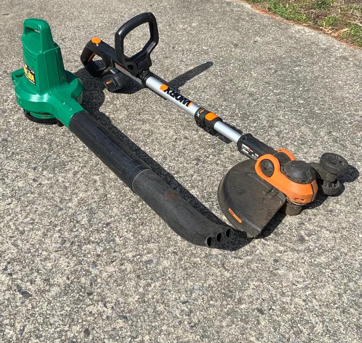 LOT:149G: Worx Cordless Edger w/Battery: No Adapter & Weed Eater Barracuda Super Electric Blower