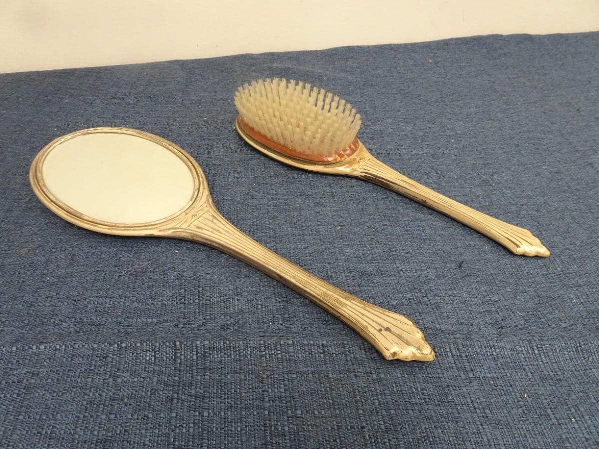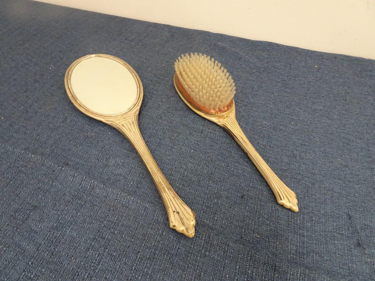 LOT 838 ANTIQUE STERLING BRUSH AND MIRROR SET