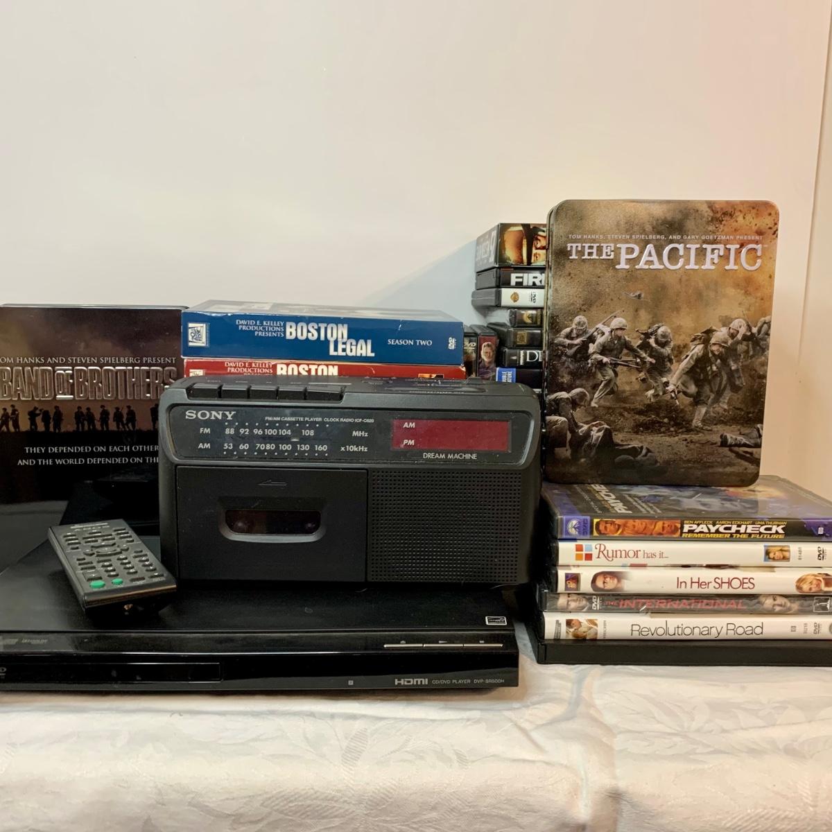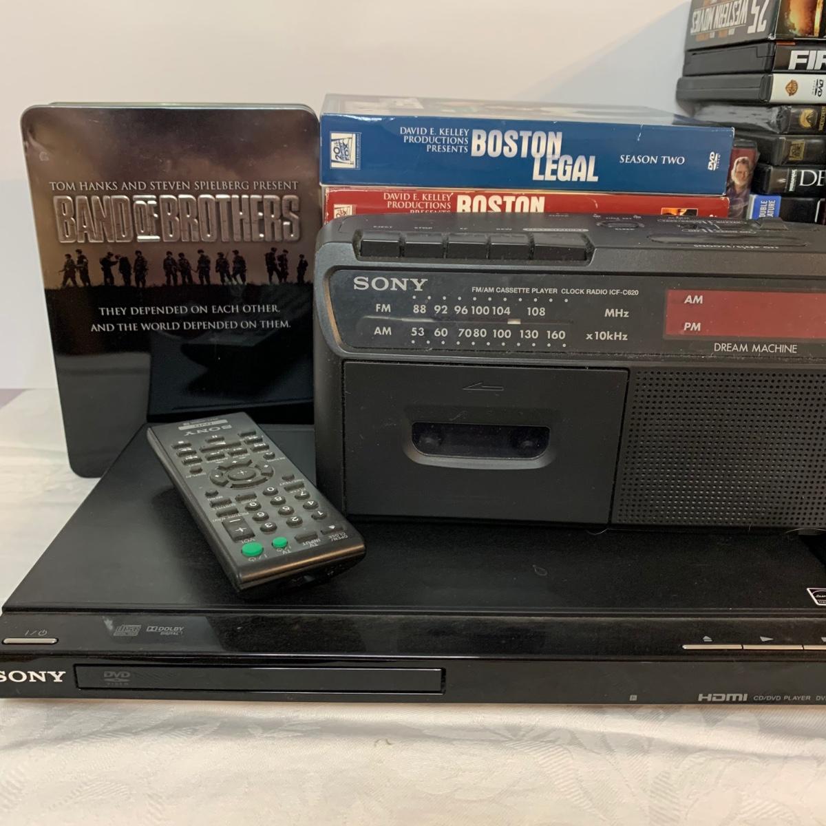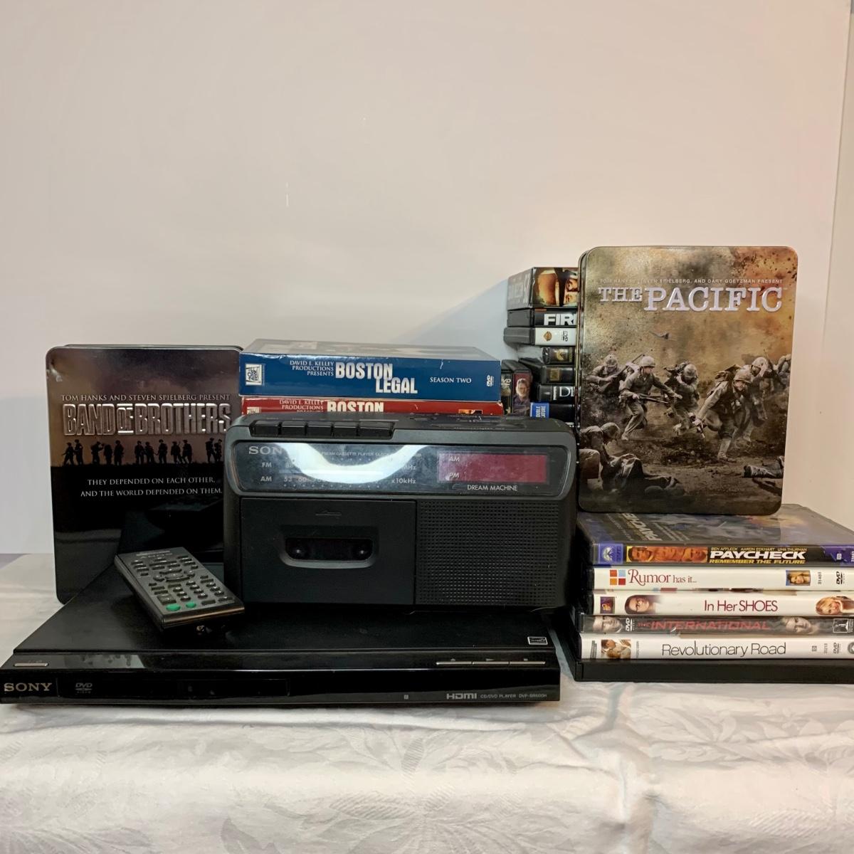 LOT 19: Sony CD/DVD Player, Sony AM/FM Radio & DVDs