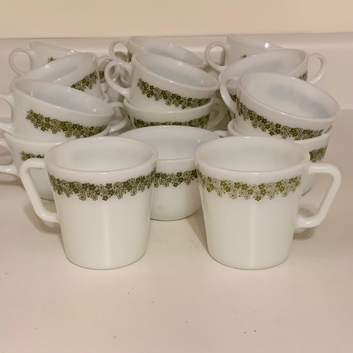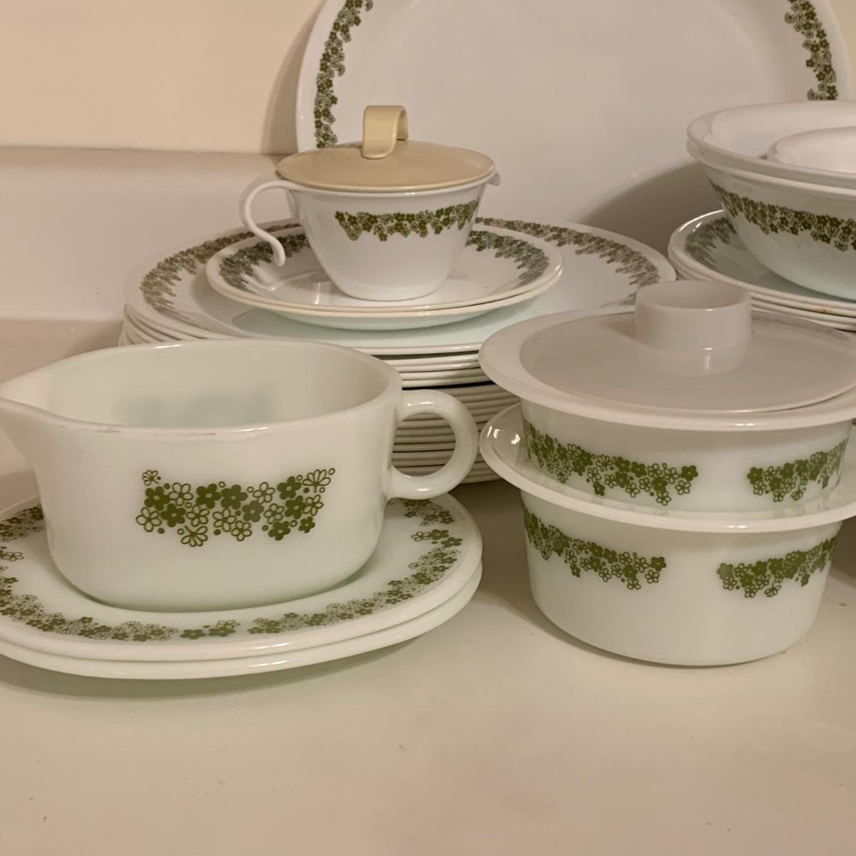 LOT 31: Large Collection of Vintage Corelle Spring Blossom Green Crazy Daisy