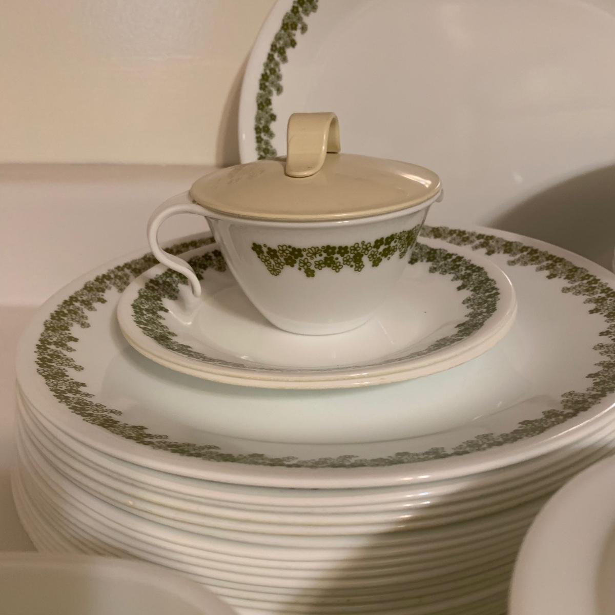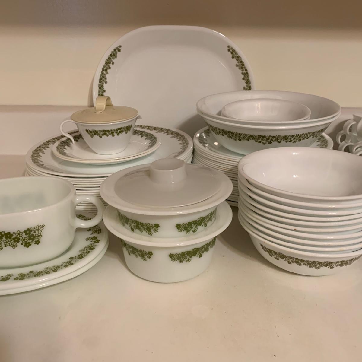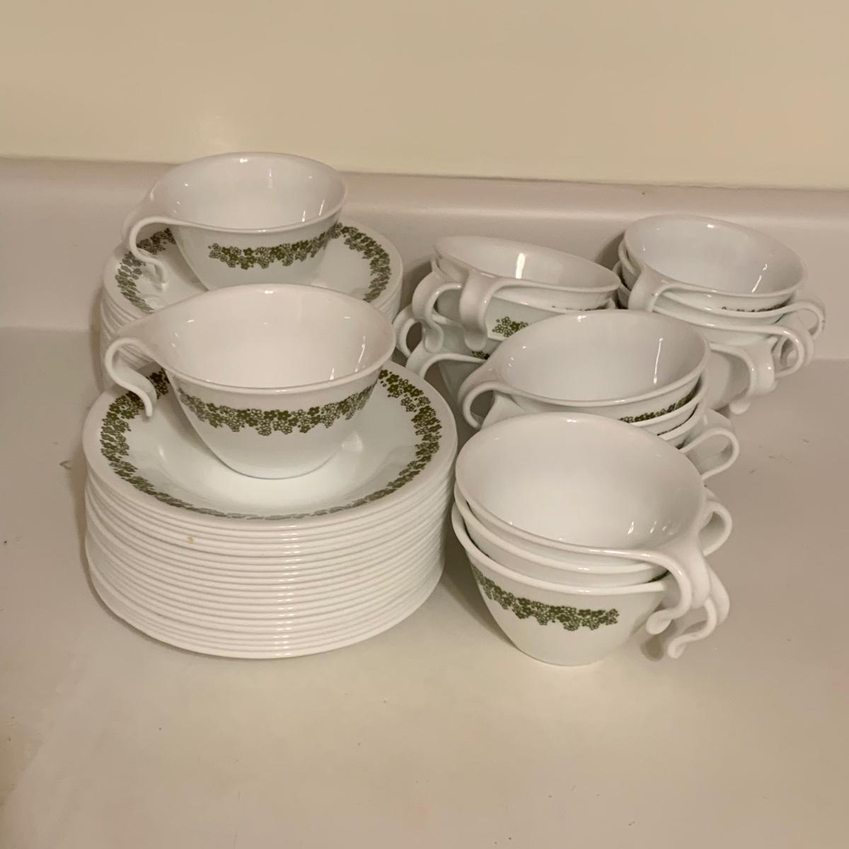 LOT 31:  Large Collection of Vintage Corelle Spring Blossom Green Crazy Daisy