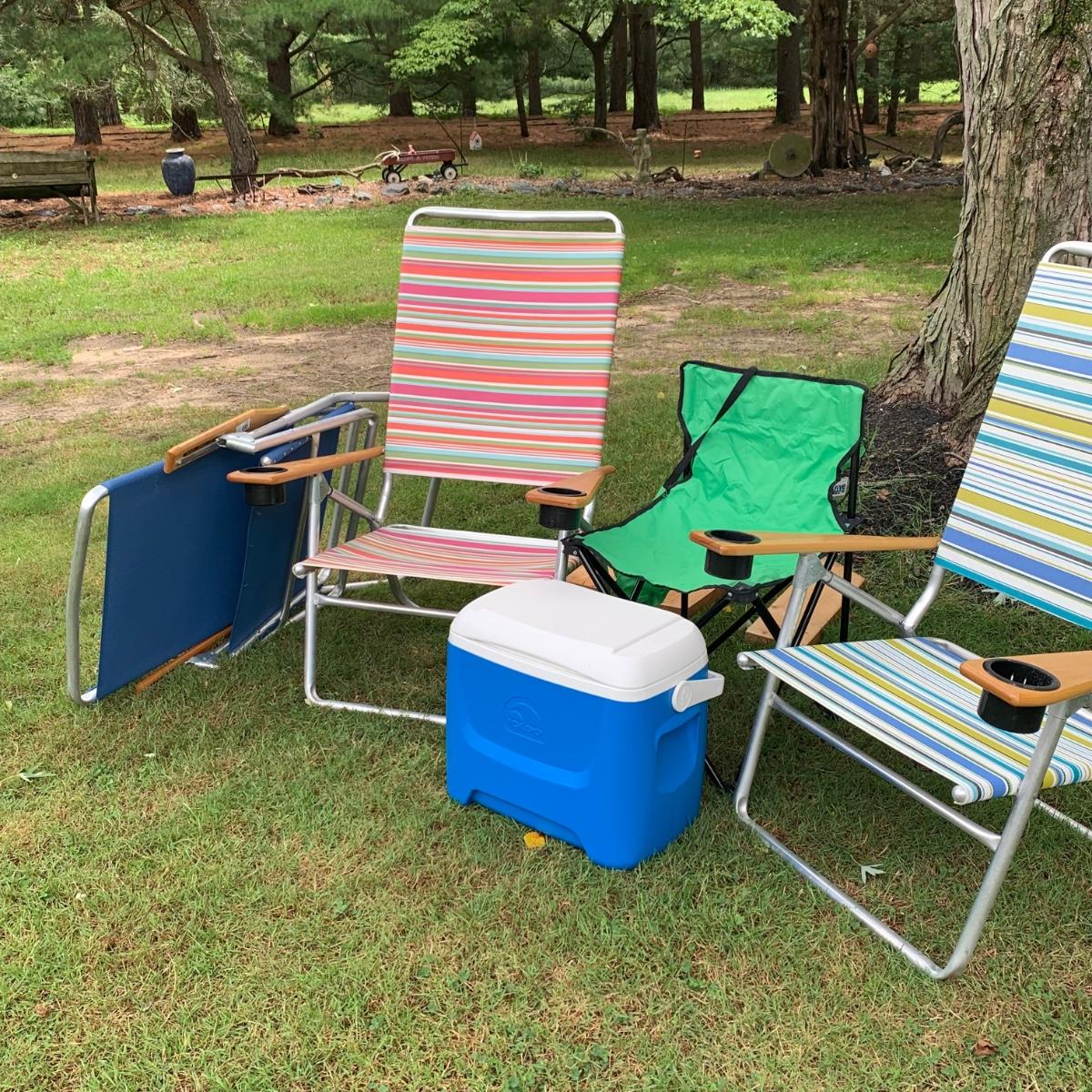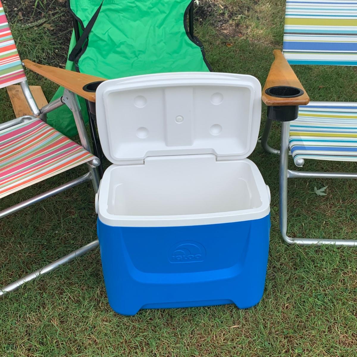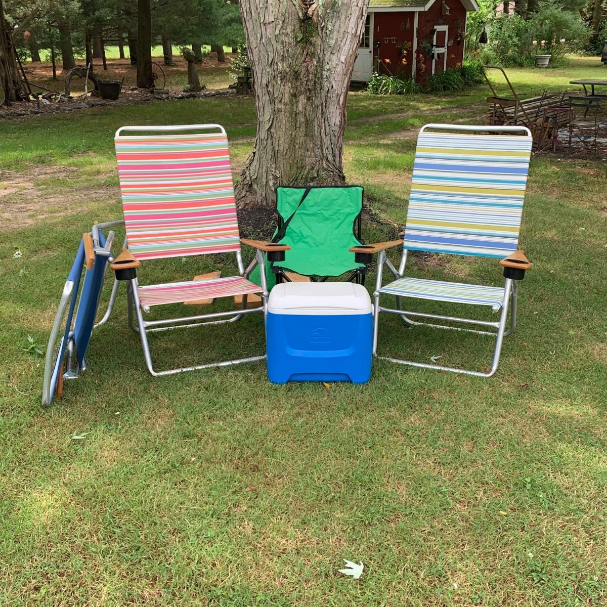 LOT 47: Tele Scope Casual Outdoor Chairs, Igloo Cooler & Childs Chair