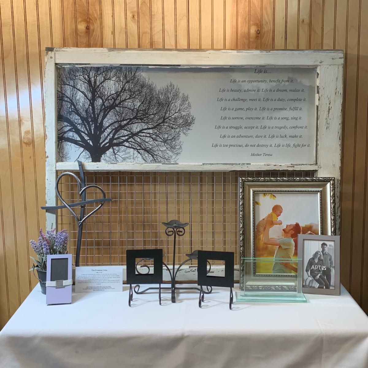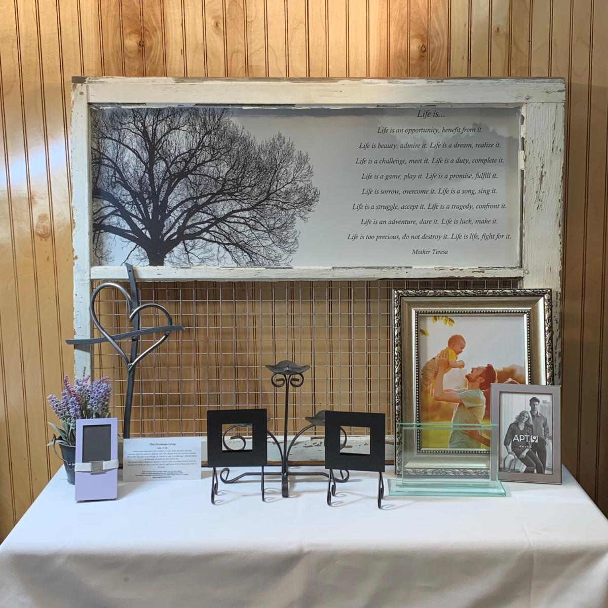 LOT 52: Window Sash Art w/Mother Teresa Poem, The Promise Cross & More