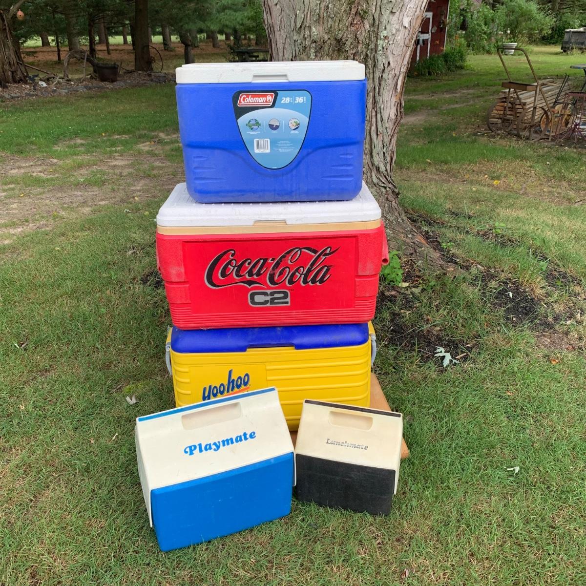 LOT 57: Cooler Collection: Coca-Cola, Yahoo, Playmate, Lunchmate & Coleman