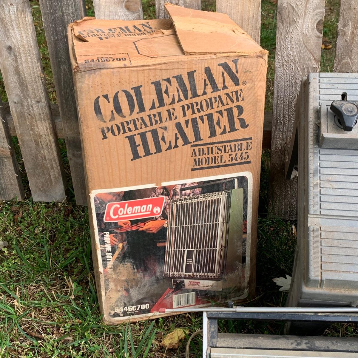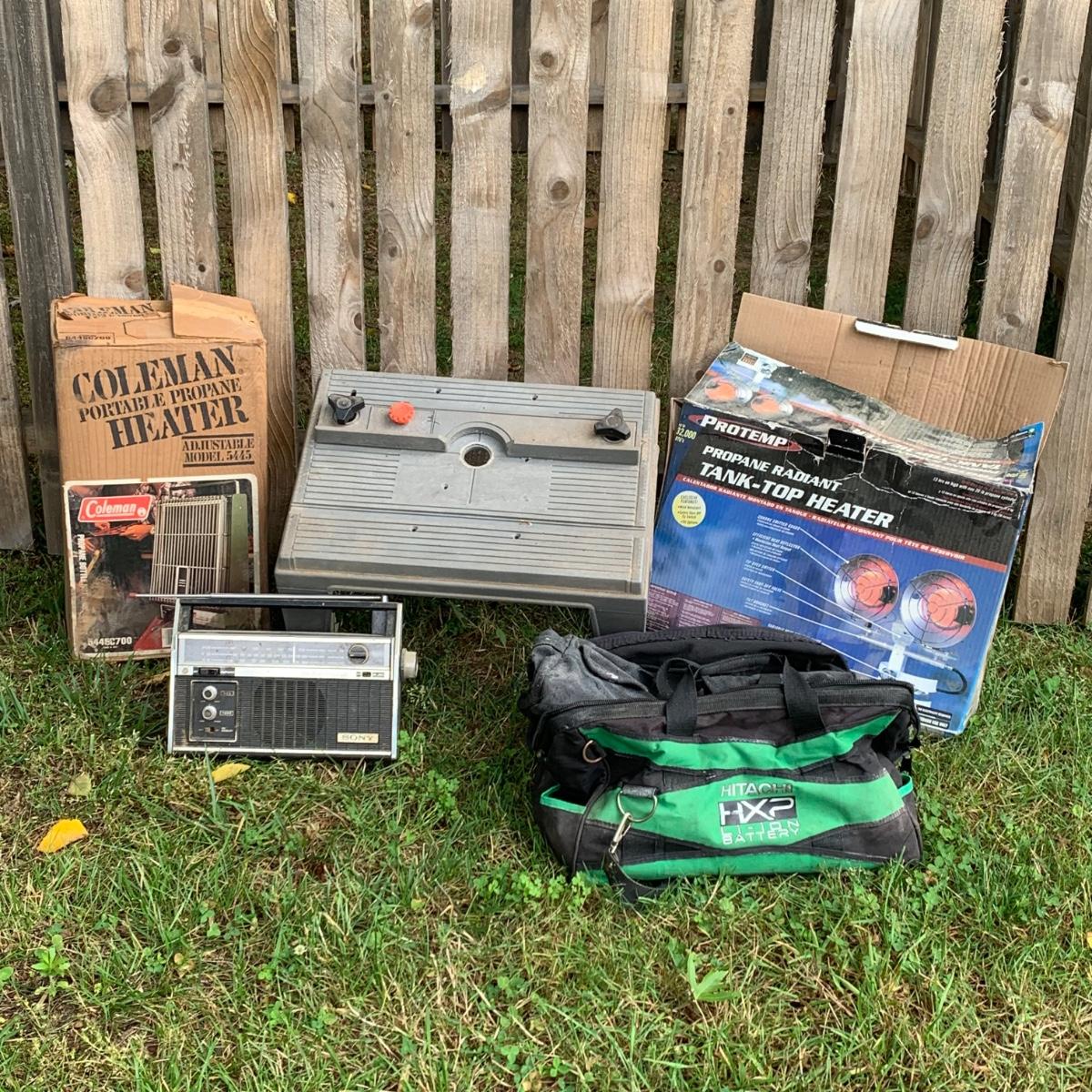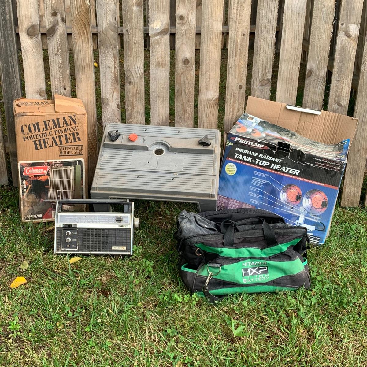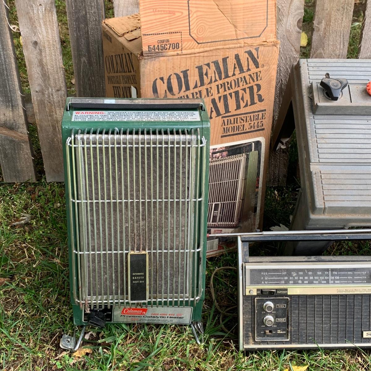 LOT 59: Coleman Portable Propane Heater, Propane Tank Top Heater, Sony AM/FM Radio & More