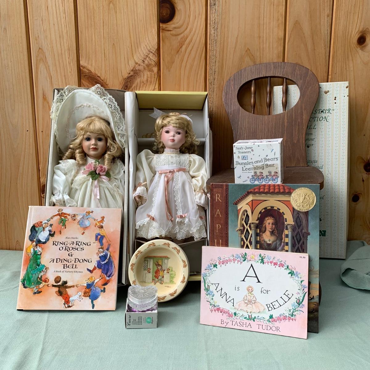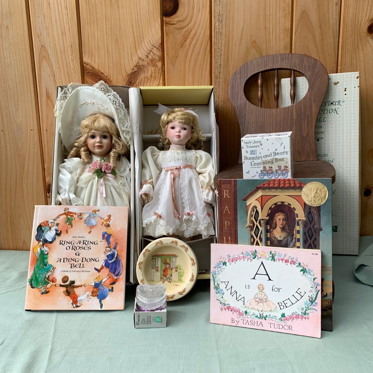 LOT 61: Porcelain Dolls, Childrens Books, Royal Doulton "Bunnykins", Child's Wooden Chair
