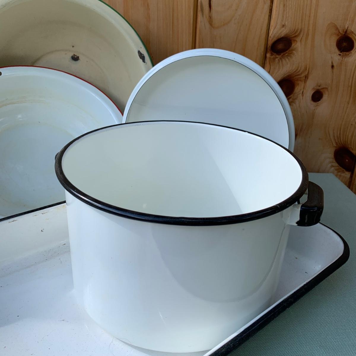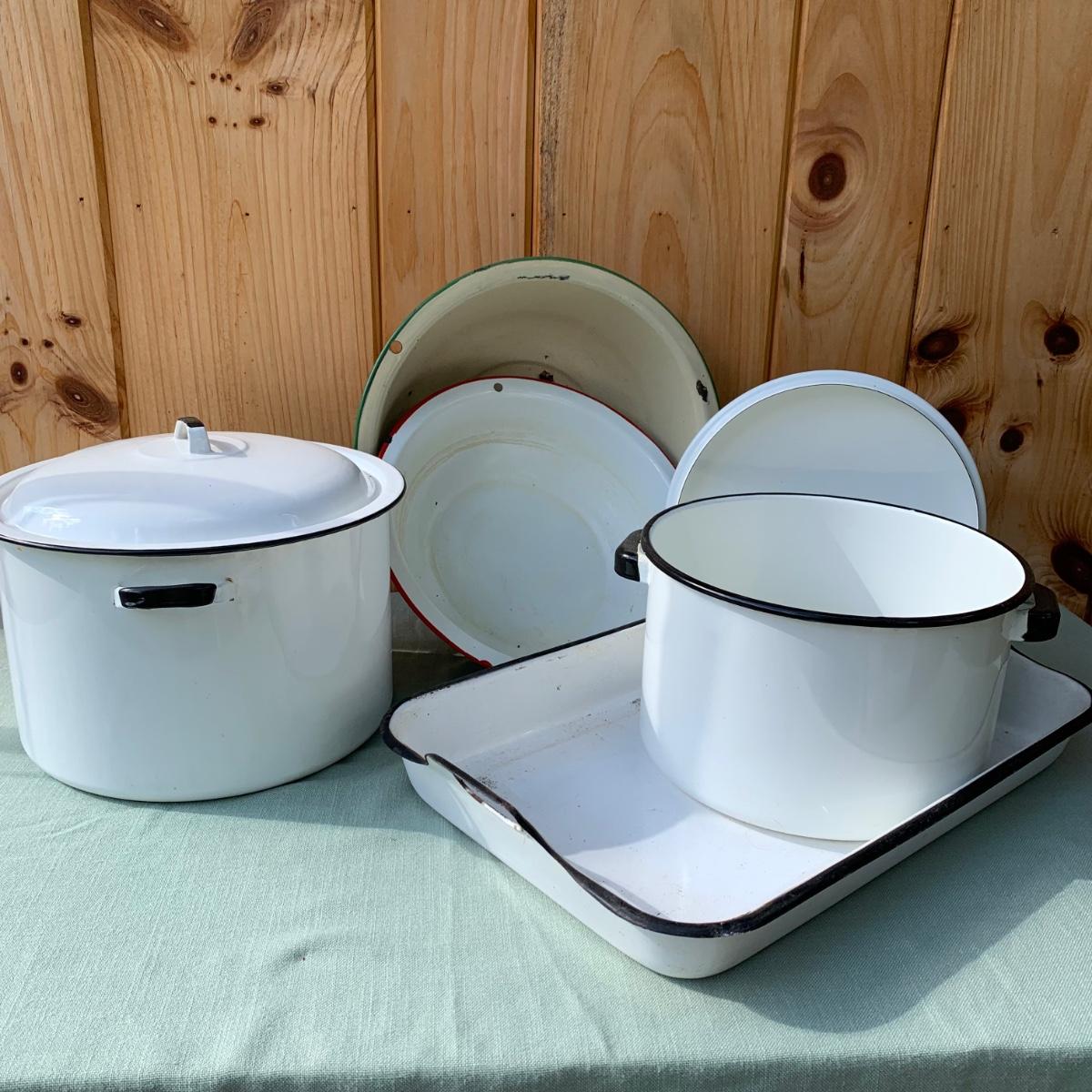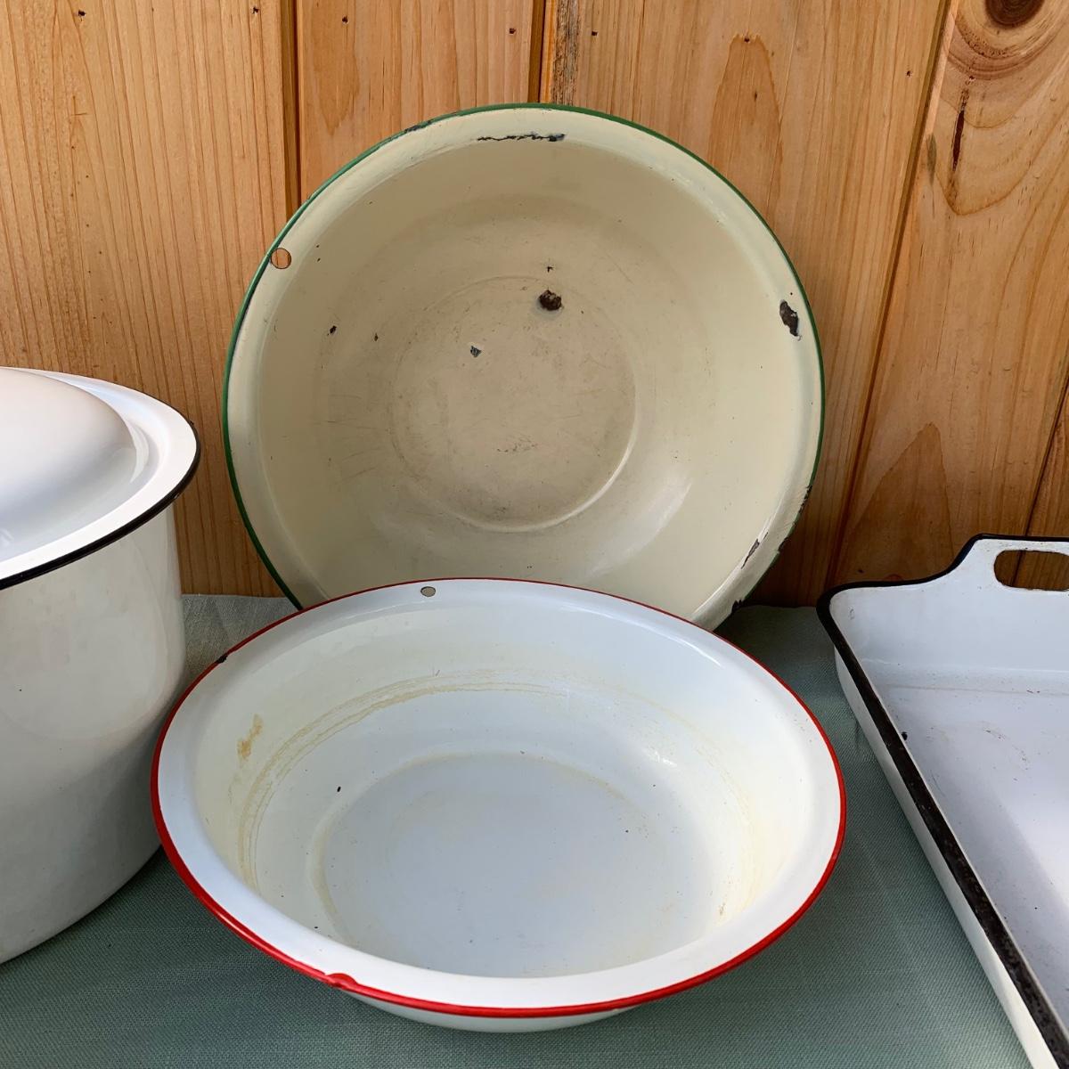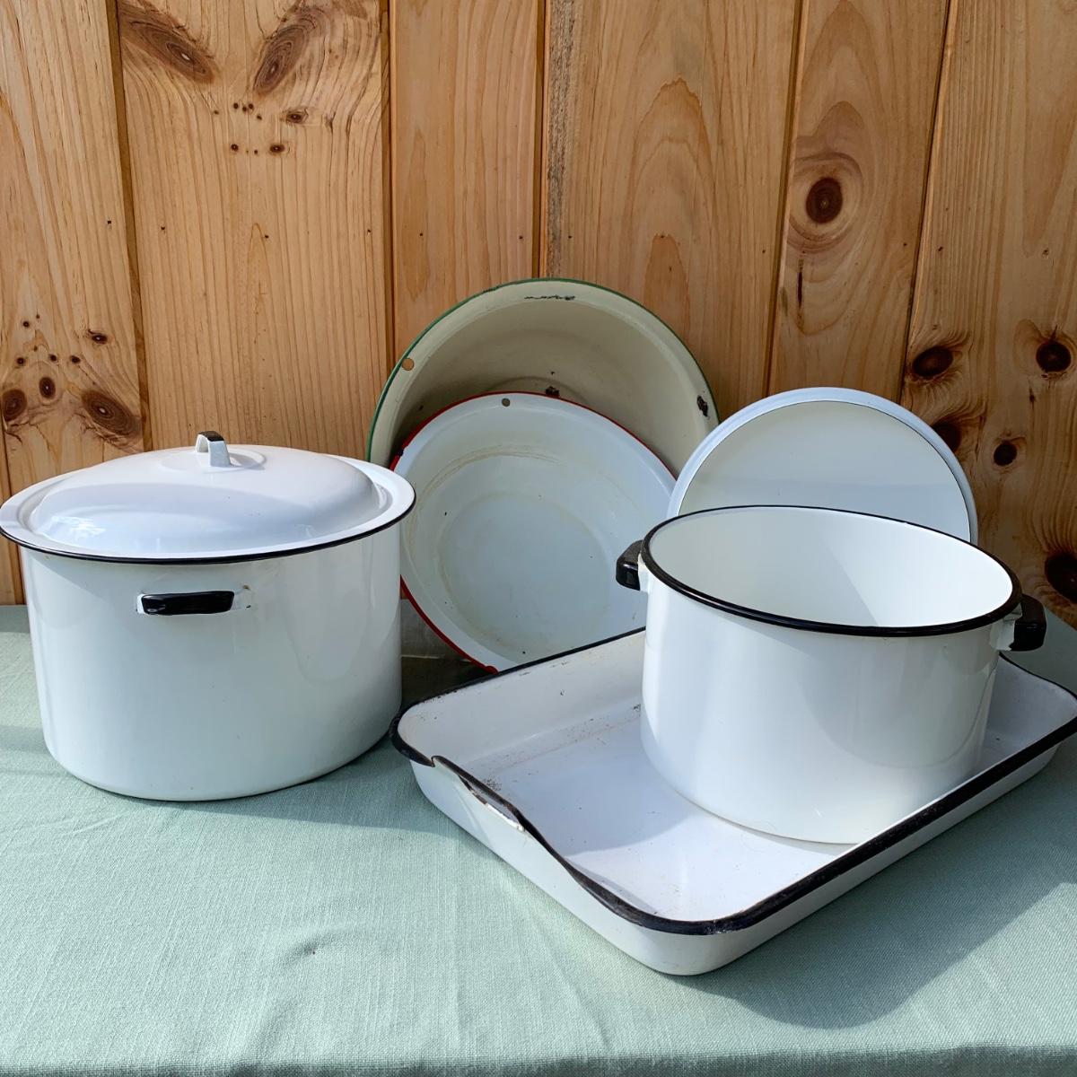 LOT 68: Vintage Enamel Pots, Basins & Baking Pan