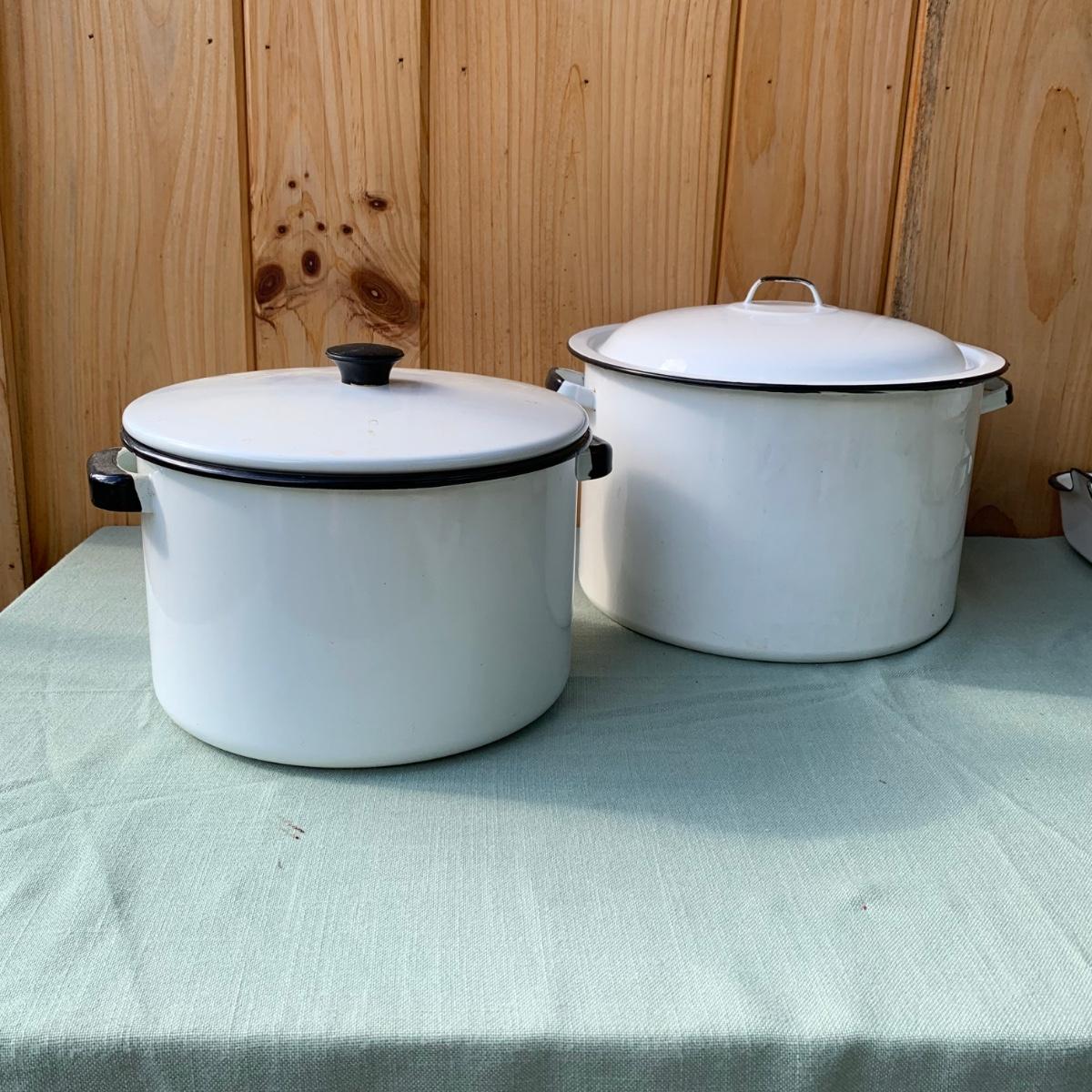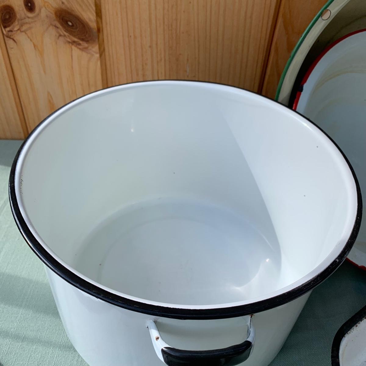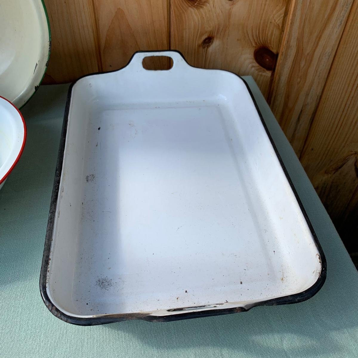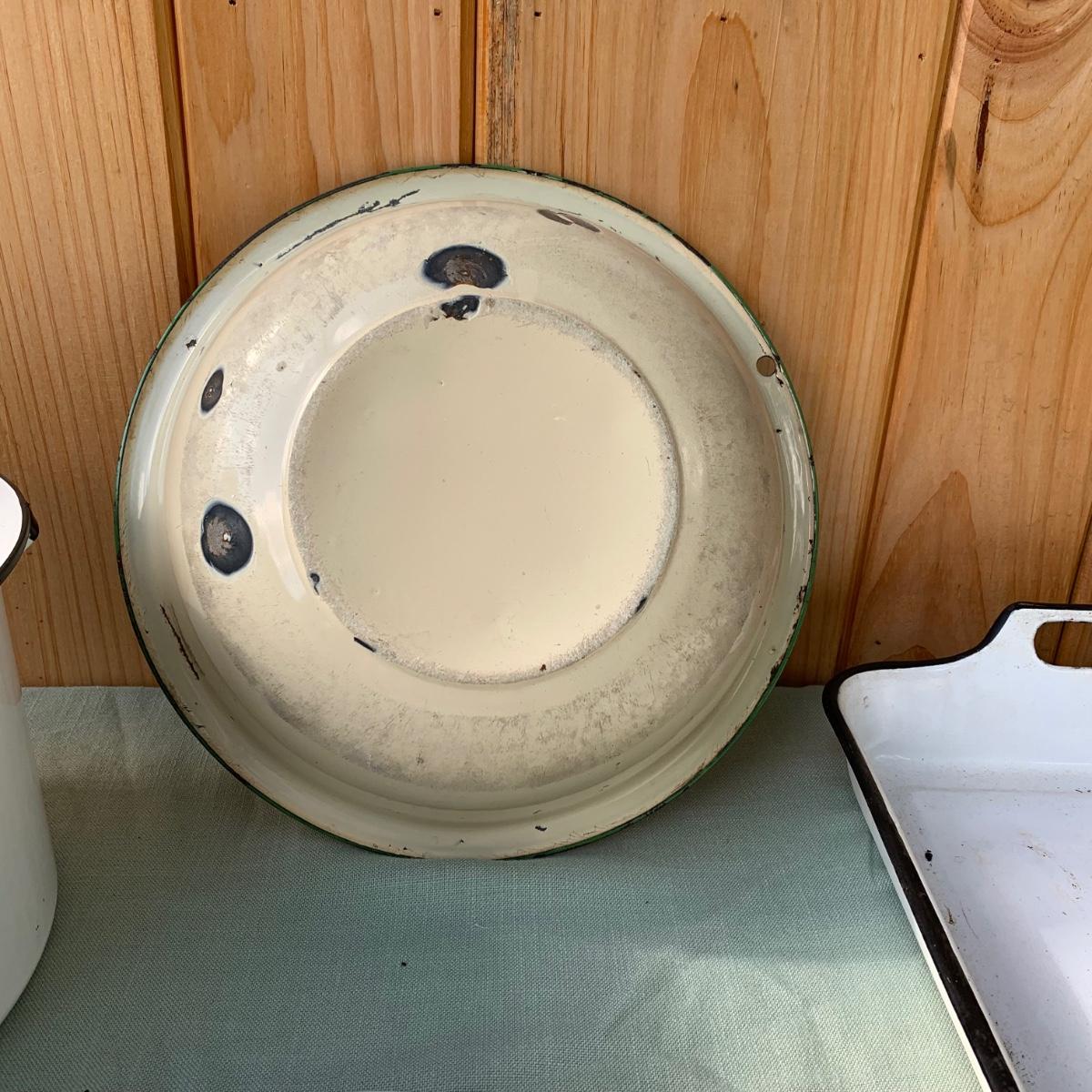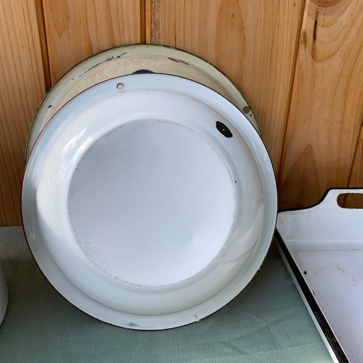 LOT 68: Vintage Enamel Pots, Basins & Baking Pan