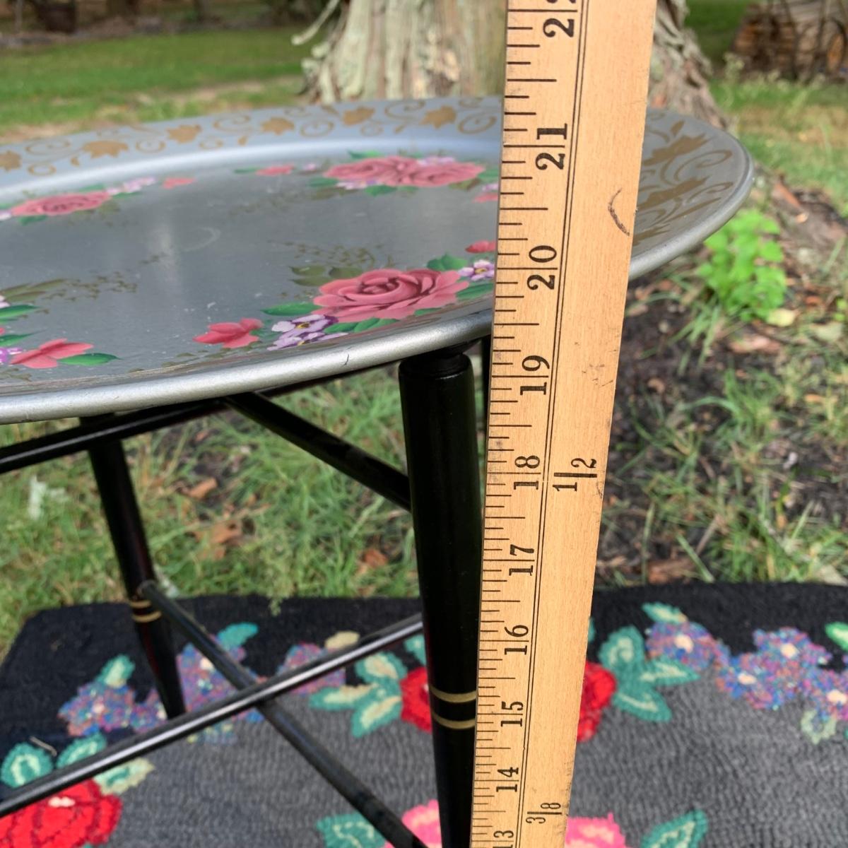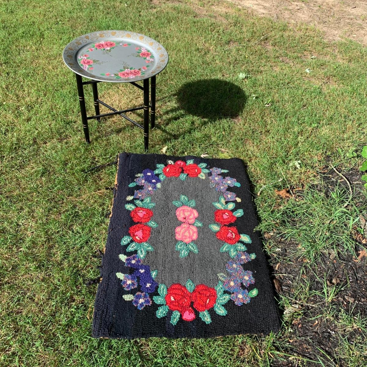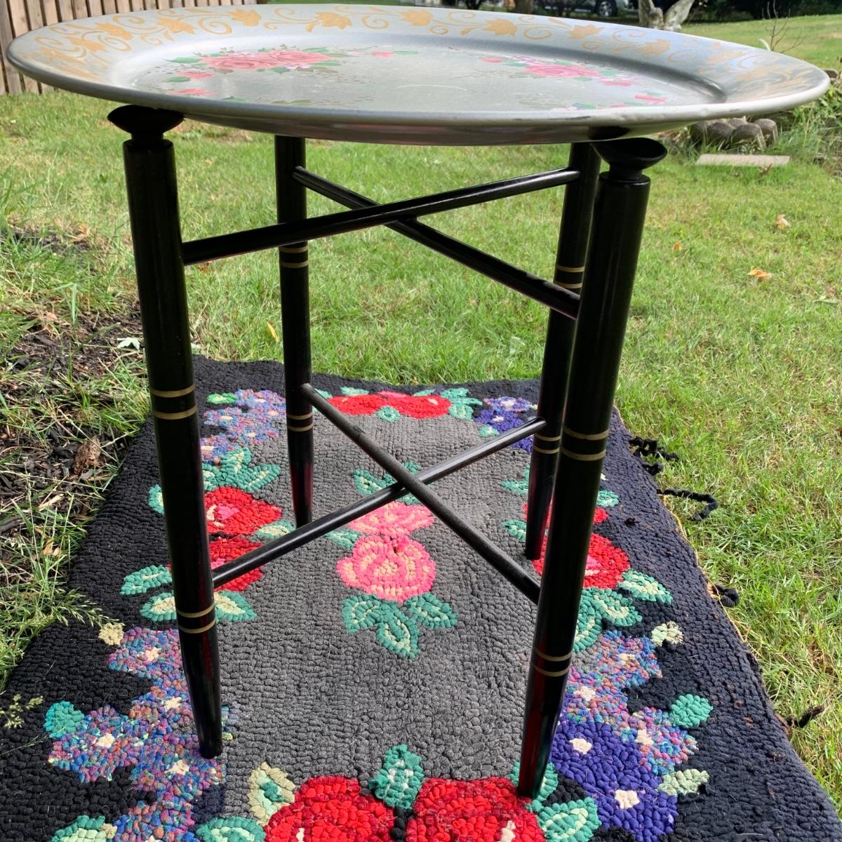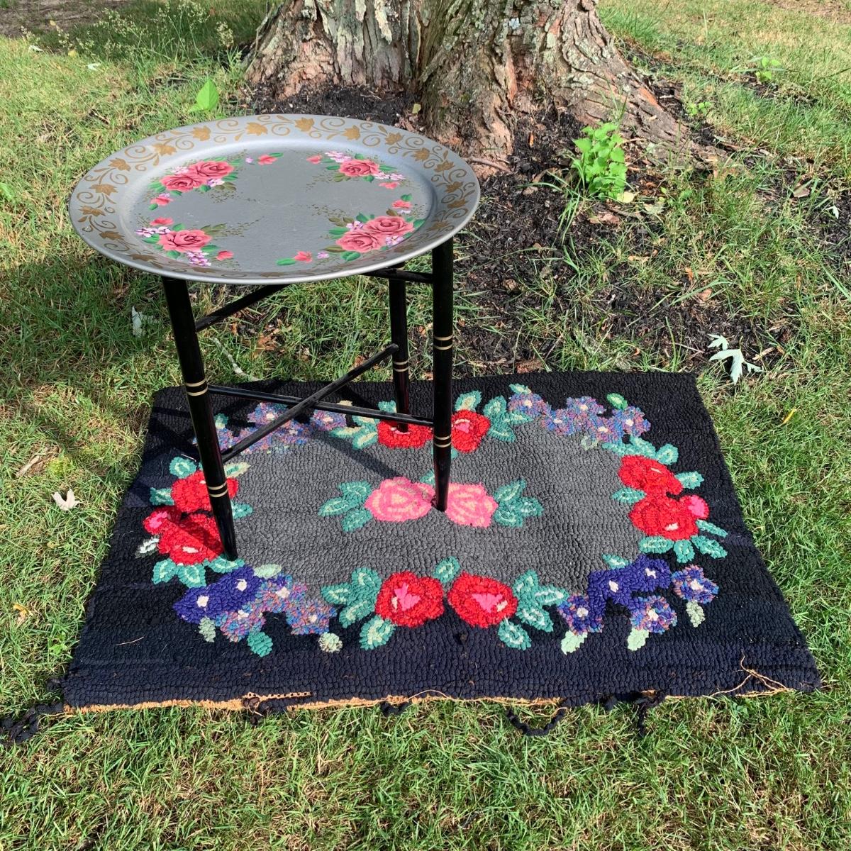 LOT 69: Hand Painted Serving Tray/Table & Vintage Floral Loop Rug