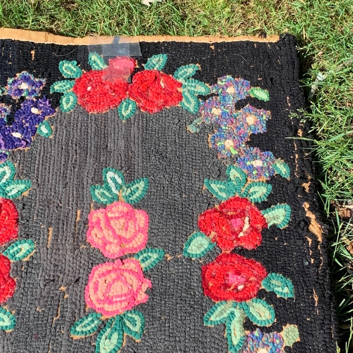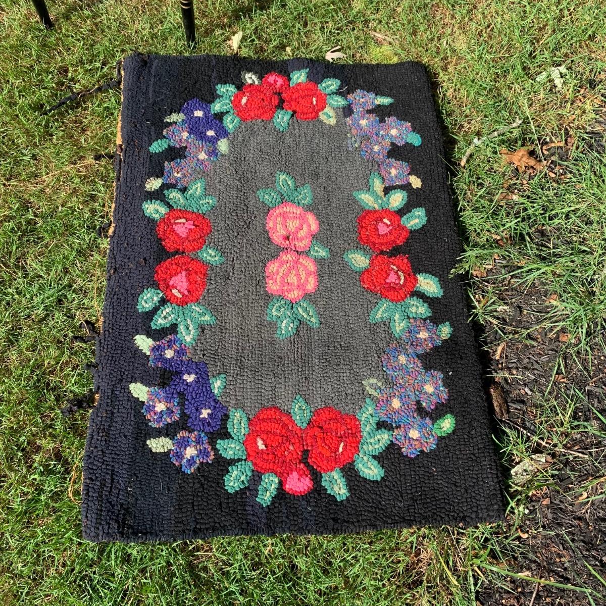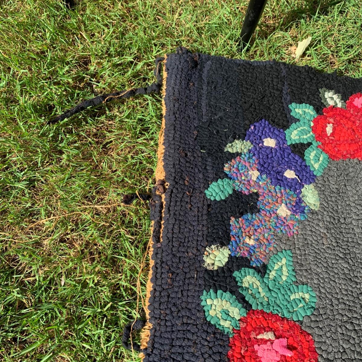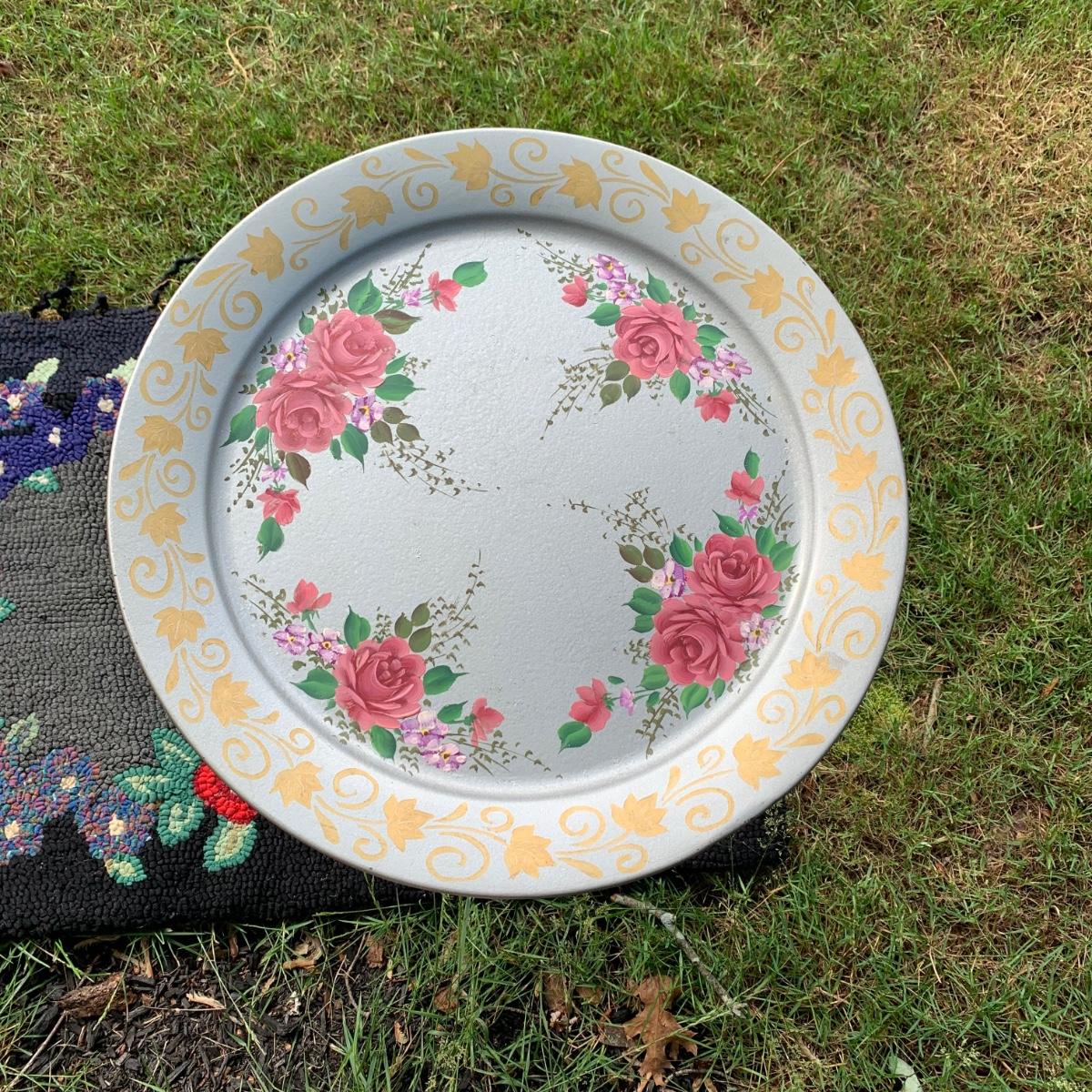 LOT 69: Hand Painted Serving Tray/Table & Vintage Floral Loop Rug